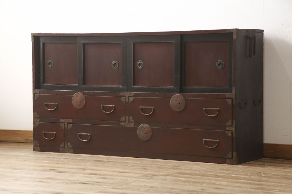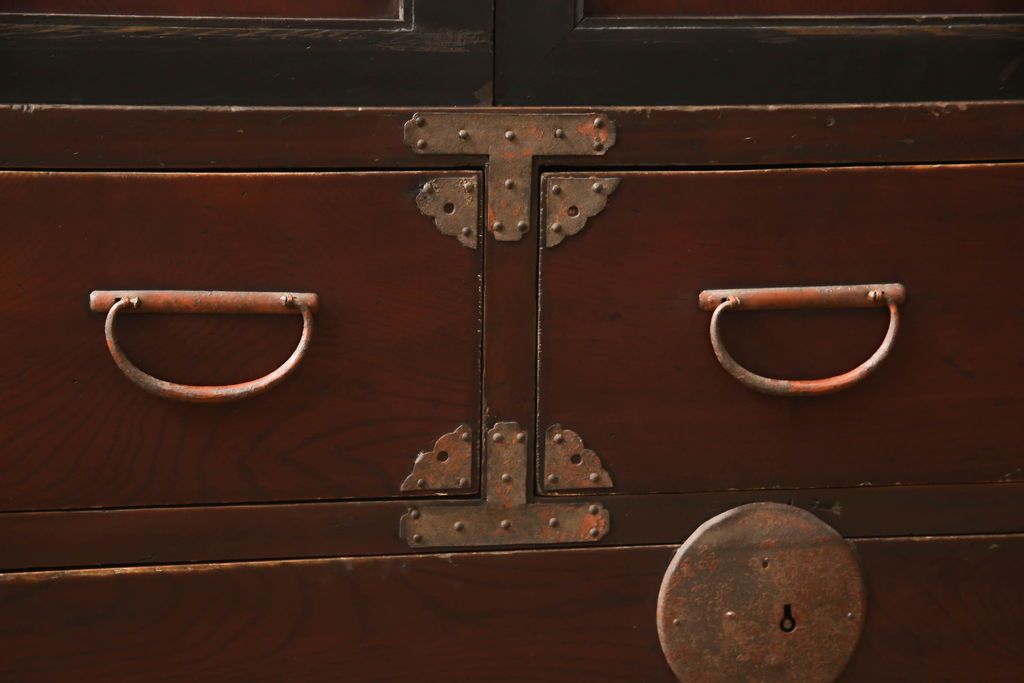 和箪笥> 衣装箪笥 > 明治大正期の箪笥の見た目を変えずに綺麗にリペア!傷や剥げた部分のみ着色し修復。(和箪笥、収納タンス、ローボード、ローチェスト、テレビボード、テレビ台、引き出し、リビングボード)