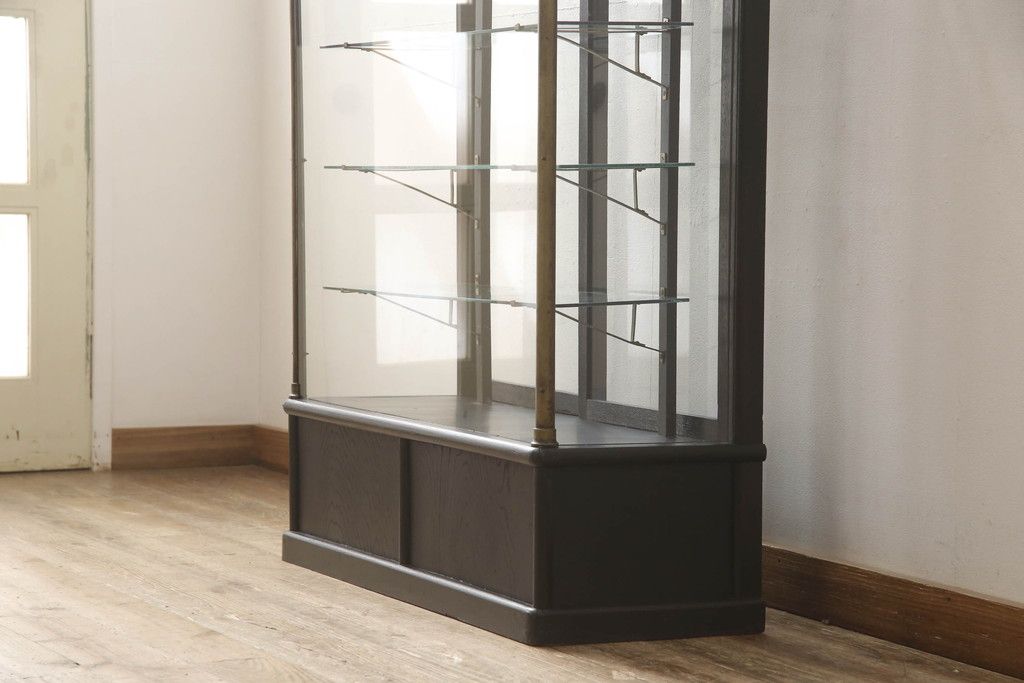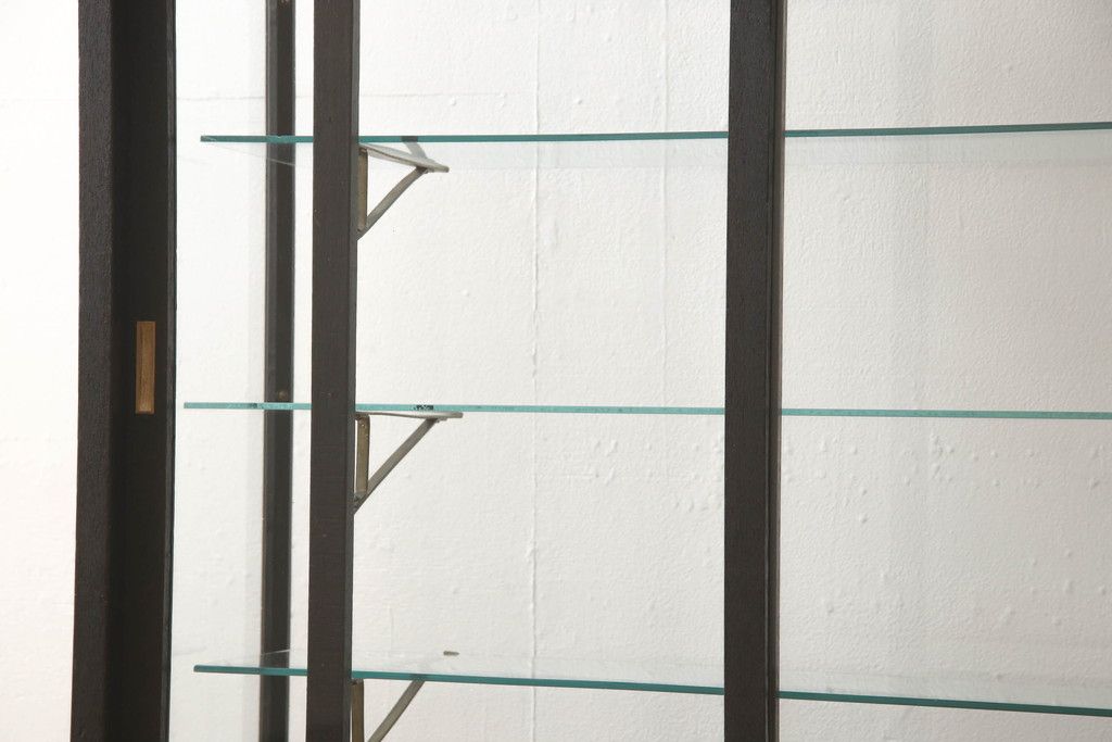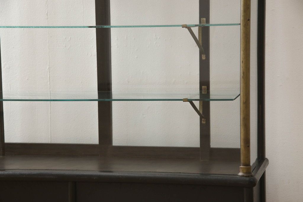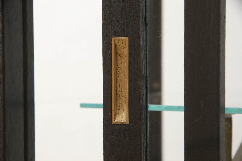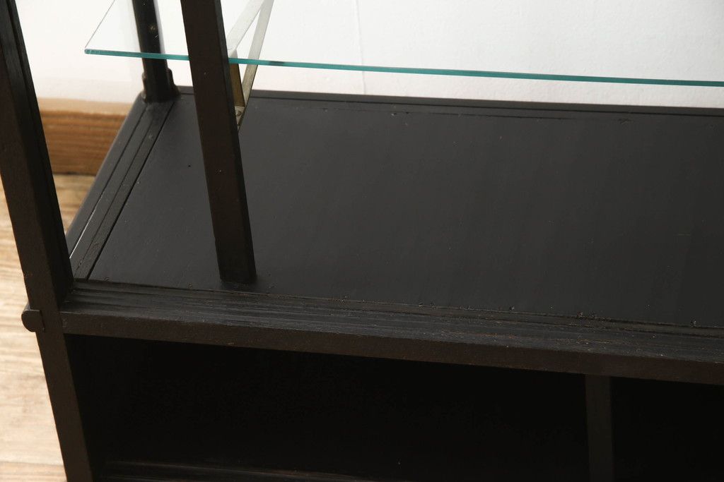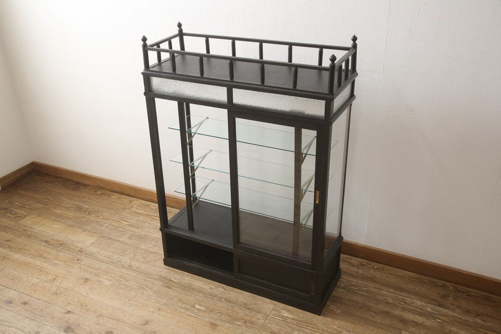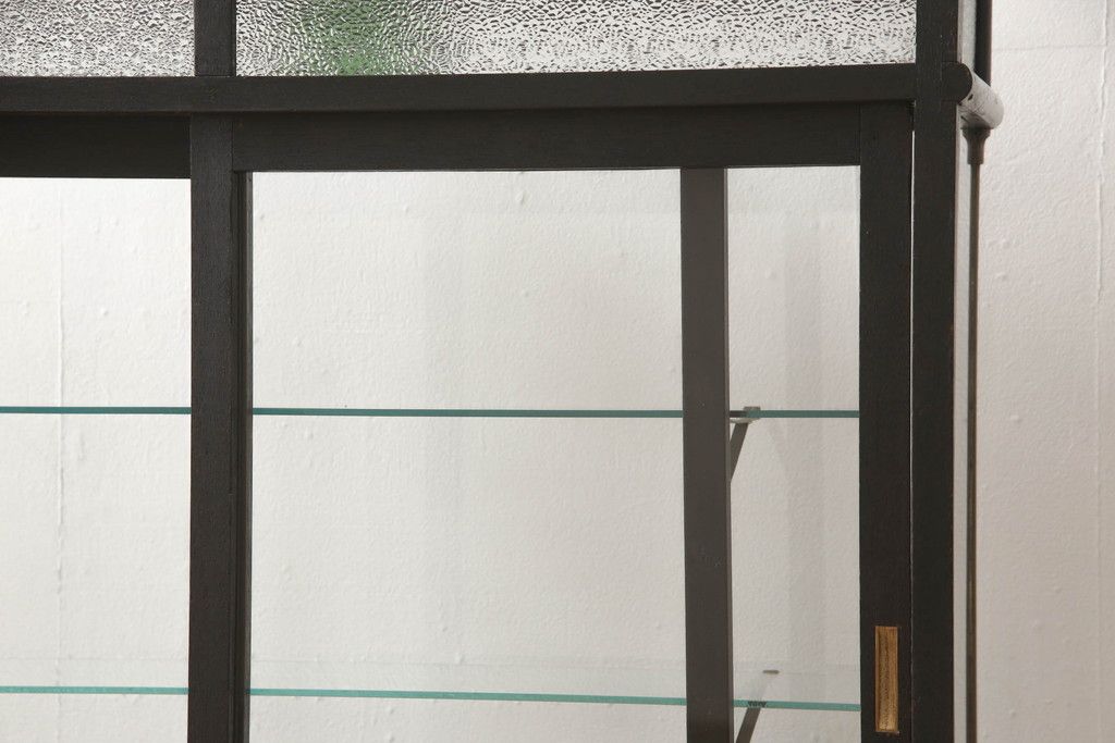 ガラスケース・ショーケース > 天枠付きのガラスケースをリペア&カスタム!引き戸の引手を交換。金具はアンティーク感を残し、本体は黒にペイント仕上げ。(陳列棚、ショーケース)