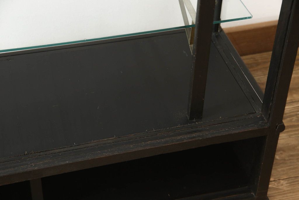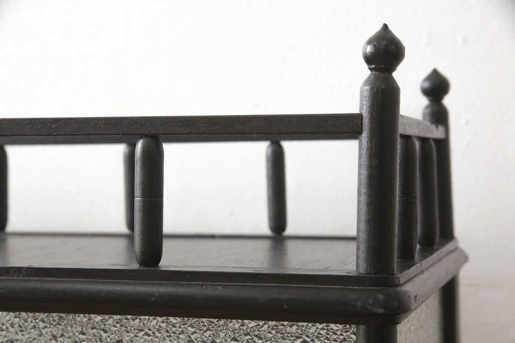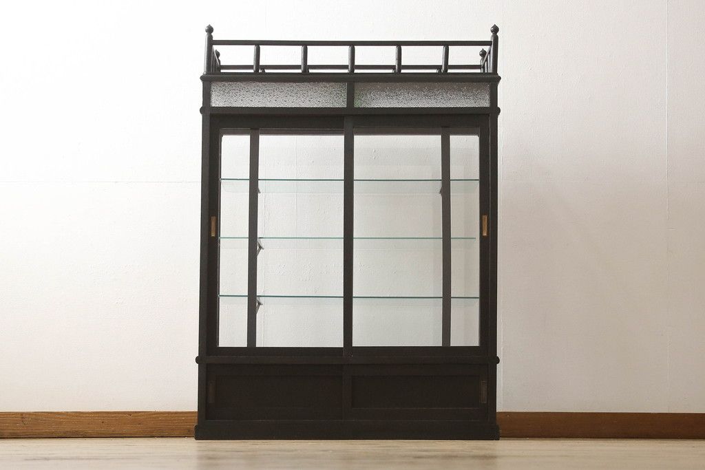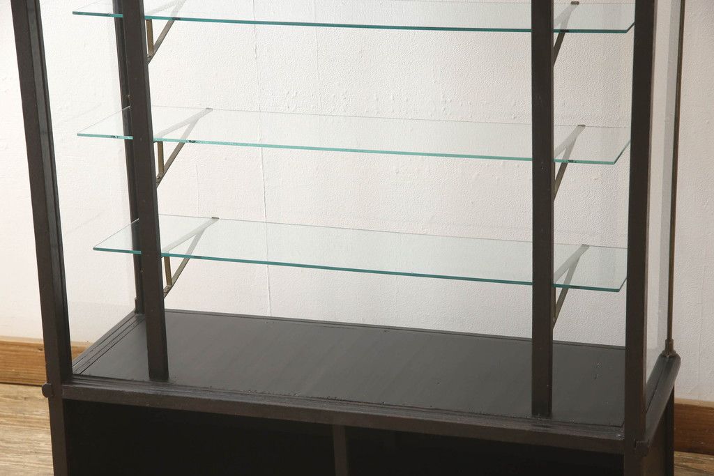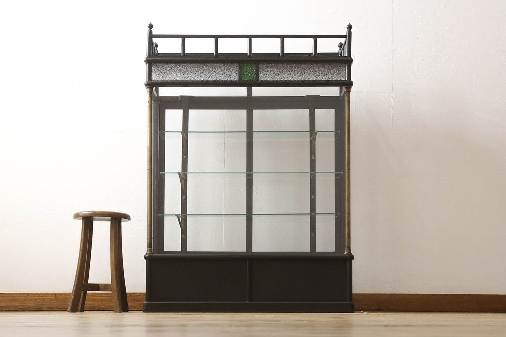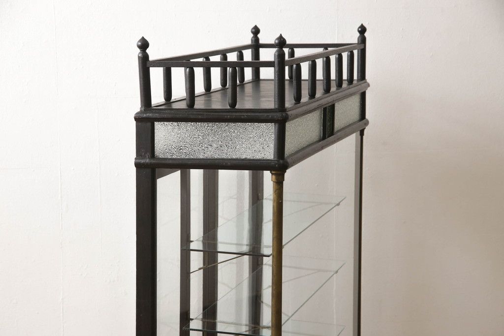 ガラスケース・ショーケース > 天枠付きのガラスケースをリペア&カスタム!引き戸の引手を交換。金具はアンティーク感を残し、本体は黒にペイント仕上げ。(陳列棚、ショーケース)