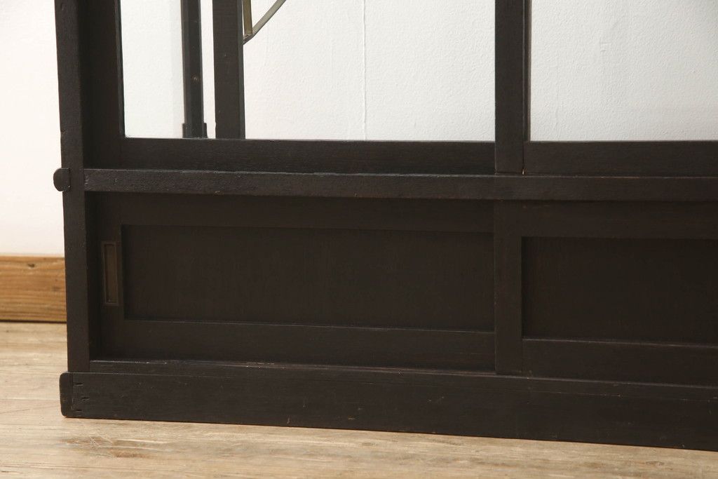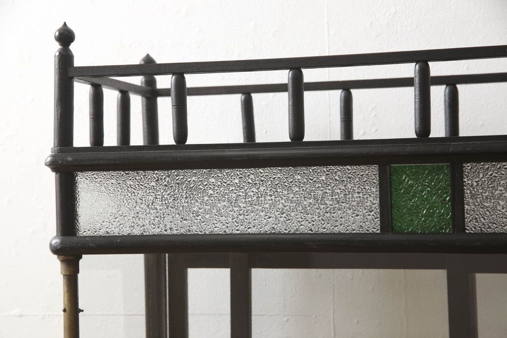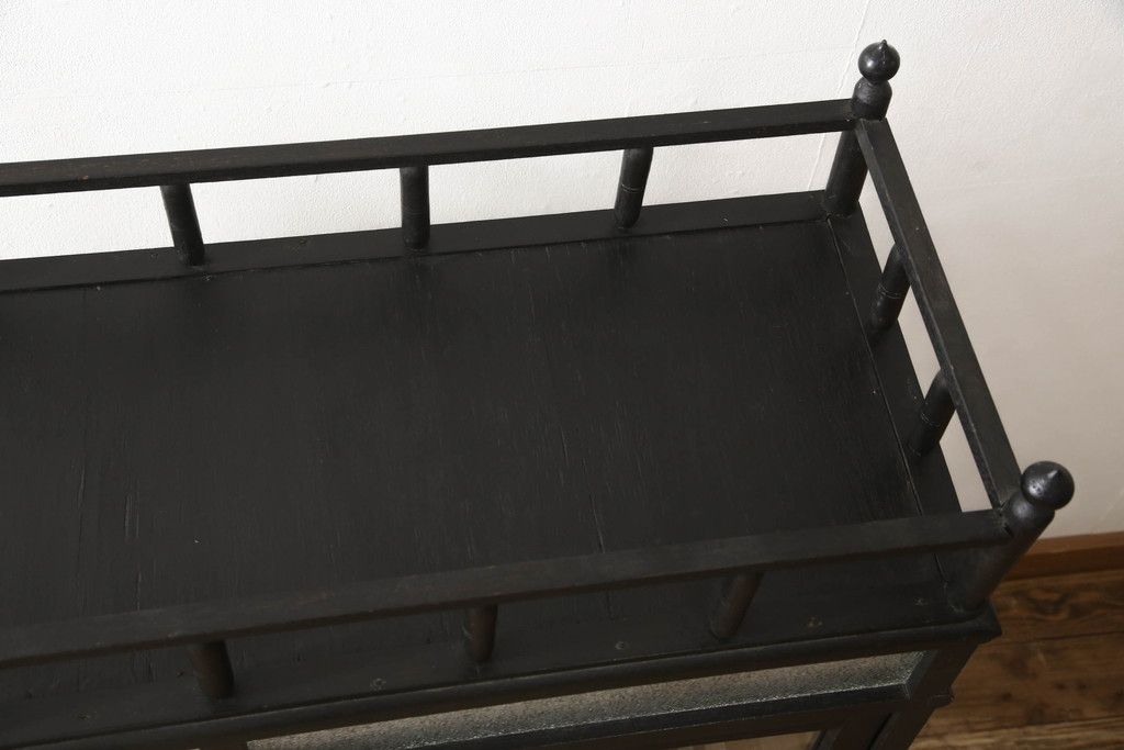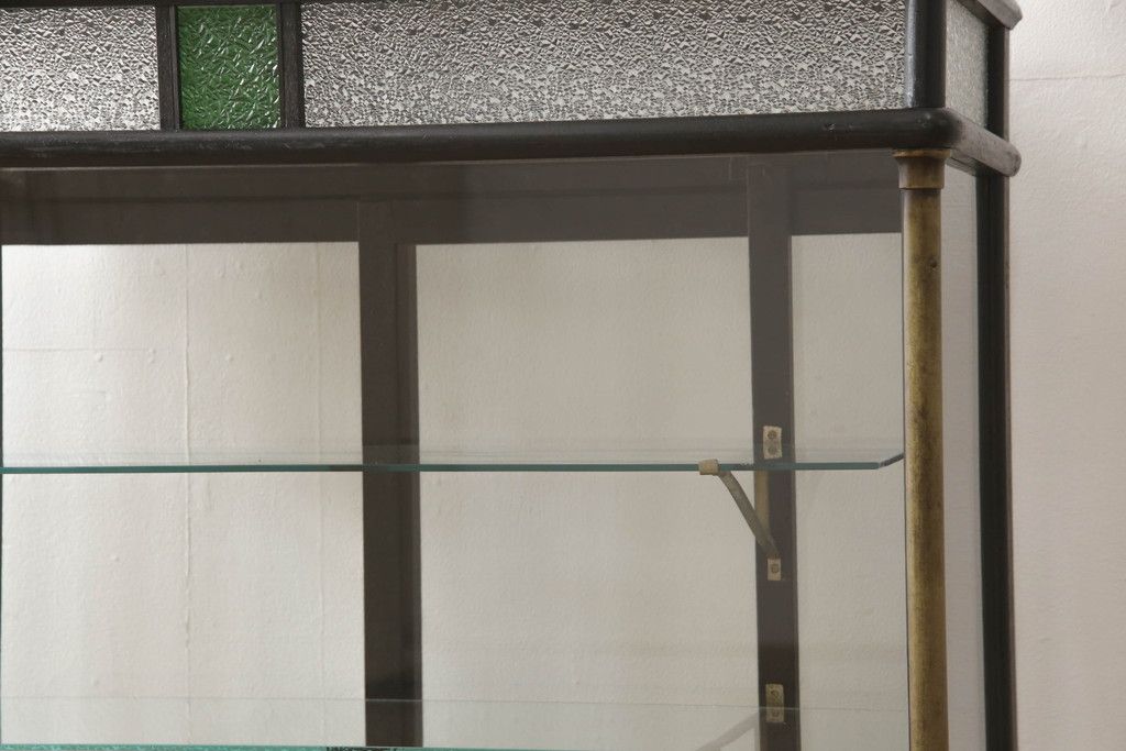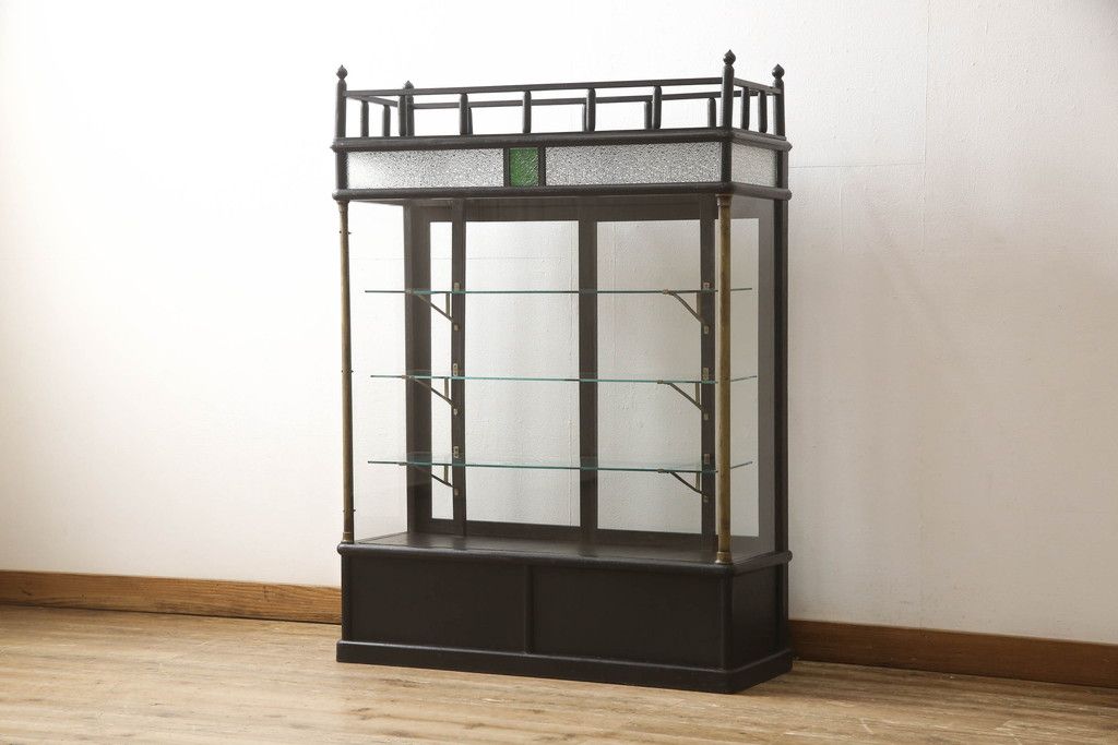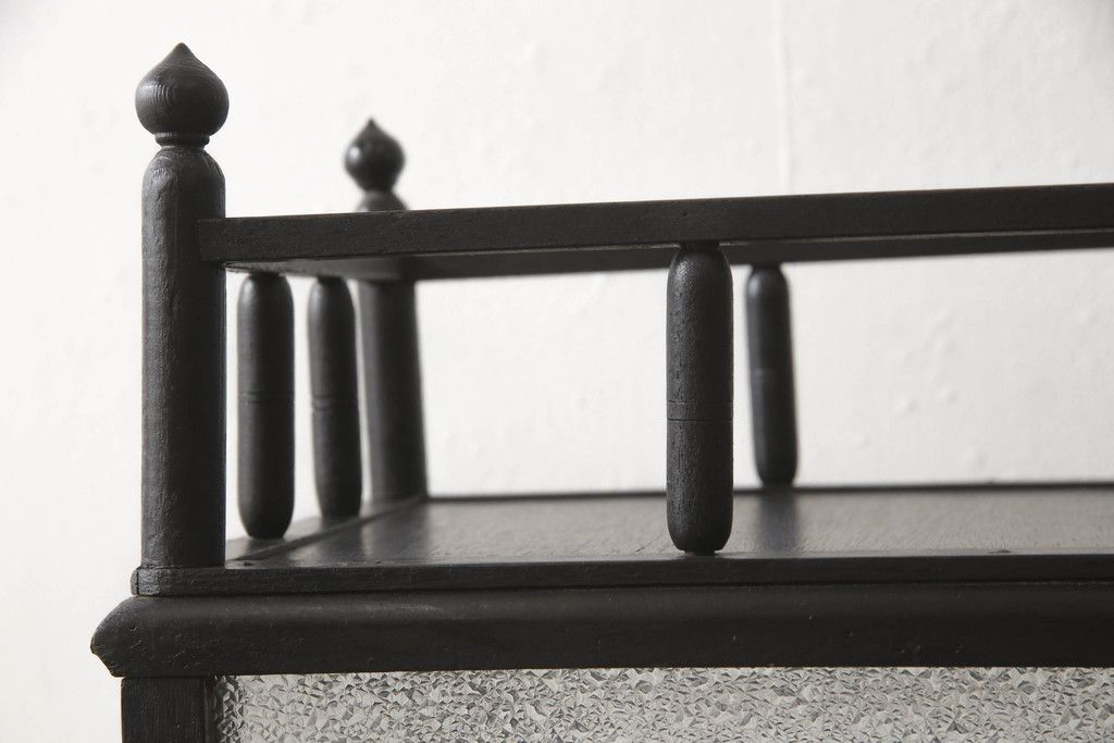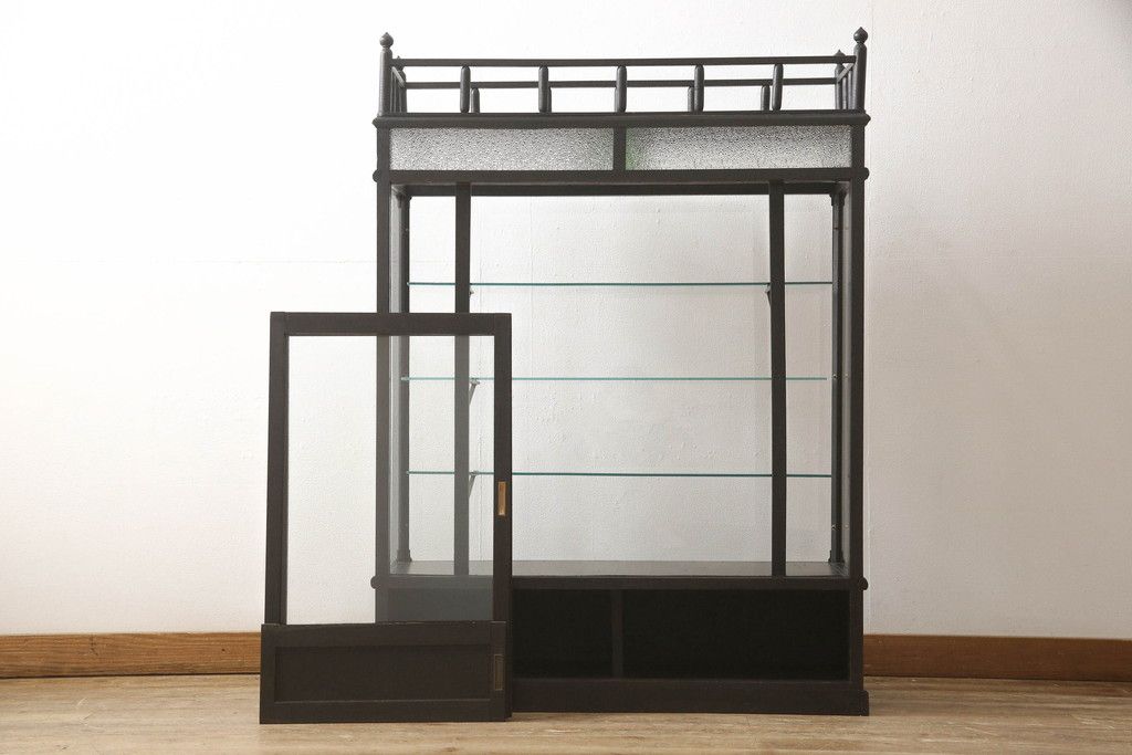ガラスケース・ショーケース > 天枠付きのガラスケースをリペア&カスタム!引き戸の引手を交換。金具はアンティーク感を残し、本体は黒にペイント仕上げ。(陳列棚、ショーケース)