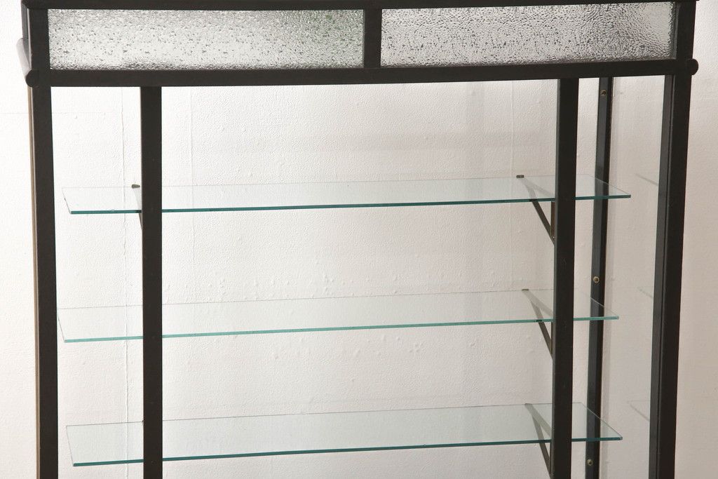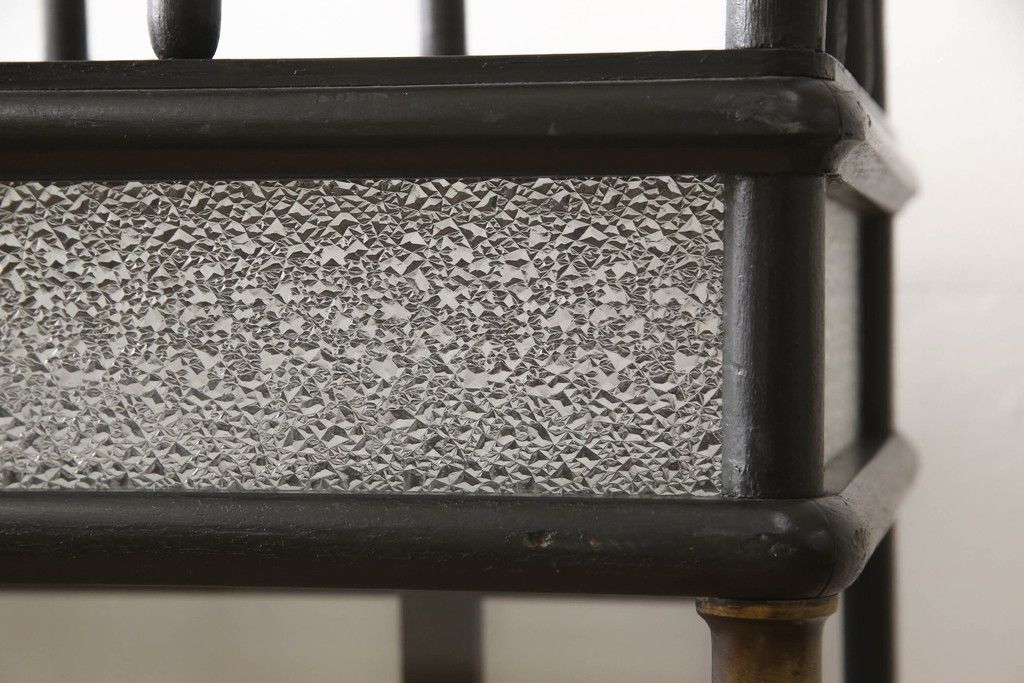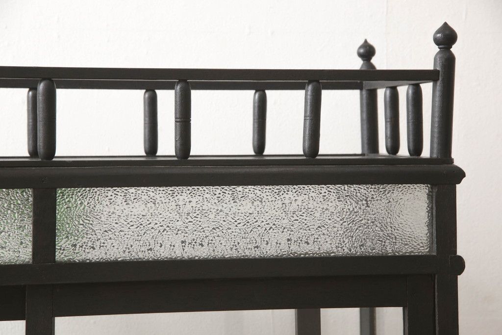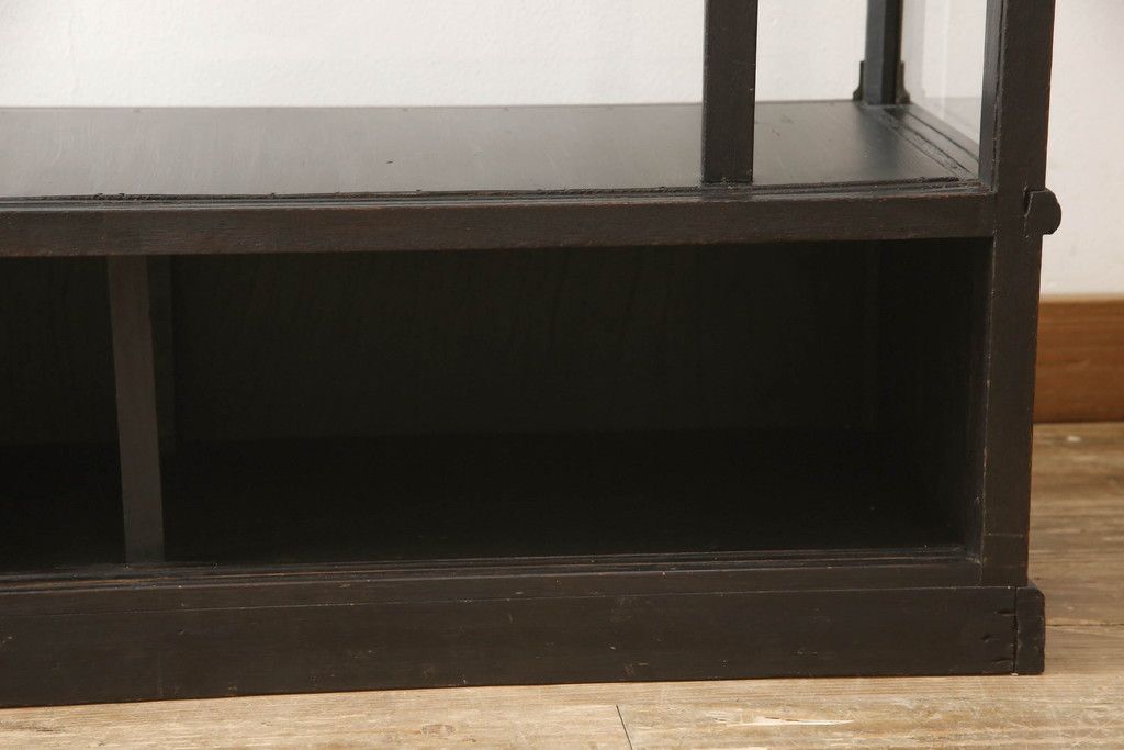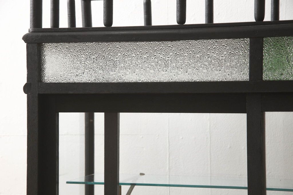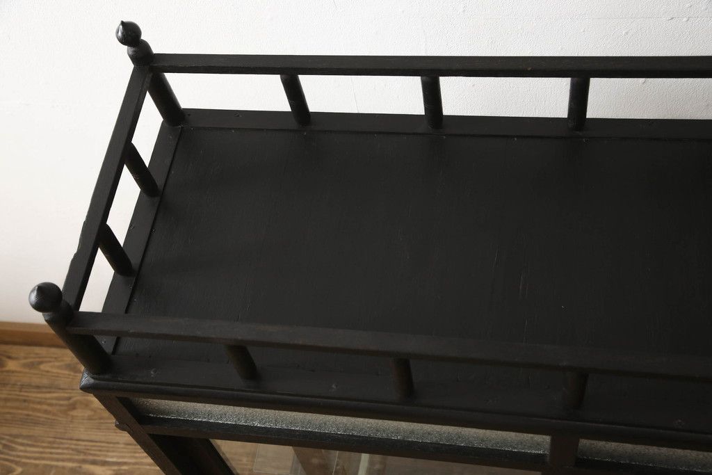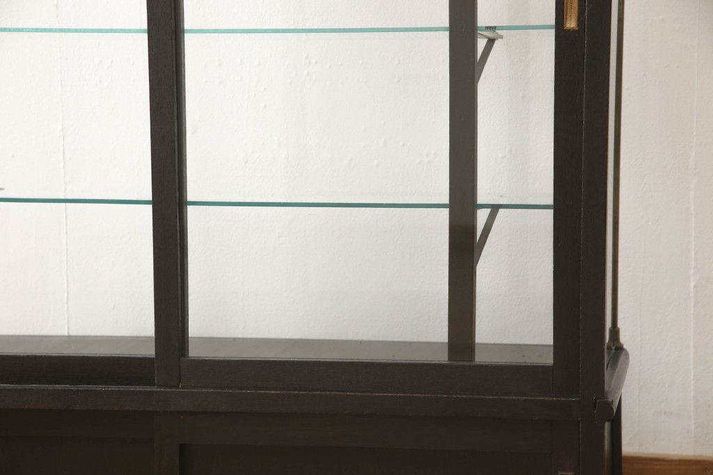 ガラスケース・ショーケース > 天枠付きのガラスケースをリペア&カスタム!引き戸の引手を交換。金具はアンティーク感を残し、本体は黒にペイント仕上げ。(陳列棚、ショーケース)