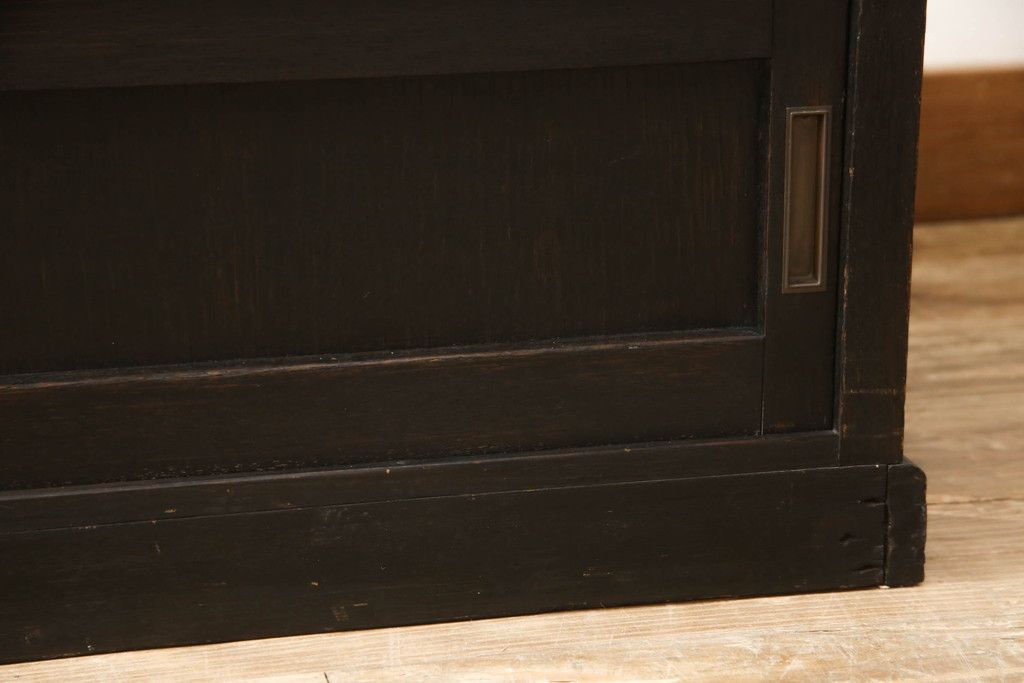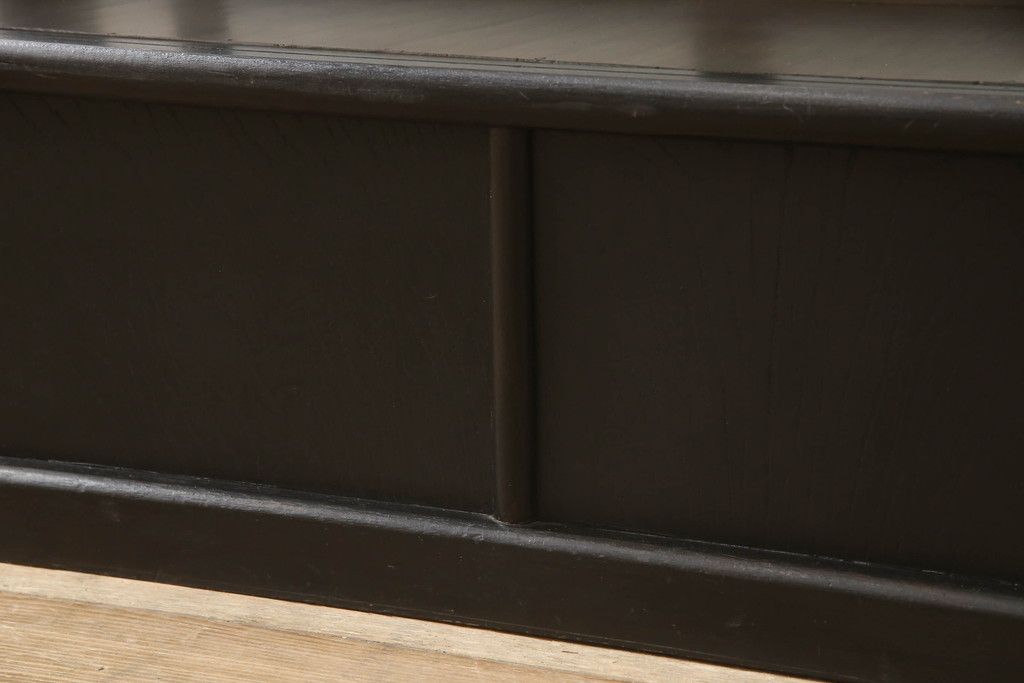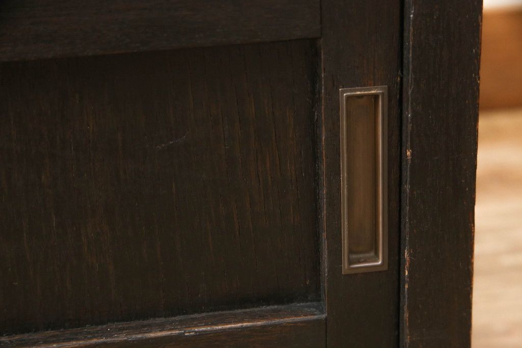 セミオーダー家具実績 > 天枠付きのガラスケースをリペア&カスタム!引き戸の引手を交換。金具はアンティーク感を残し、本体は黒にペイント仕上げ。(陳列棚、ショーケース)