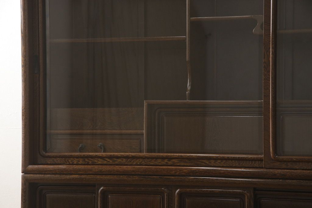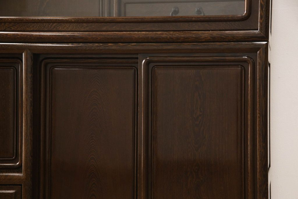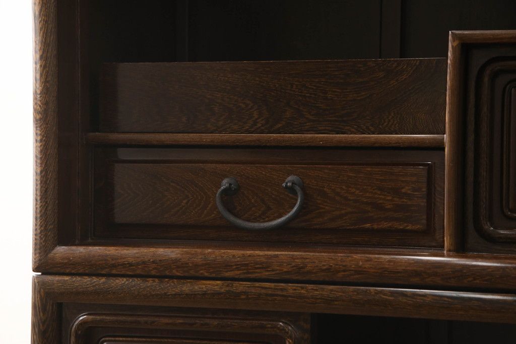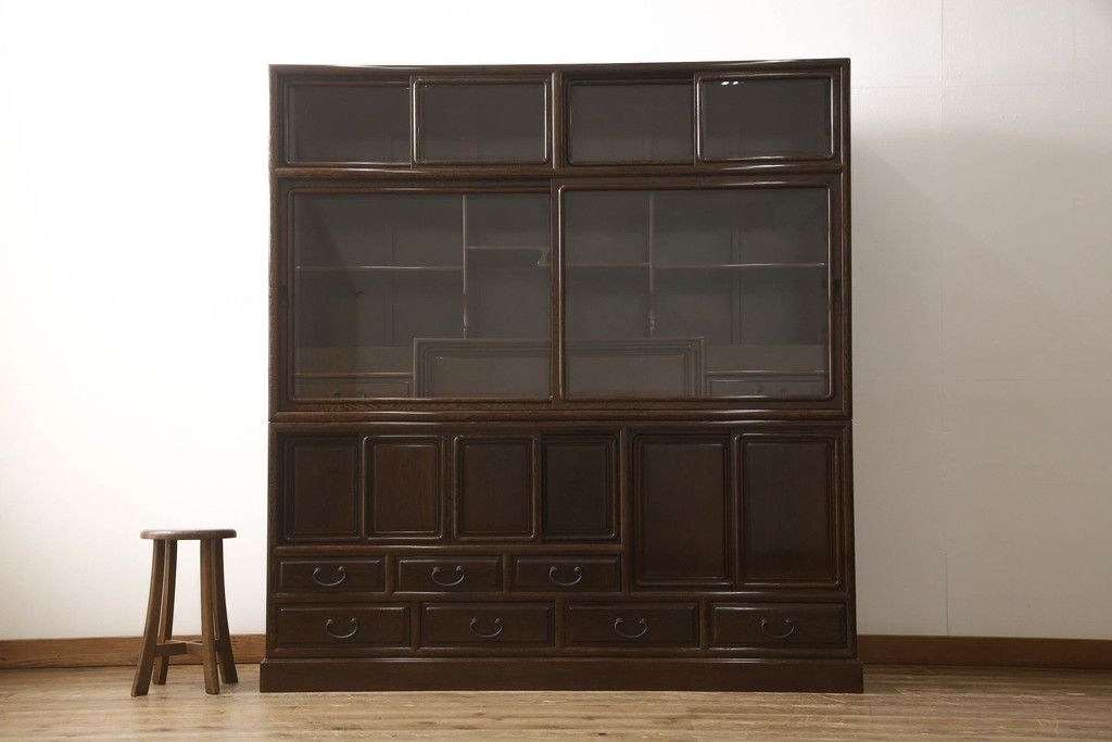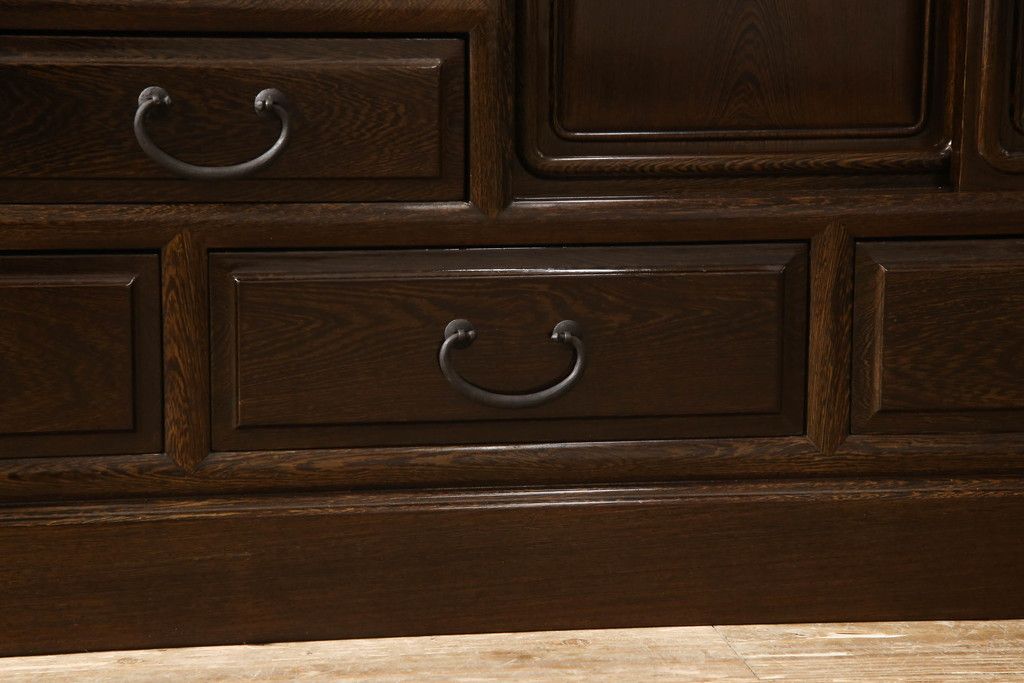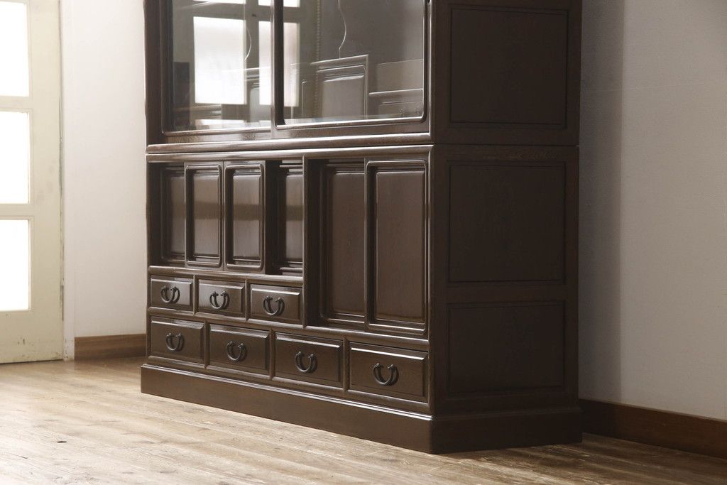 キャビネット・戸棚> 食器棚・カップボード > 二段重ね箪笥をリペア&カスタム!引き出しの取っ手を交換し、全体を1トーン落ち着いた色味に着色仕上げ。(キャビネット、食器棚、収納棚、戸棚、飾り棚、茶棚)