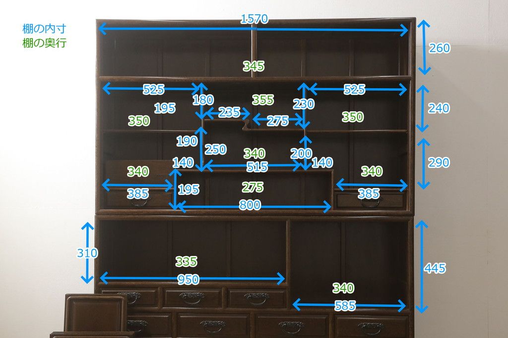 棚の内寸は5枚目の画像に記載しておりますのでそちらをご参考ください。
