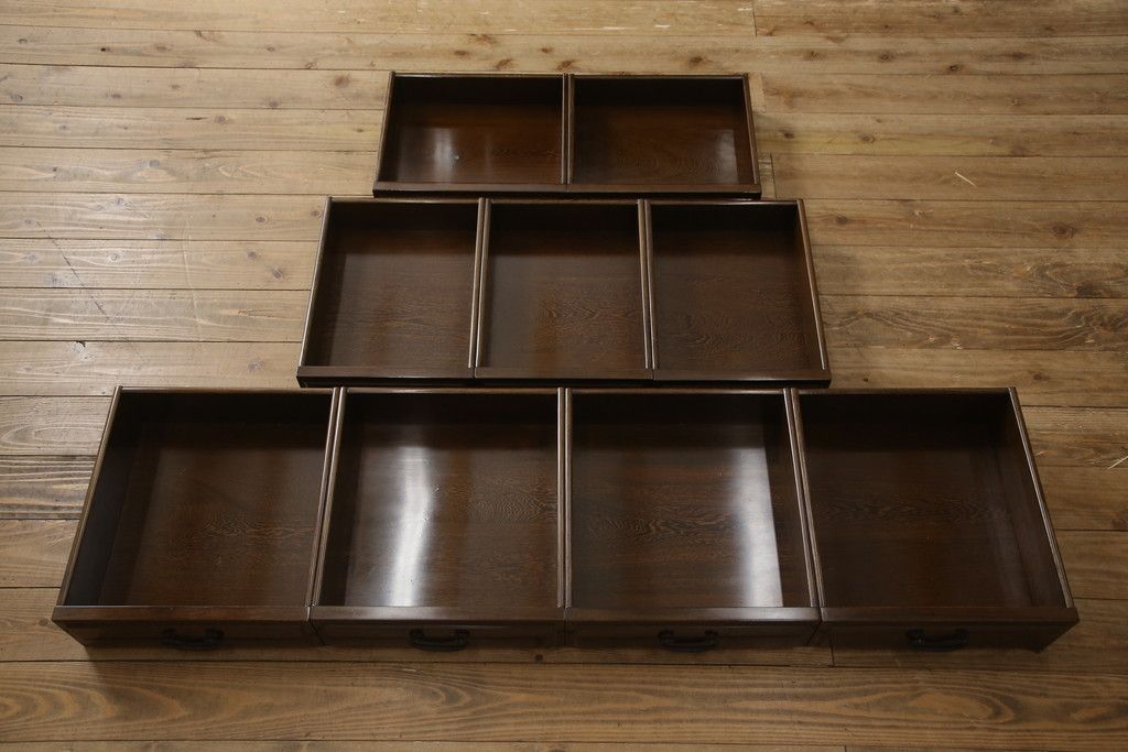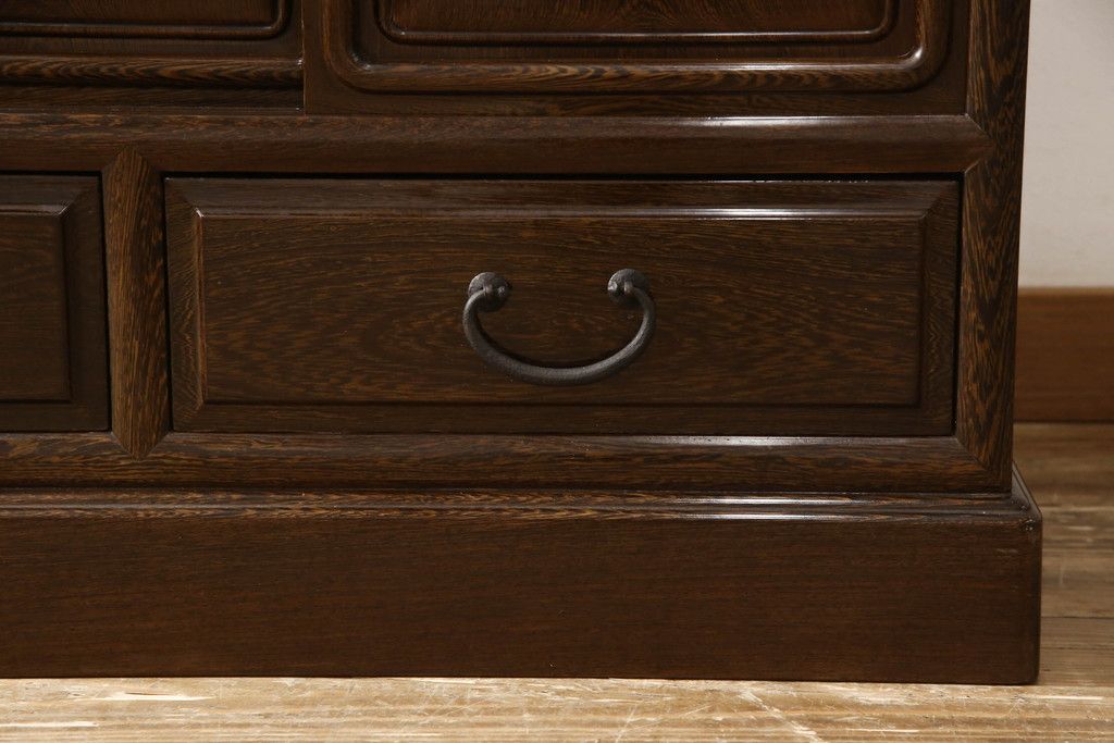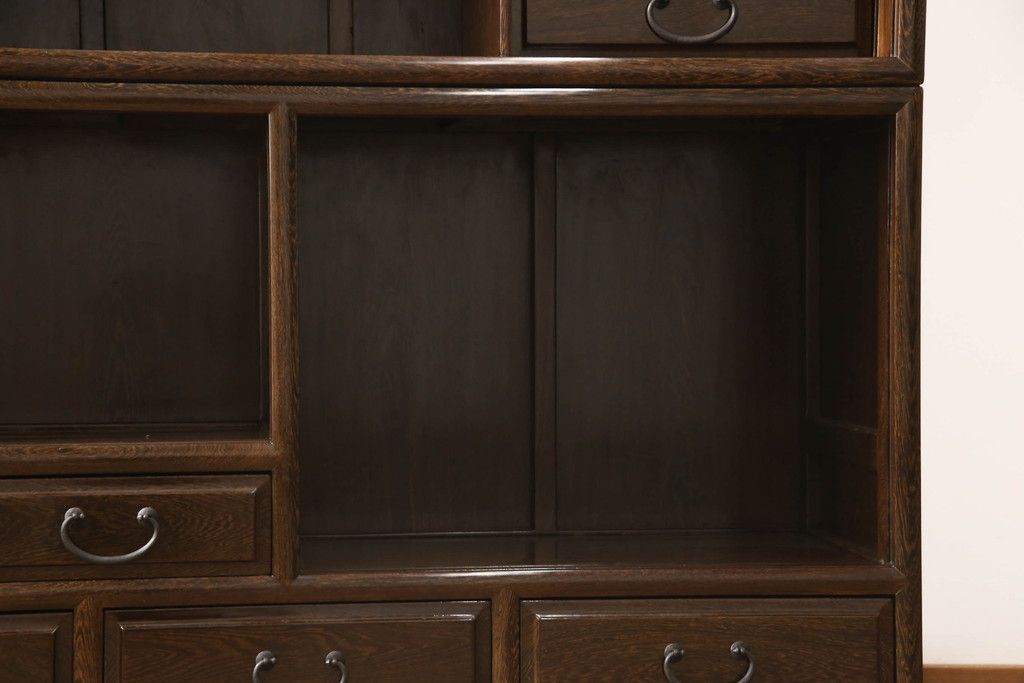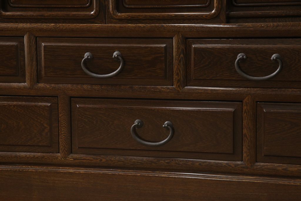 和箪笥> 茶箪笥・茶棚 > 二段重ね箪笥をリペア&カスタム!引き出しの取っ手を交換し、全体を1トーン落ち着いた色味に着色仕上げ。(キャビネット、食器棚、収納棚、戸棚、飾り棚、茶棚)