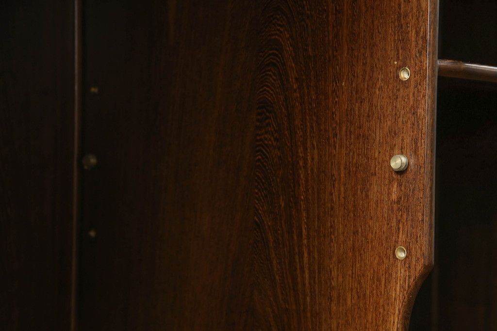 棚板は取り外しできます。棚板は各1枚あります。棚受けは2ヶ所、60mmピッチで調整できます。棚幅サイズのものが1枚の作りです。