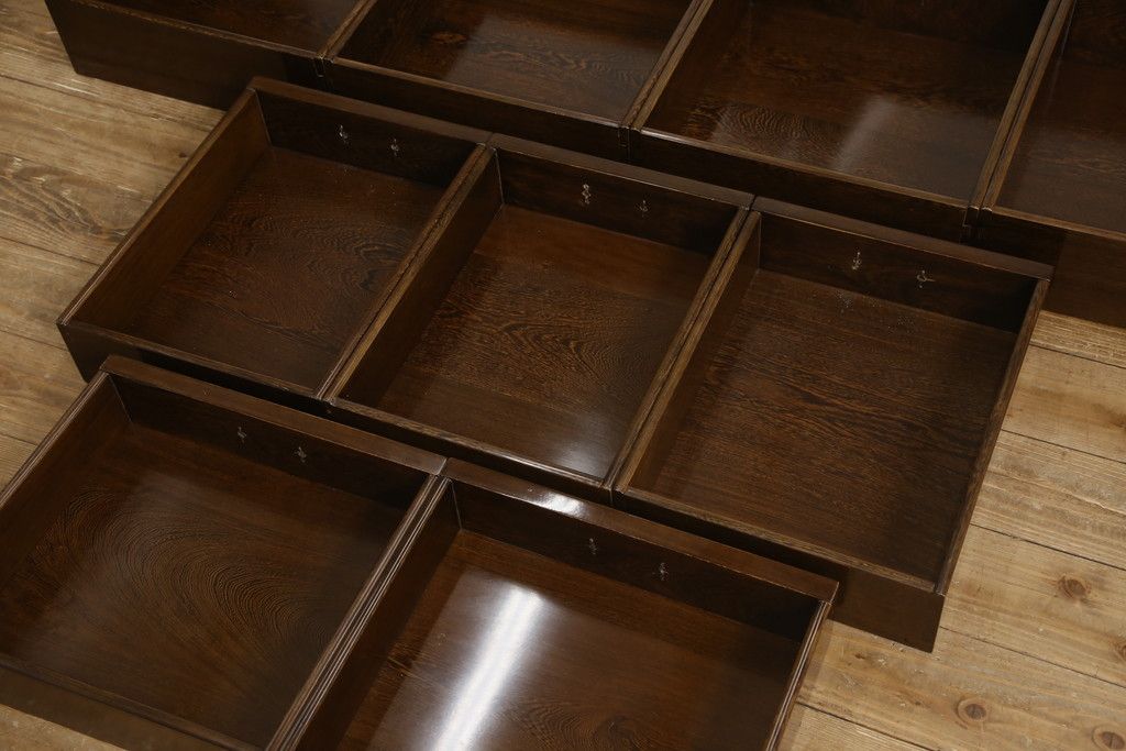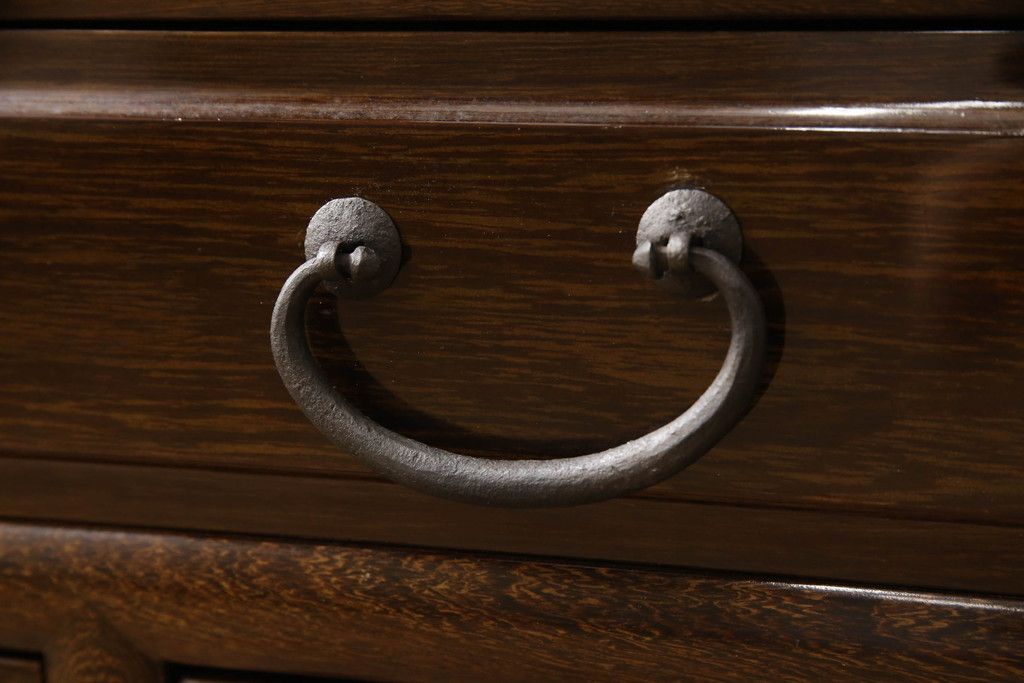 セミオーダー家具実績 > 二段重ね箪笥をリペア&カスタム!引き出しの取っ手を交換し、全体を1トーン落ち着いた色味に着色仕上げ。(キャビネット、食器棚、収納棚、戸棚、飾り棚、茶棚)