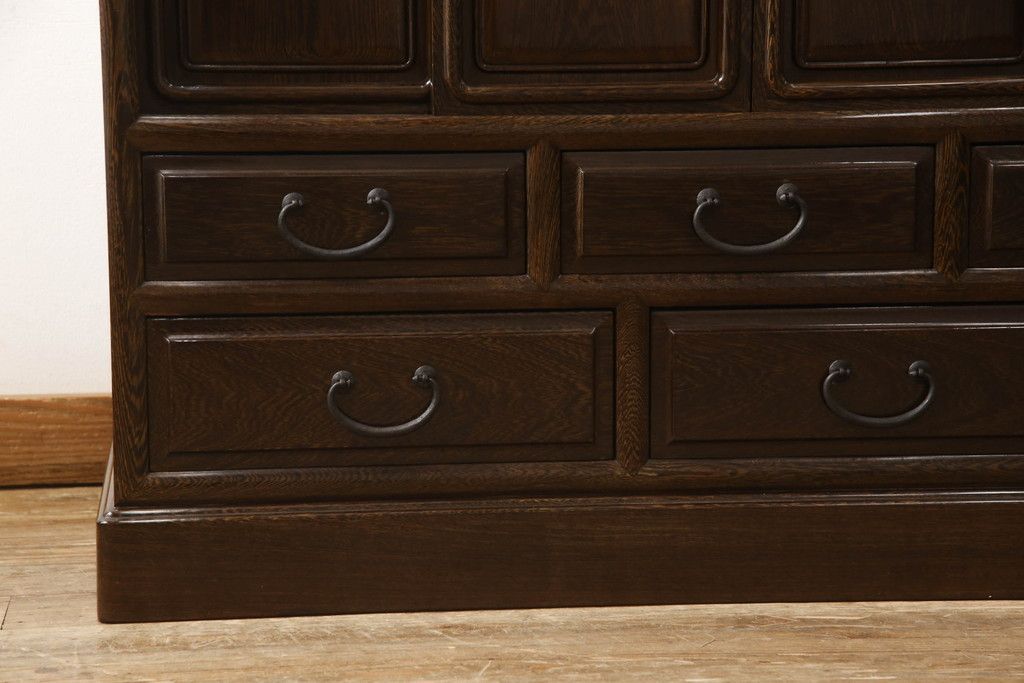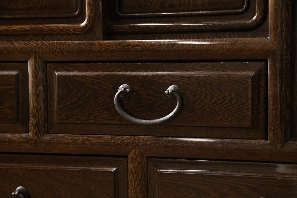 二段重ね箪笥をリペア&カスタム!引き出しの取っ手を交換し、全体を1トーン落ち着いた色味に着色仕上げ。(キャビネット、食器棚、収納棚、戸棚、飾り棚、茶棚)