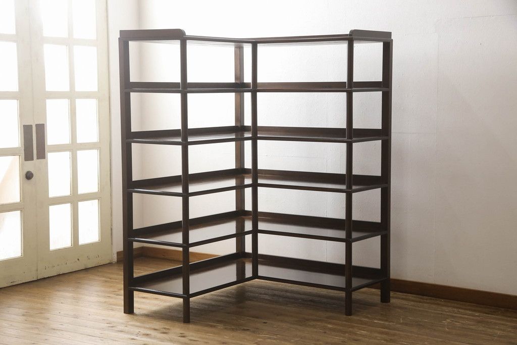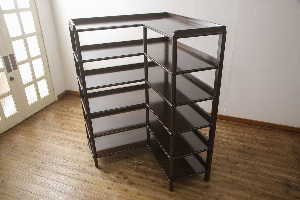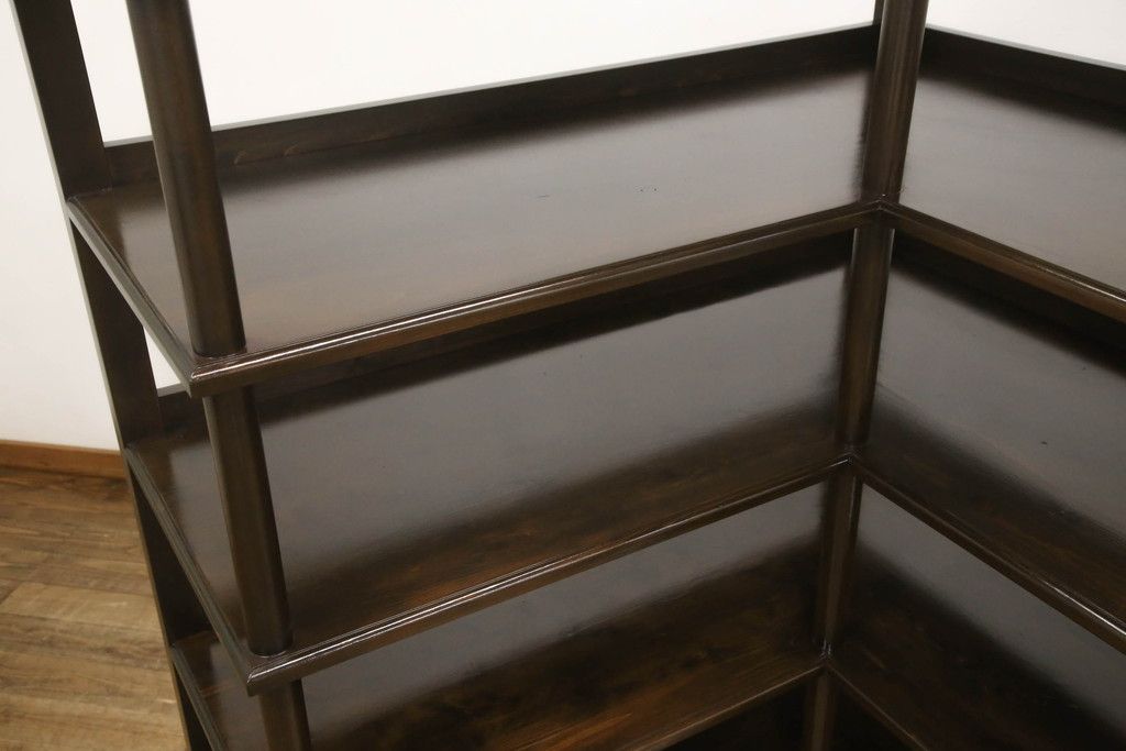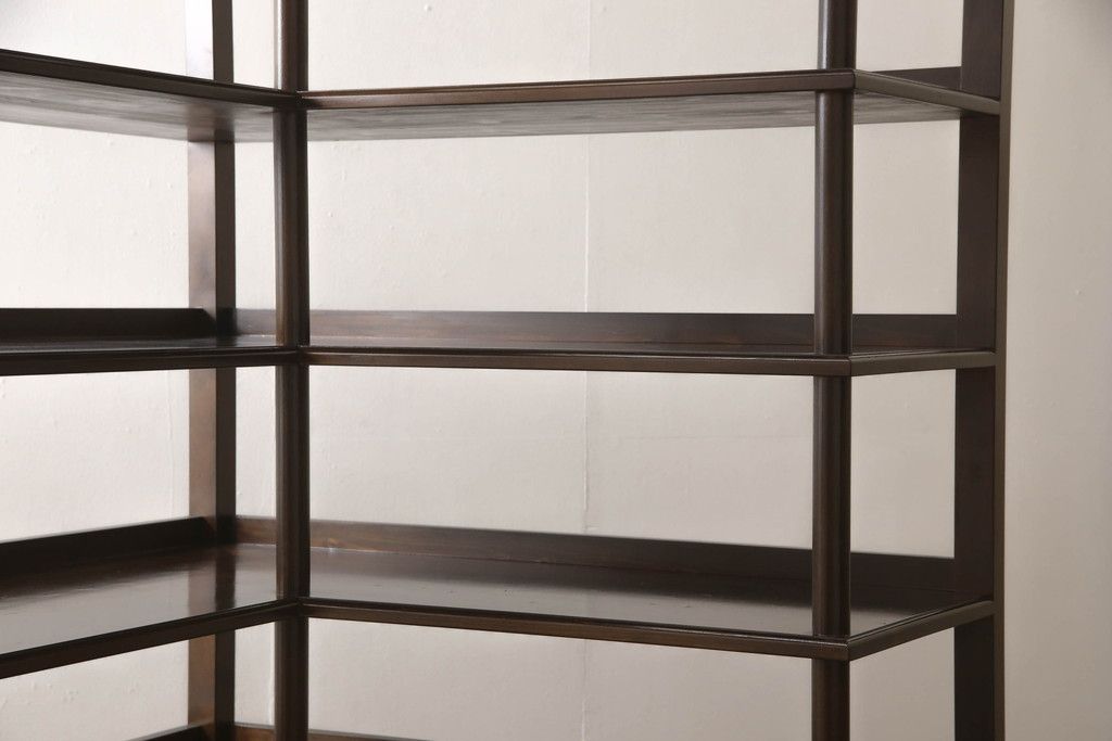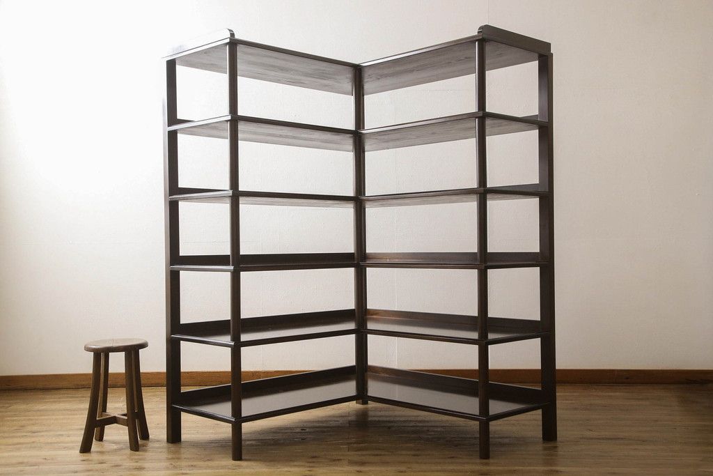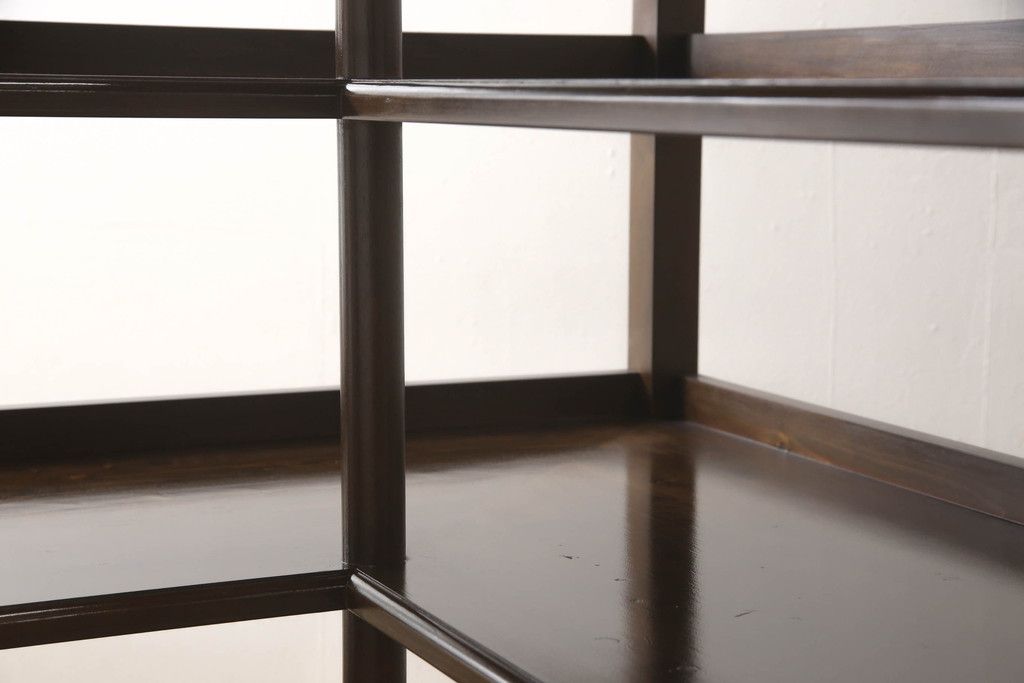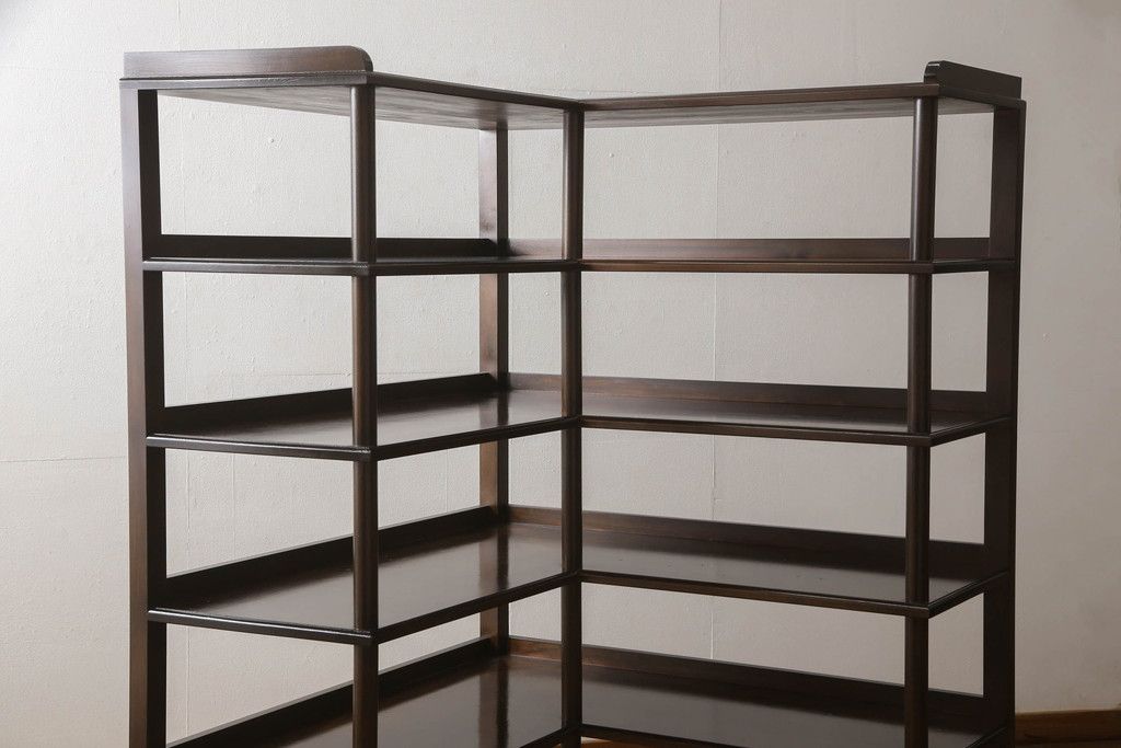 L字型収納棚を新規製作!ご希望の棚数とサイズで製作し、濃い茶色で着色仕上げ。(コーナーラック、飾り棚、オープンラック)