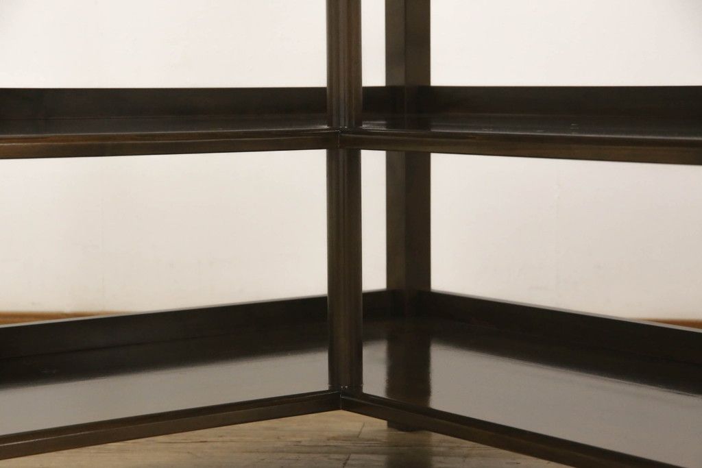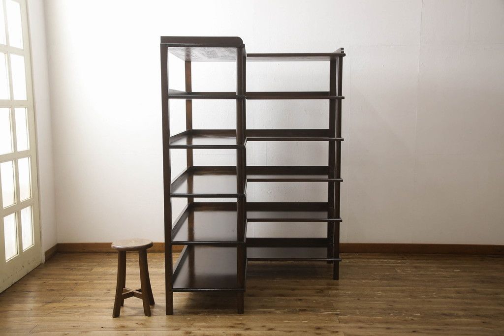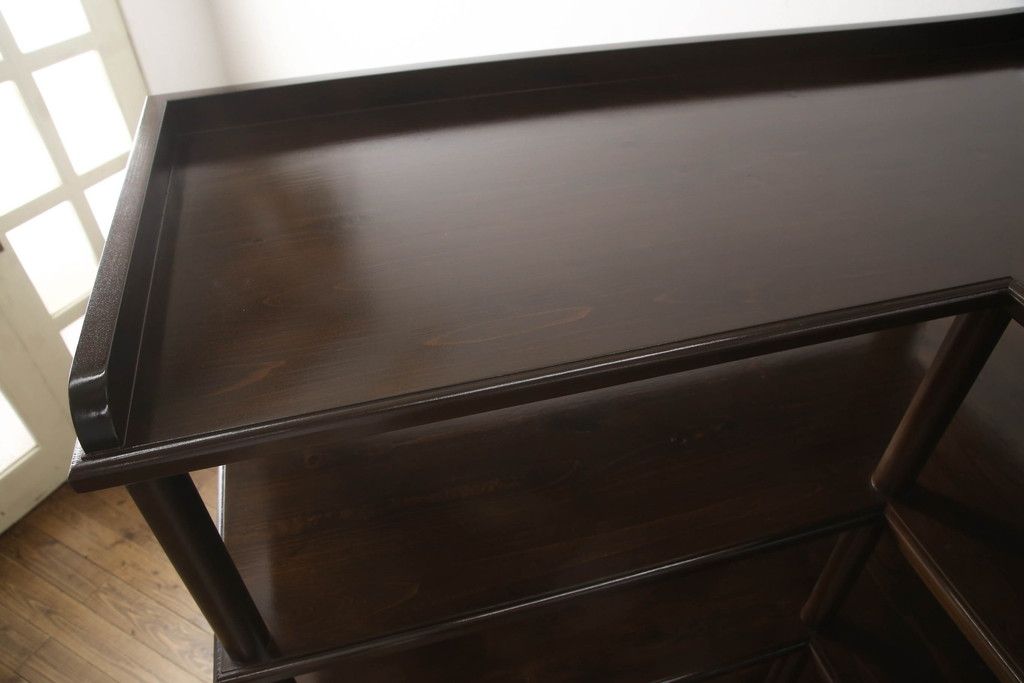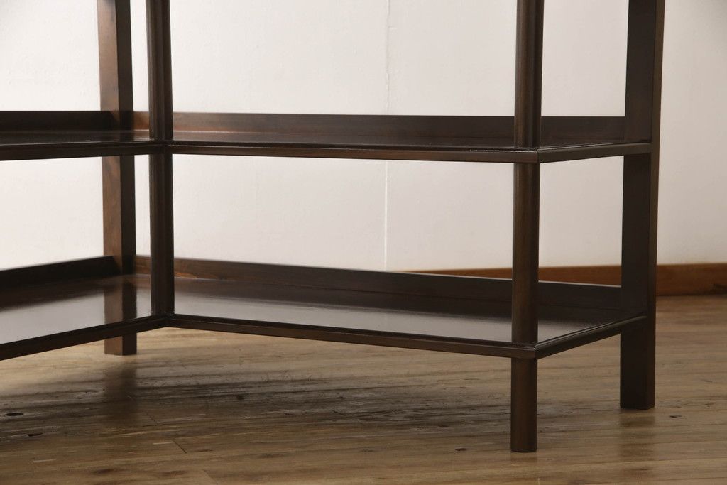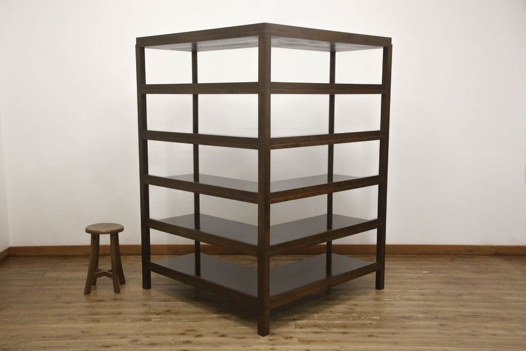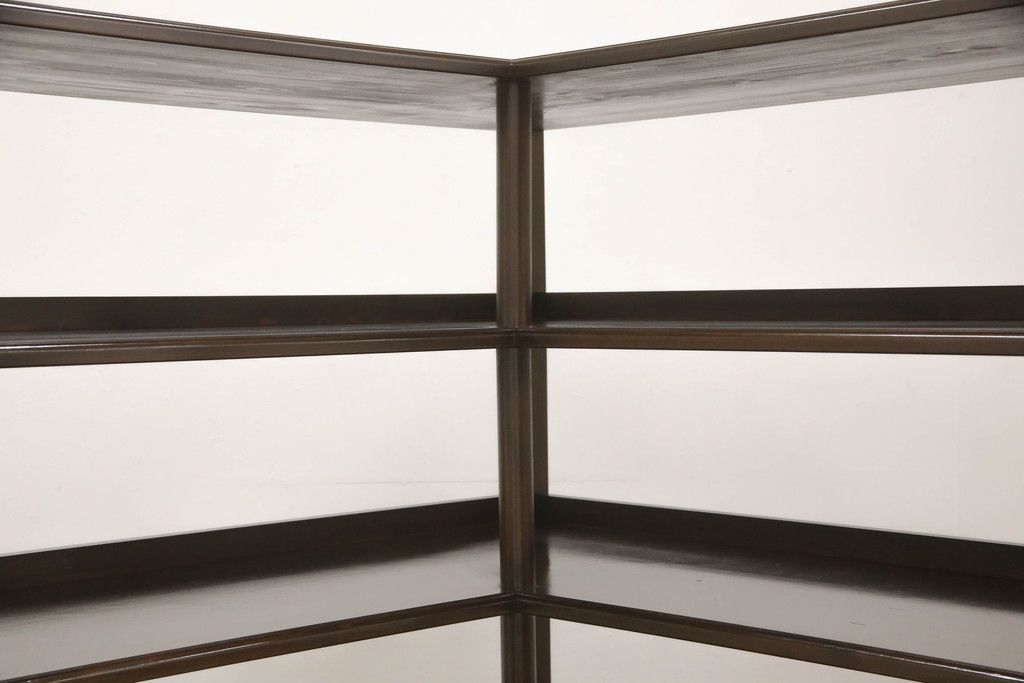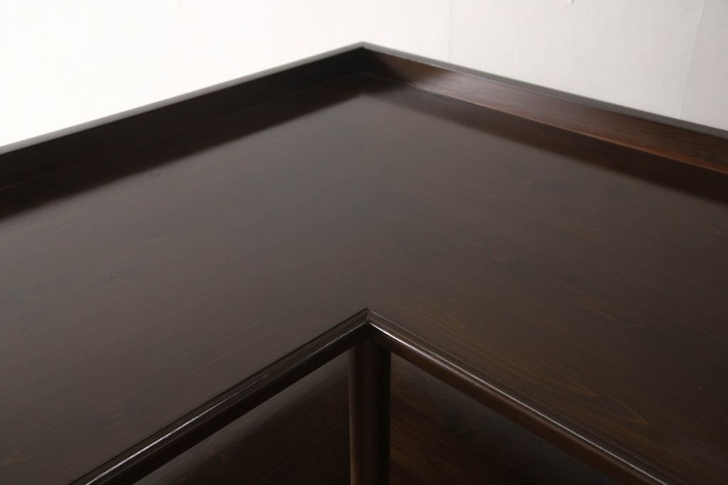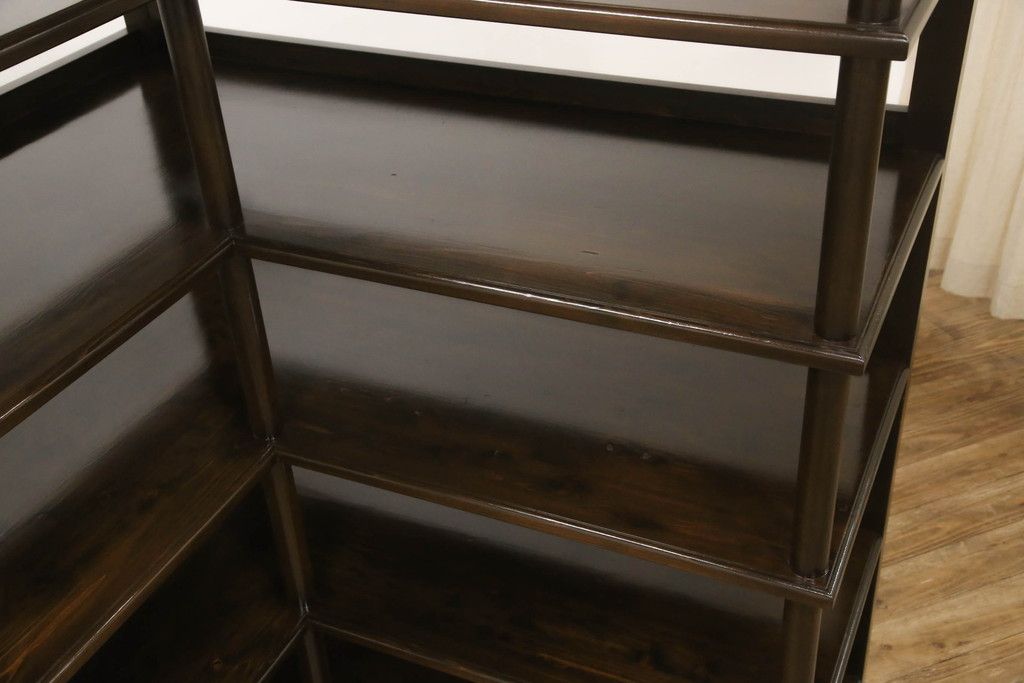 L字型収納棚を新規製作!ご希望の棚数とサイズで製作し、濃い茶色で着色仕上げ。(コーナーラック、飾り棚、オープンラック)
