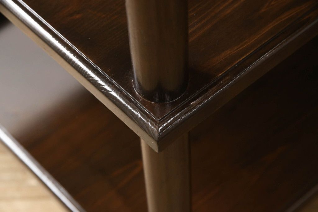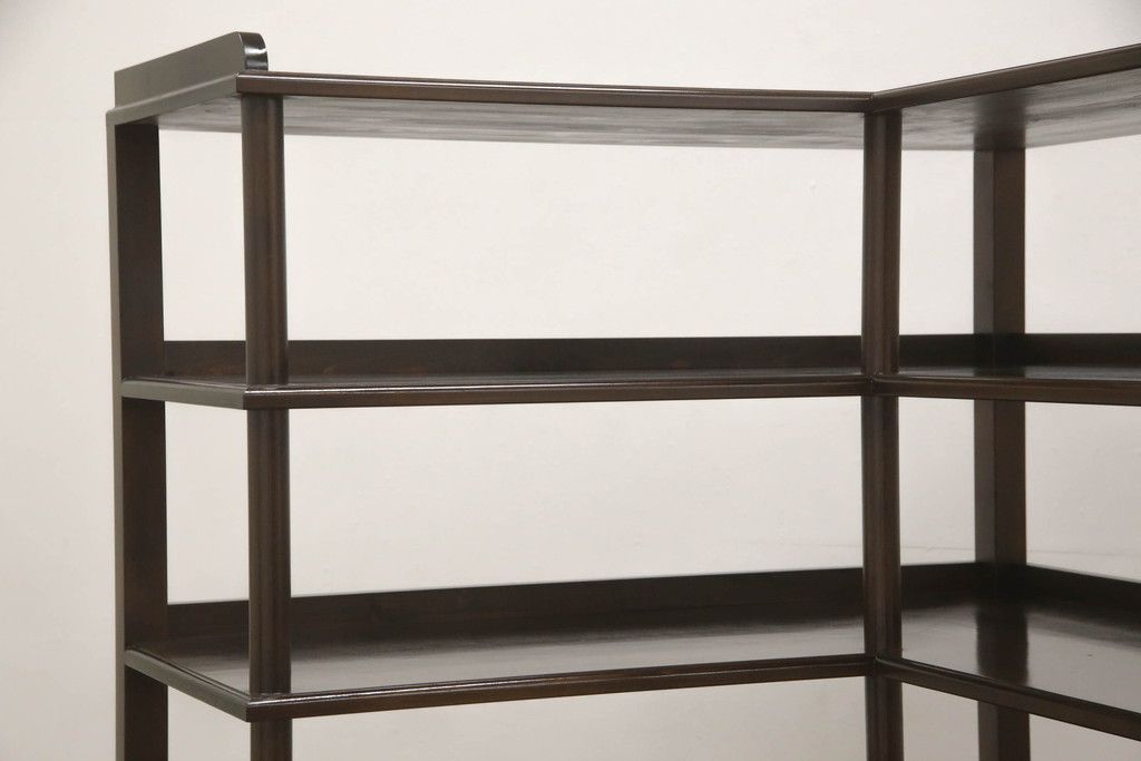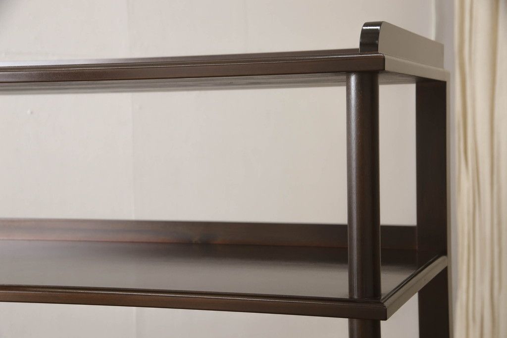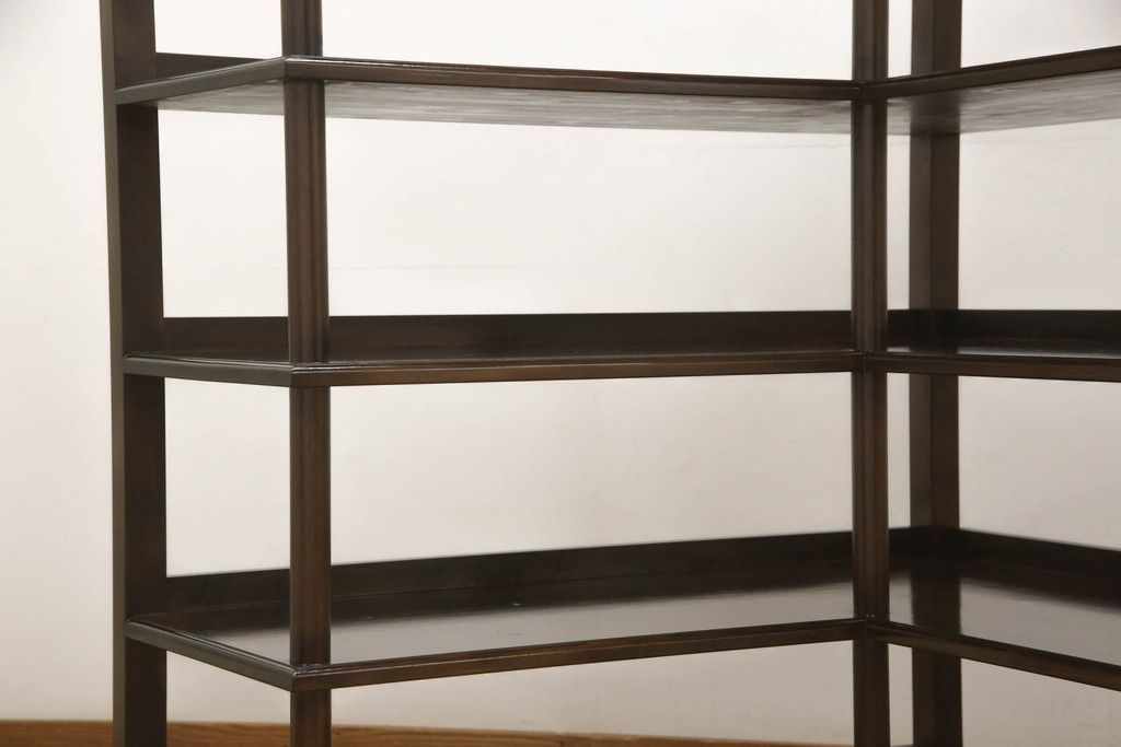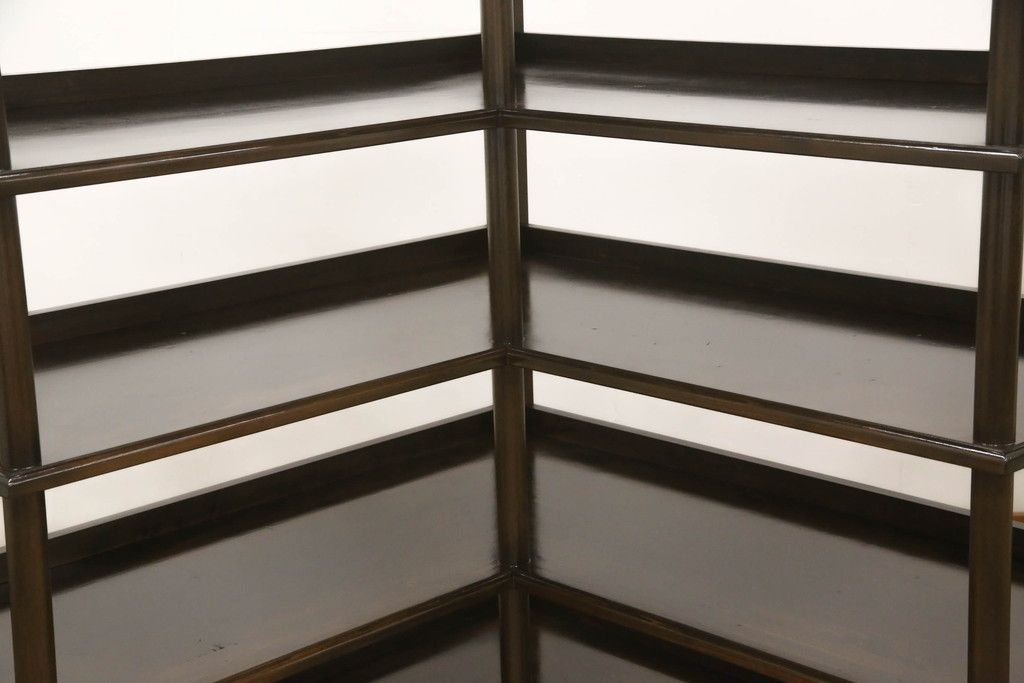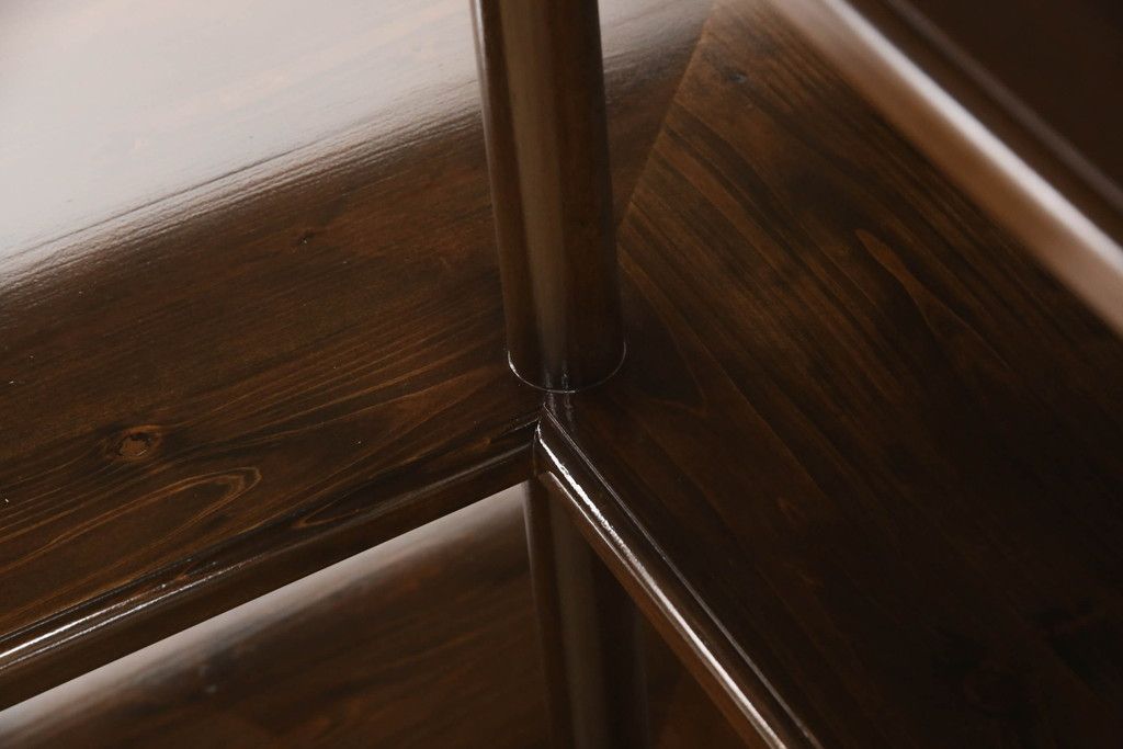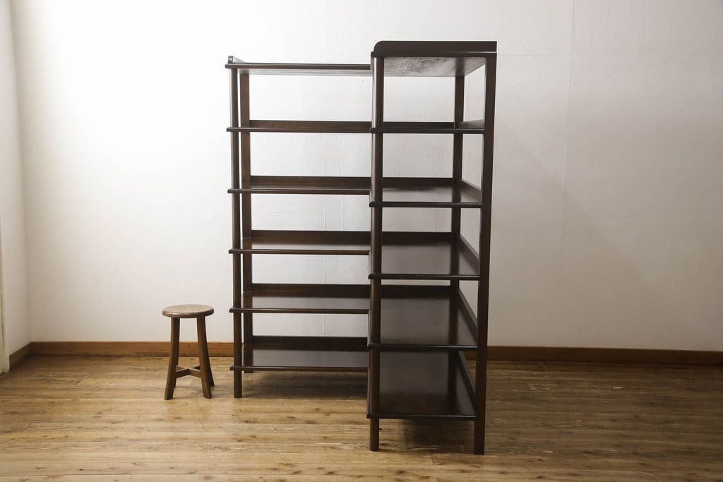 L字型収納棚を新規製作!ご希望の棚数とサイズで製作し、濃い茶色で着色仕上げ。(コーナーラック、飾り棚、オープンラック)