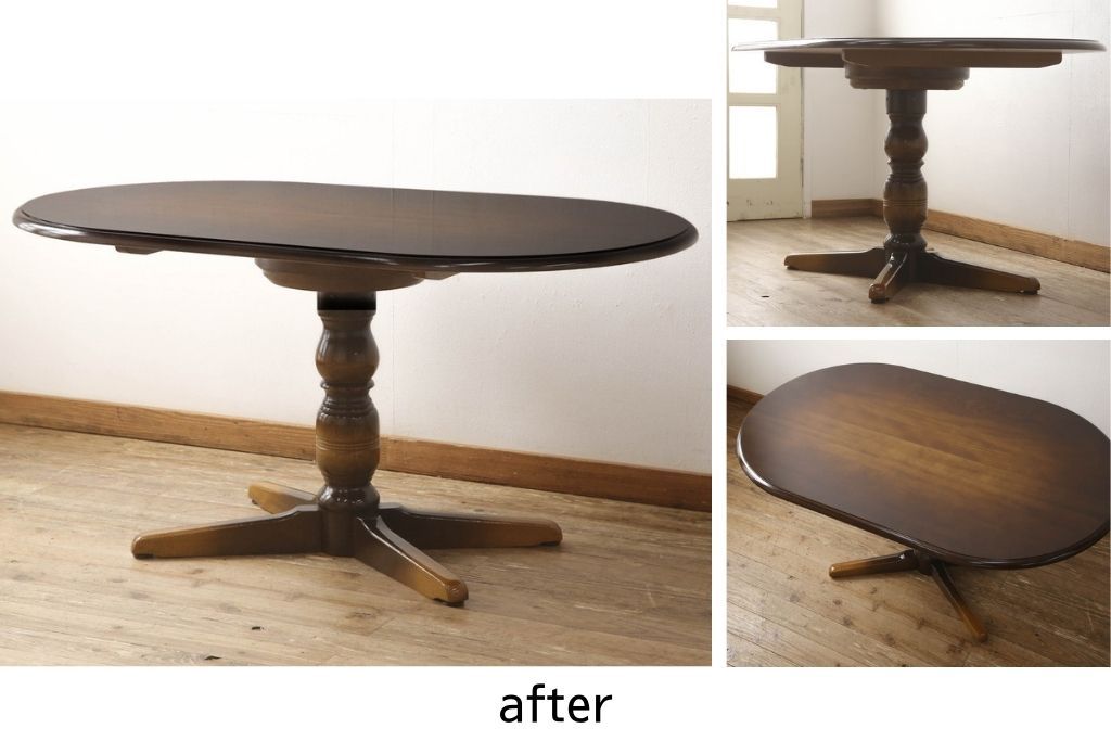 テーブルの高さを高くリメイク!高品質リペアを施し、取り外せる仕様の調整脚を取り付け。現状の色をベースに着色仕上げ。