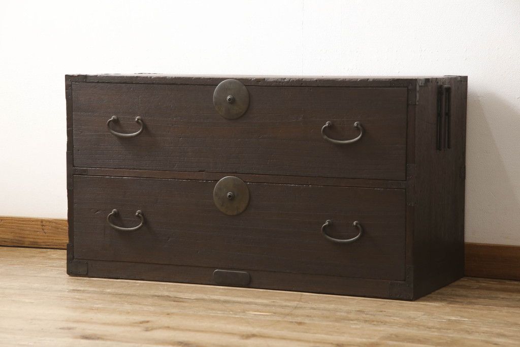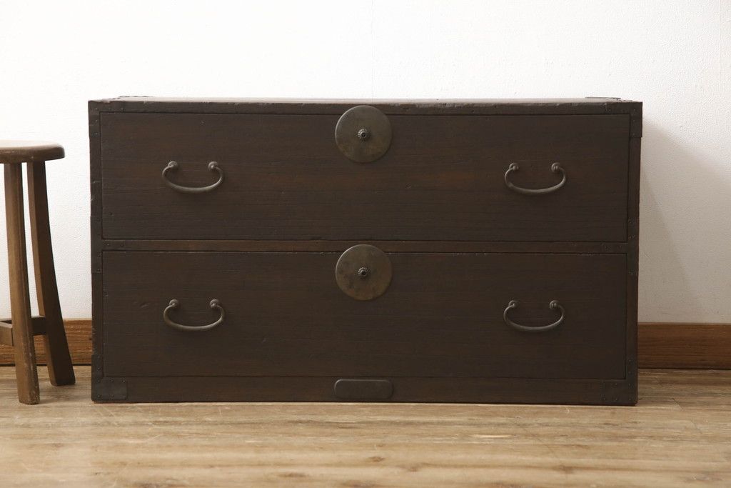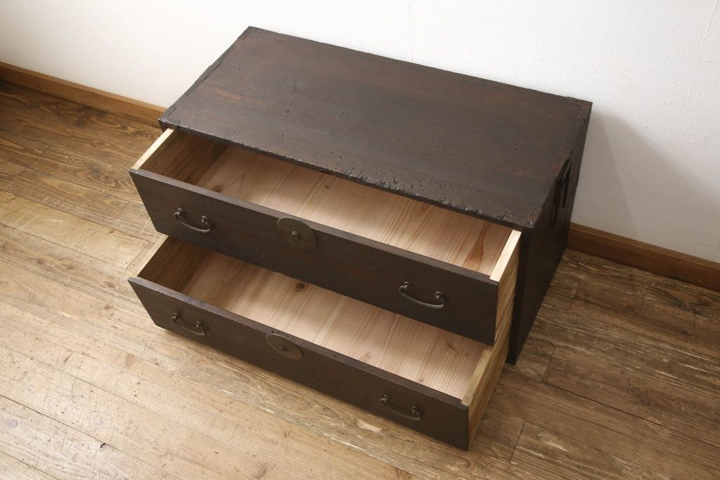 チェスト・引き出し> ローチェスト > 昭和初期の箪笥の見た目を変えずに綺麗にリペア!元の味を活かしてチェスナット系に着色仕上げ。(ローボード、ローチェスト、テレビ台、テレビボード、収納箪笥、衣装箪笥、引き出し)