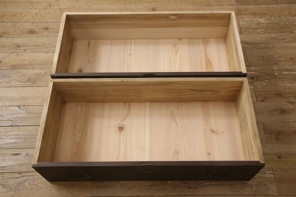 セミオーダー家具実績 > 昭和初期の箪笥の見た目を変えずに綺麗にリペア!元の味を活かしてチェスナット系に着色仕上げ。(ローボード、ローチェスト、テレビ台、テレビボード、収納箪笥、衣装箪笥、引き出し)
