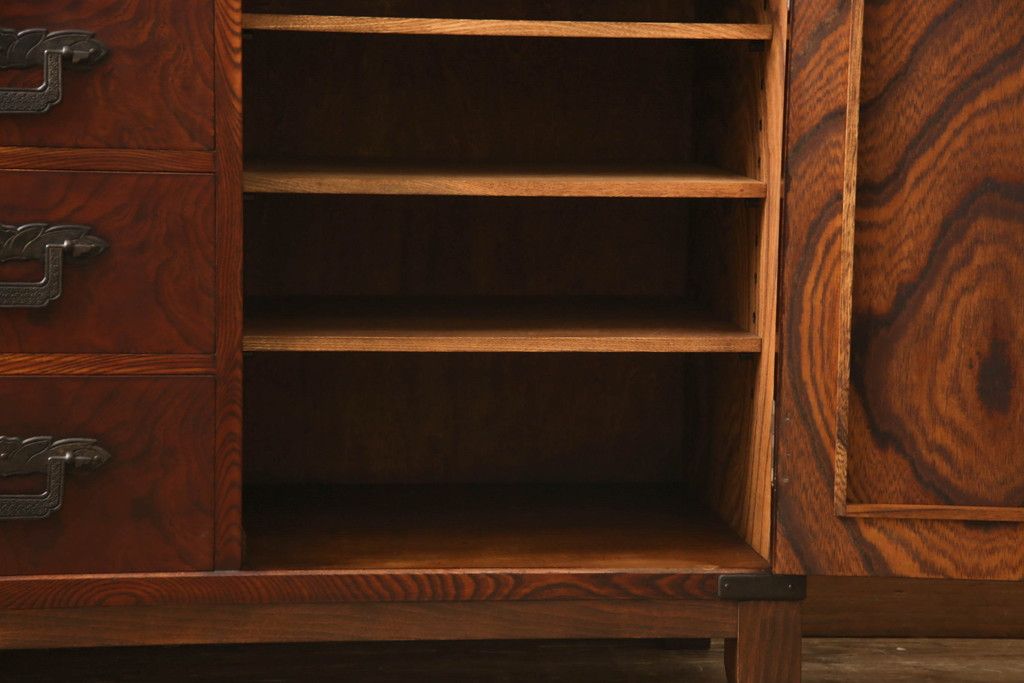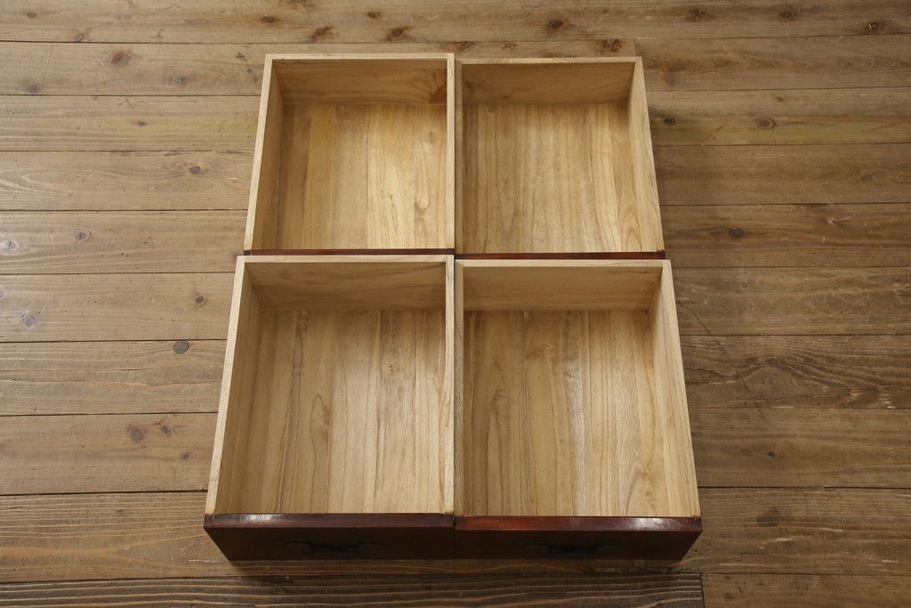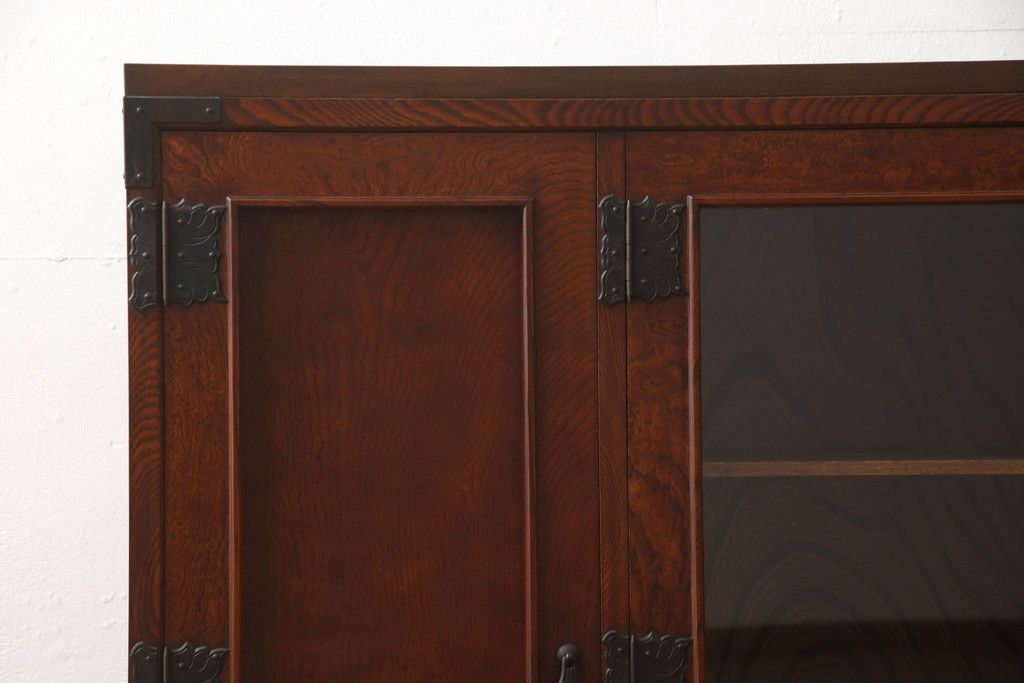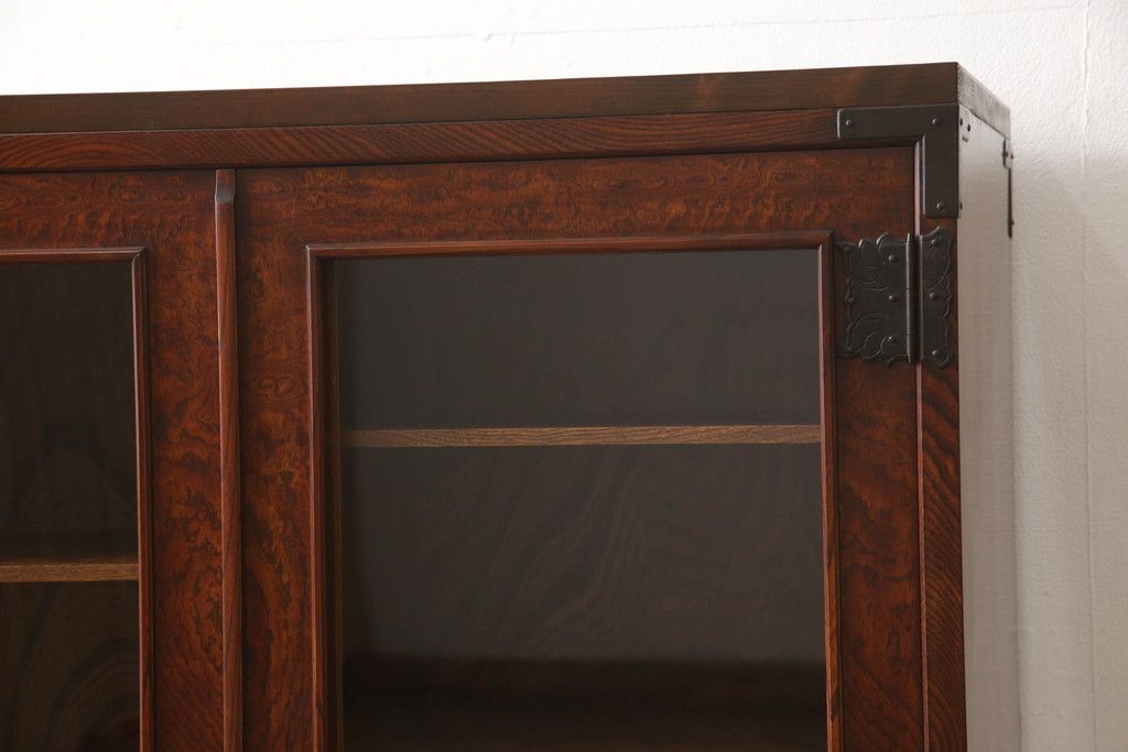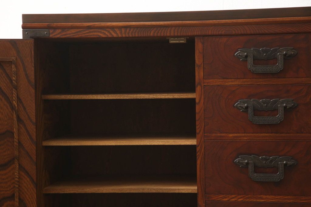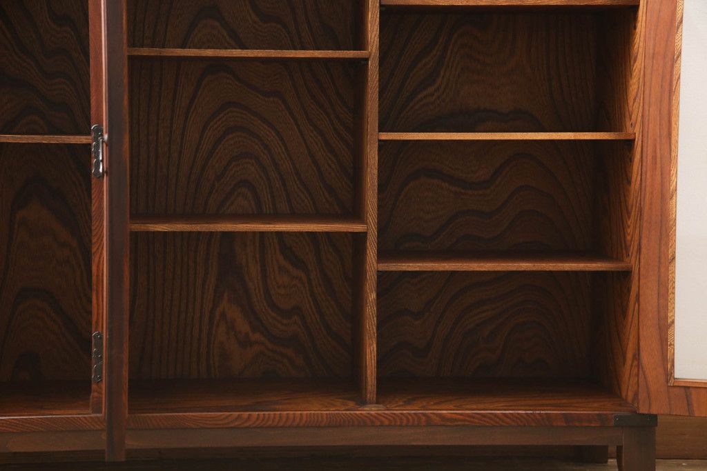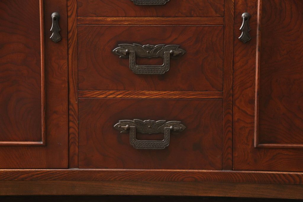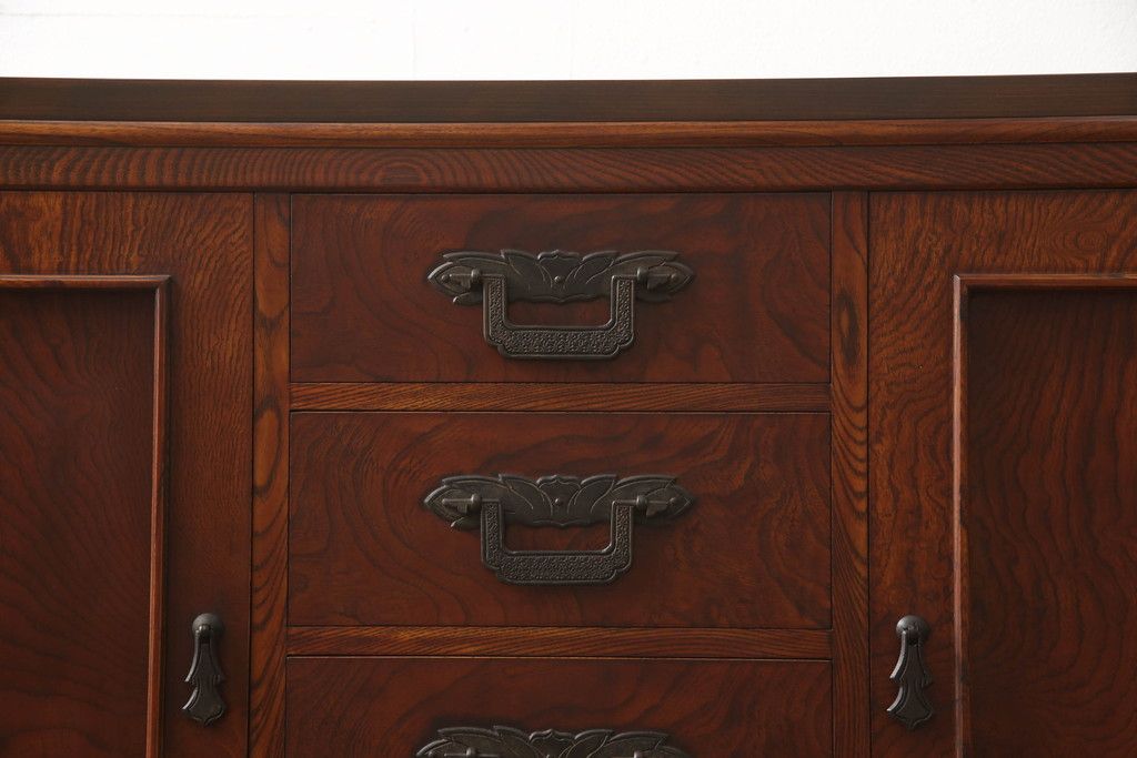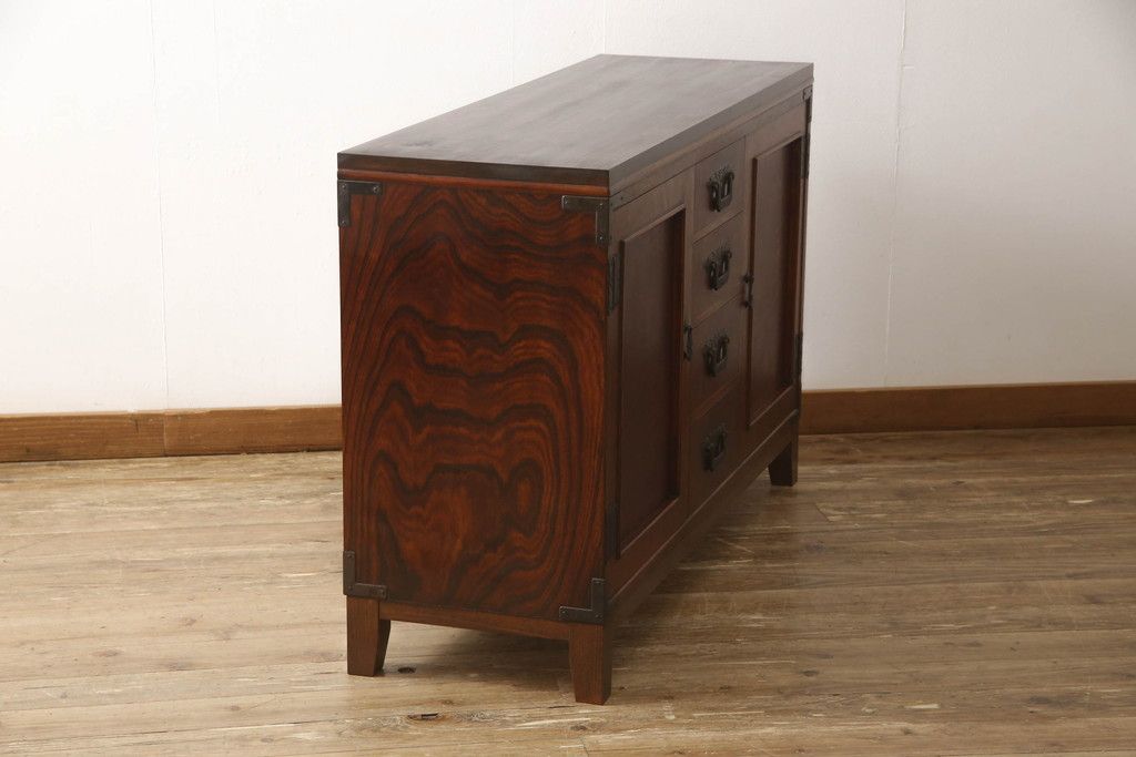 食器棚を2つのサイドボードにリメイク!上下段に分けて、それぞれヒノキ無垢材の天板と木製の脚を取り付け。ワントーン落ち着いた色に着色仕上げ。