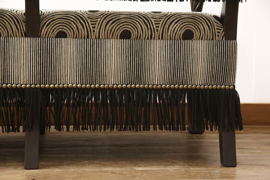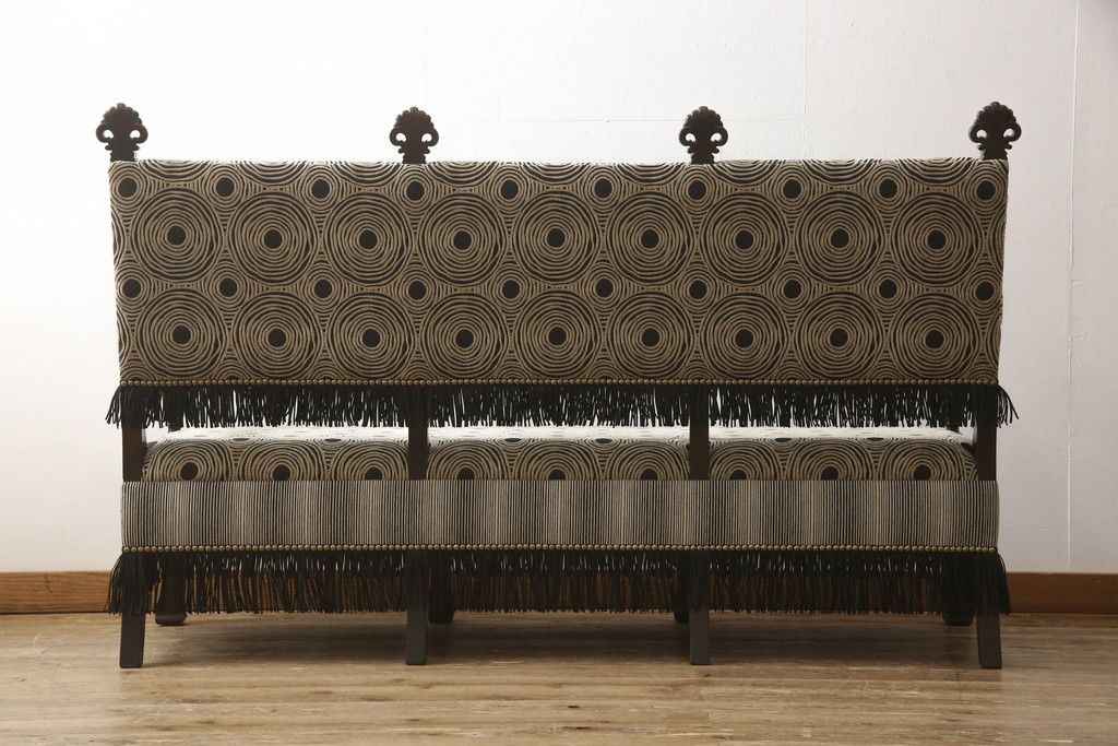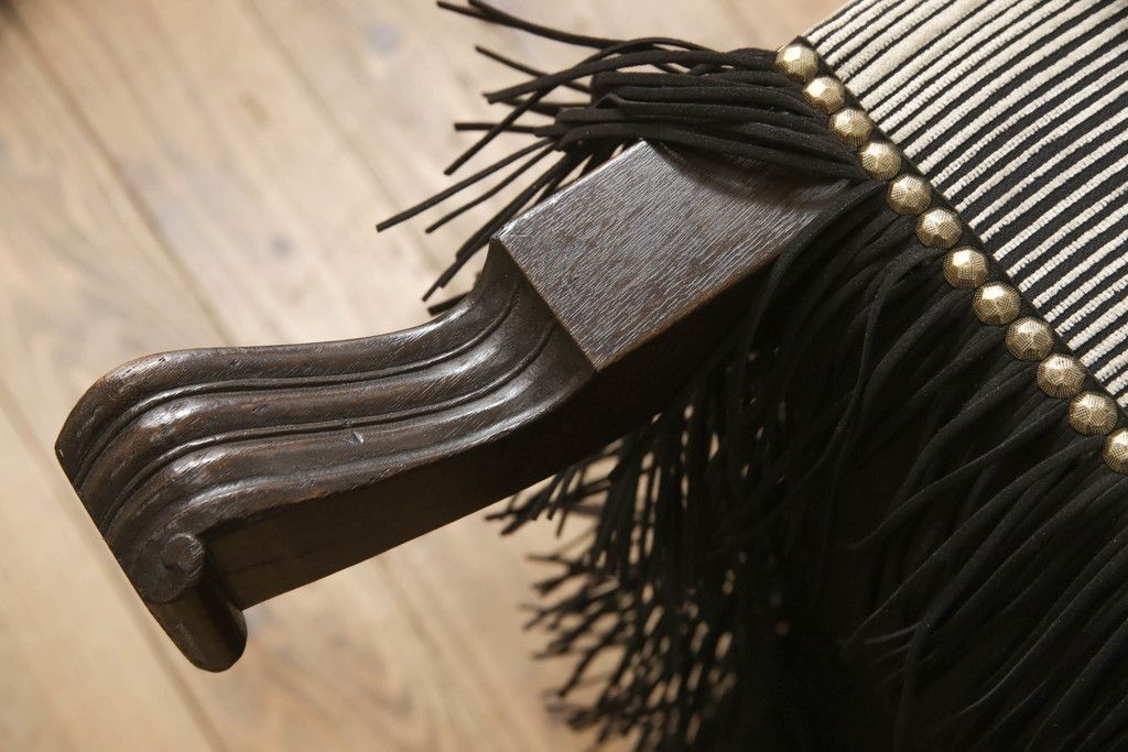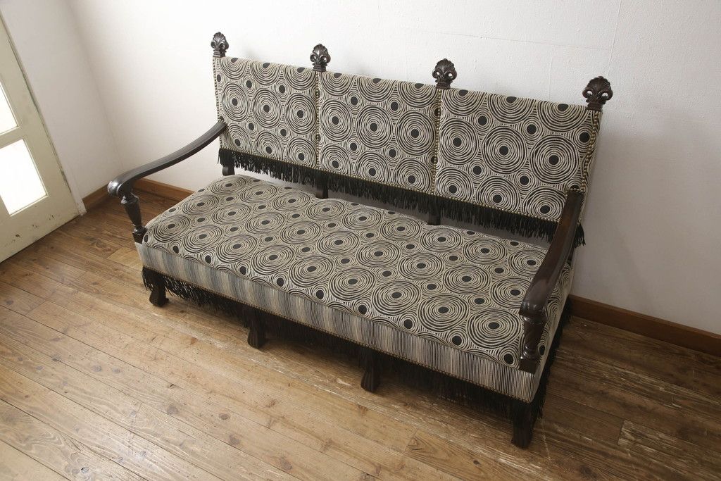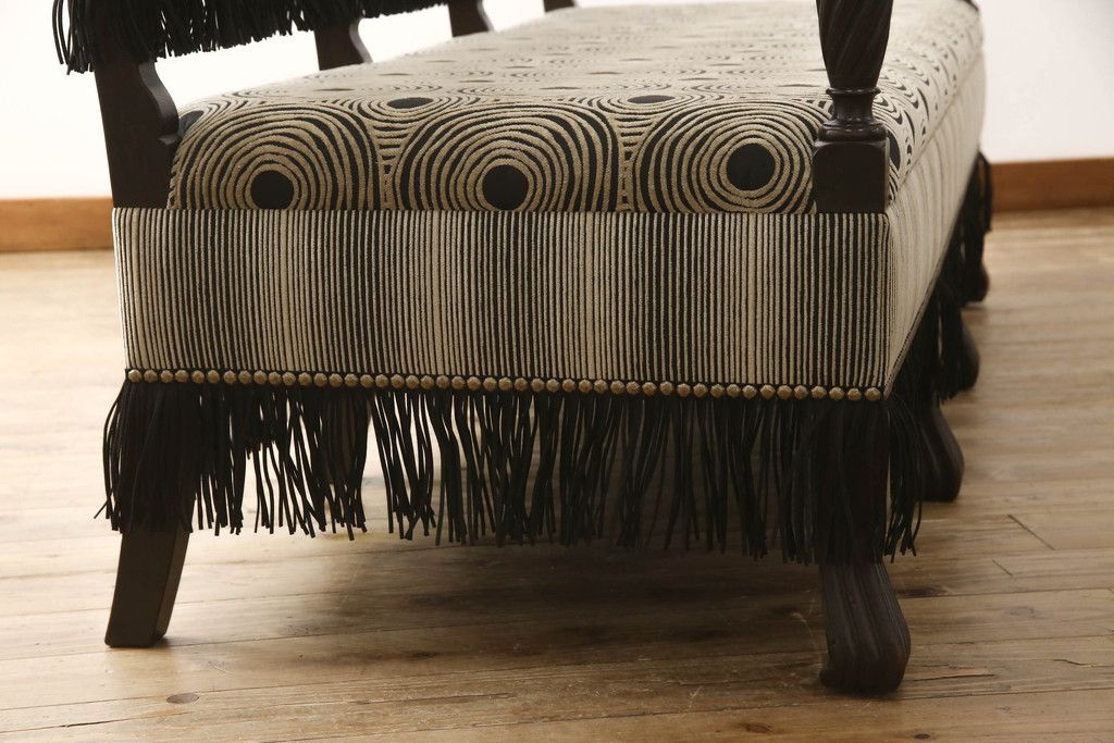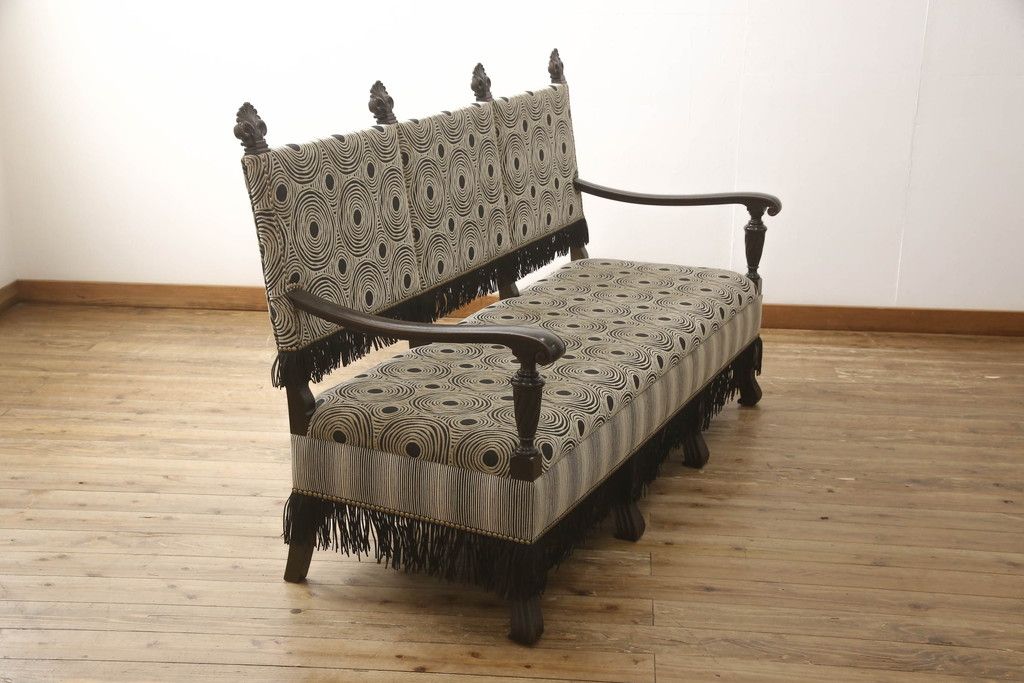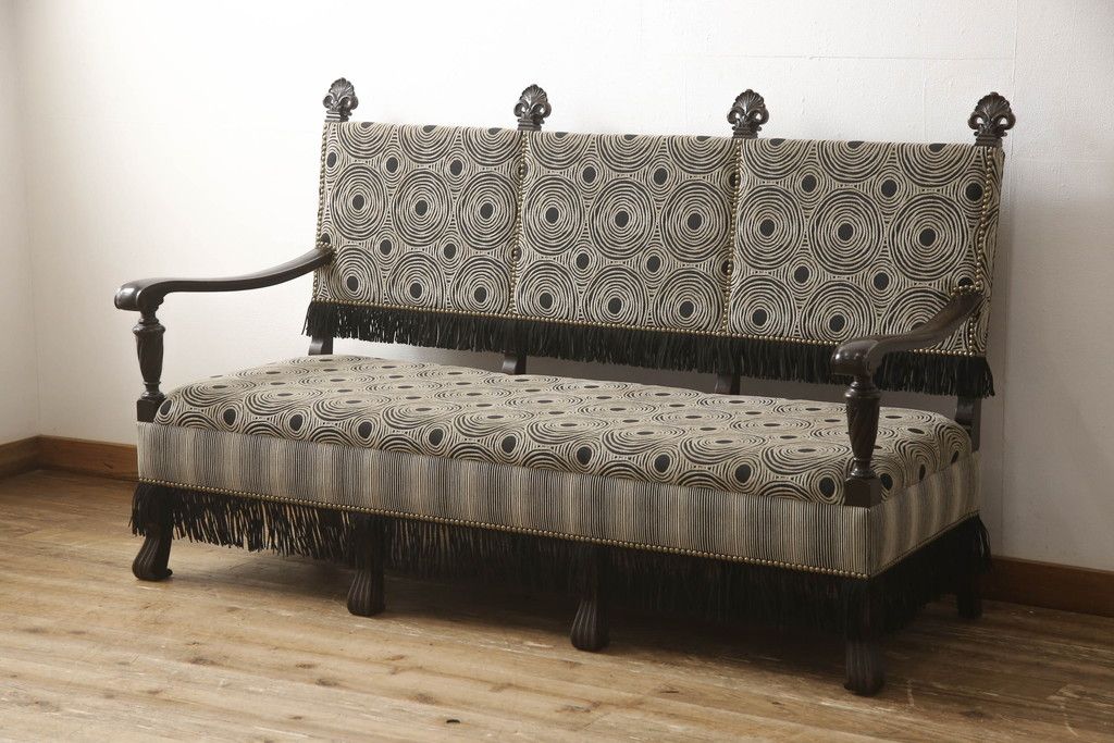 3人掛けソファをリペア&カスタム!指定の生地に張替え、フリンジを追加。座面の硬さを調整。木部は元の色味をベースに着色仕上げ。(アームソファ、三人掛けソファ、トリプルソファ)