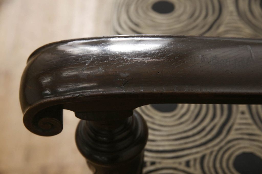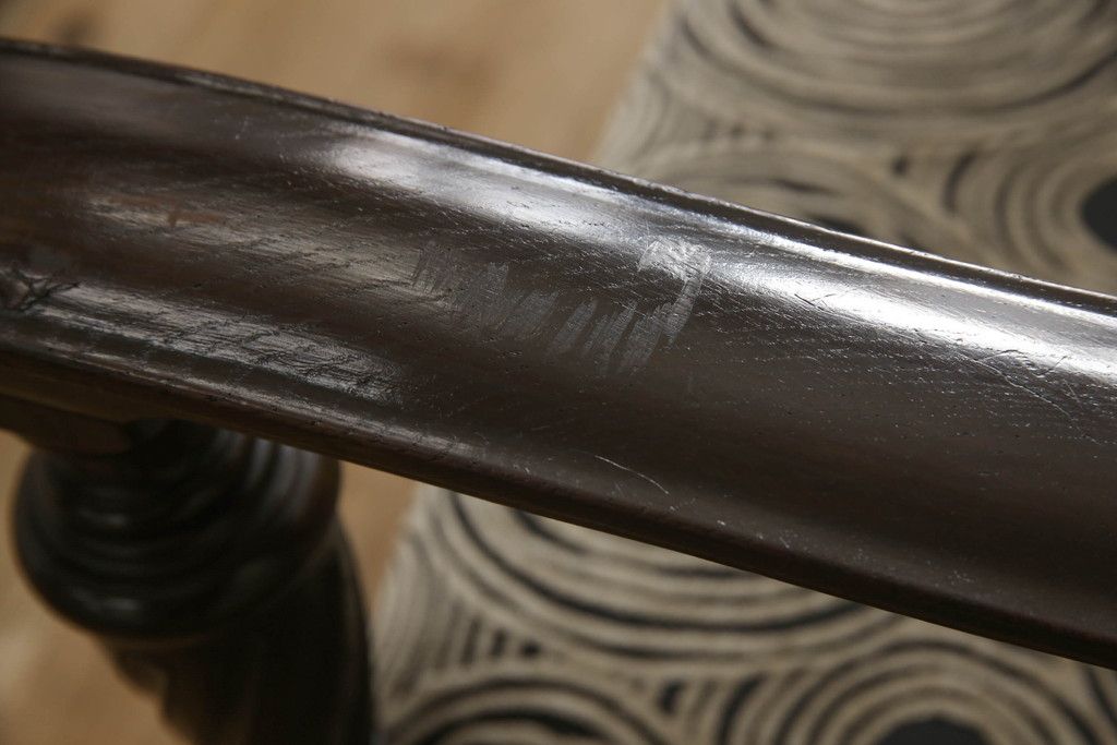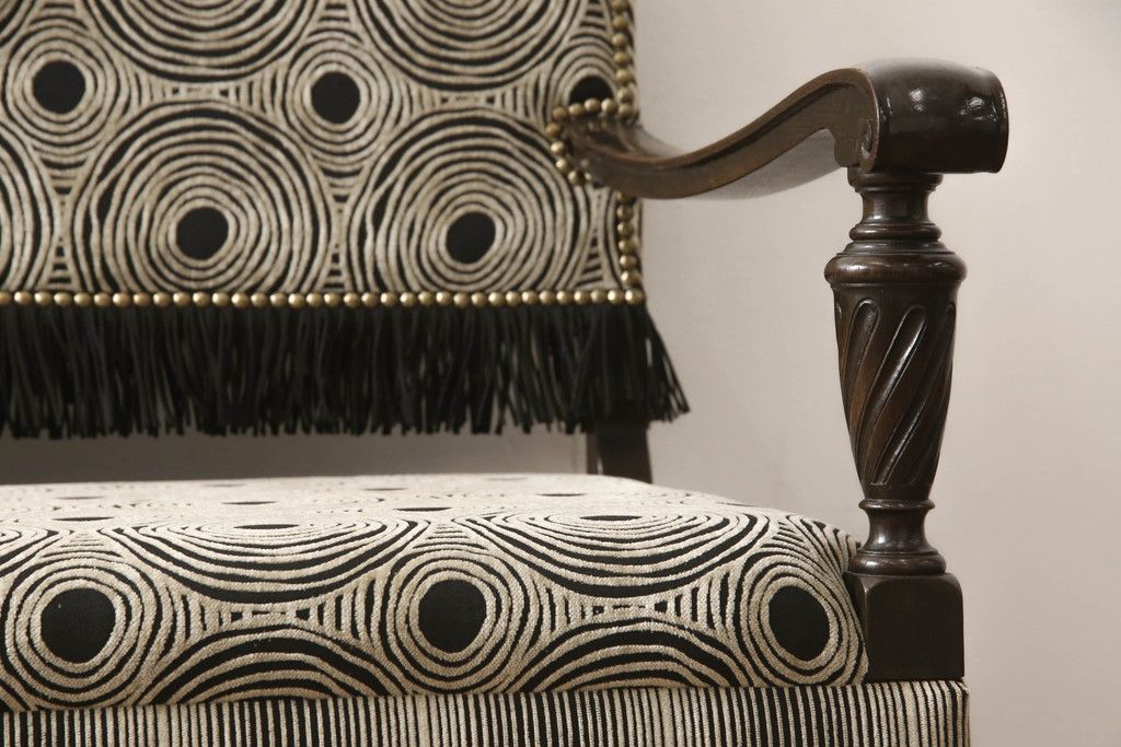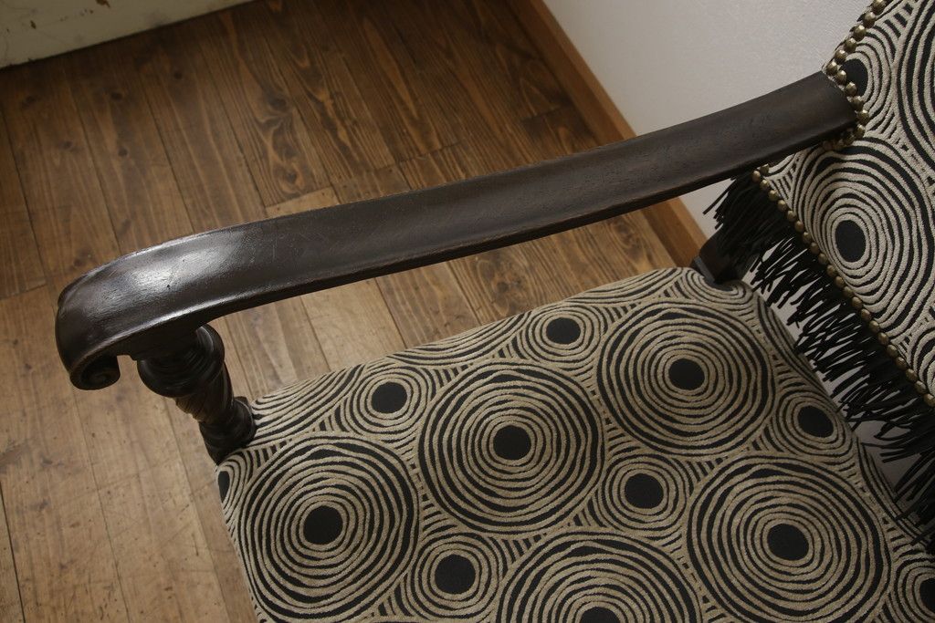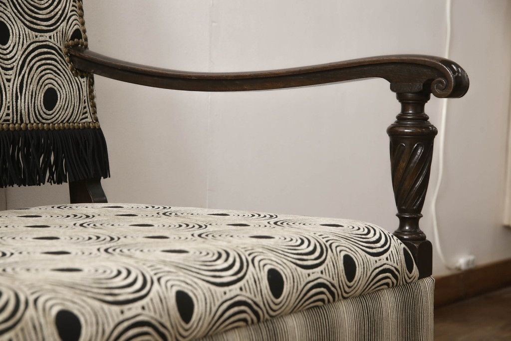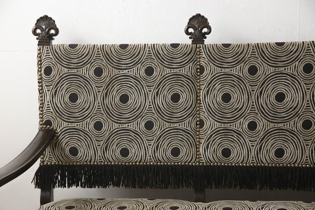 3人掛けソファをリペア&カスタム!指定の生地に張替え、フリンジを追加。座面の硬さを調整。木部は元の色味をベースに着色仕上げ。(アームソファ、三人掛けソファ、トリプルソファ)