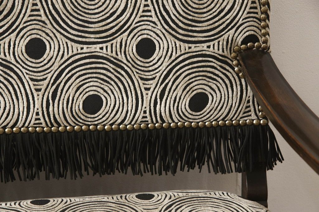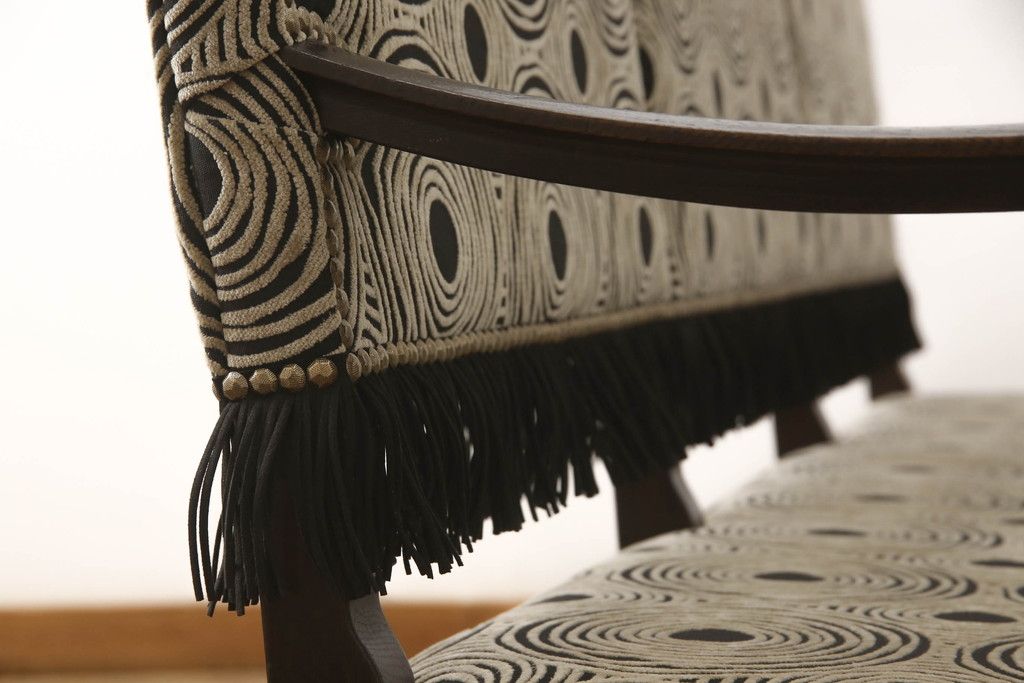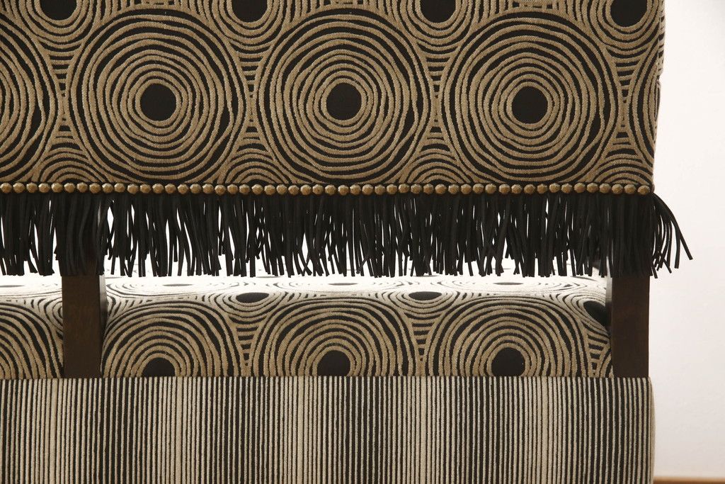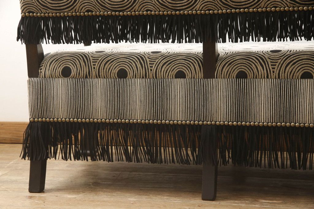 セミオーダー家具実績 > 3人掛けソファをリペア&カスタム!指定の生地に張替え、フリンジを追加。座面の硬さを調整。木部は元の色味をベースに着色仕上げ。(アームソファ、三人掛けソファ、トリプルソファ)