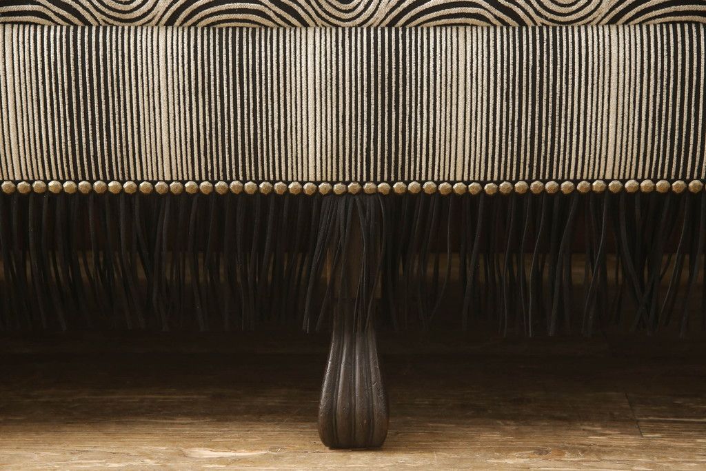 ソファ> 3人掛けソファ > 3人掛けソファをリペア&カスタム!指定の生地に張替え、フリンジを追加。座面の硬さを調整。木部は元の色味をベースに着色仕上げ。(アームソファ、三人掛けソファ、トリプルソファ)