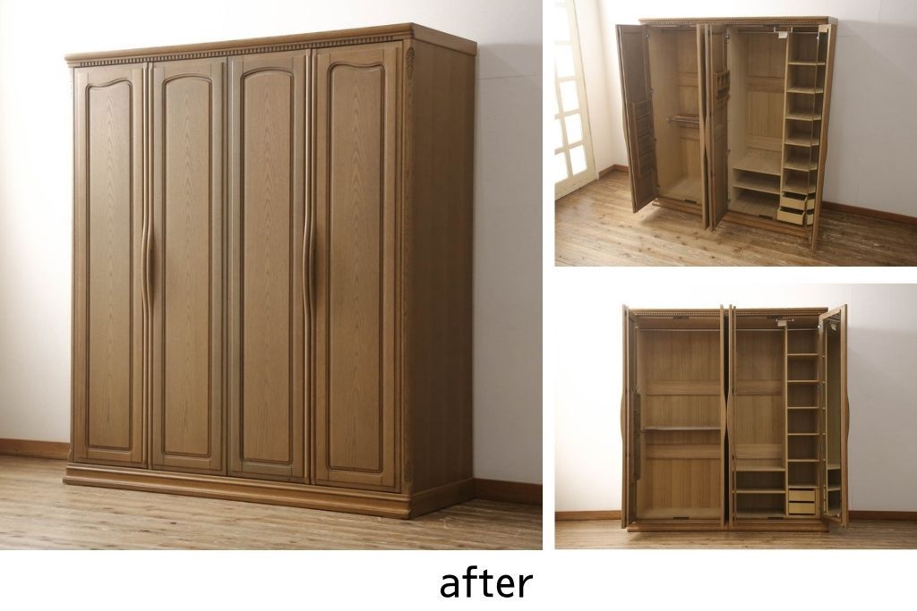 ワードローブを使いやすくリメイク!高品質リペアを施し、天板と脚の出っ張りをカット。本体の色味を活かした仕上げ。
