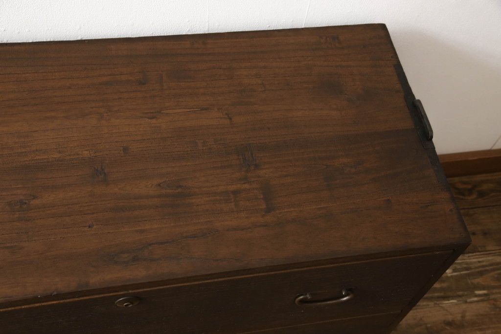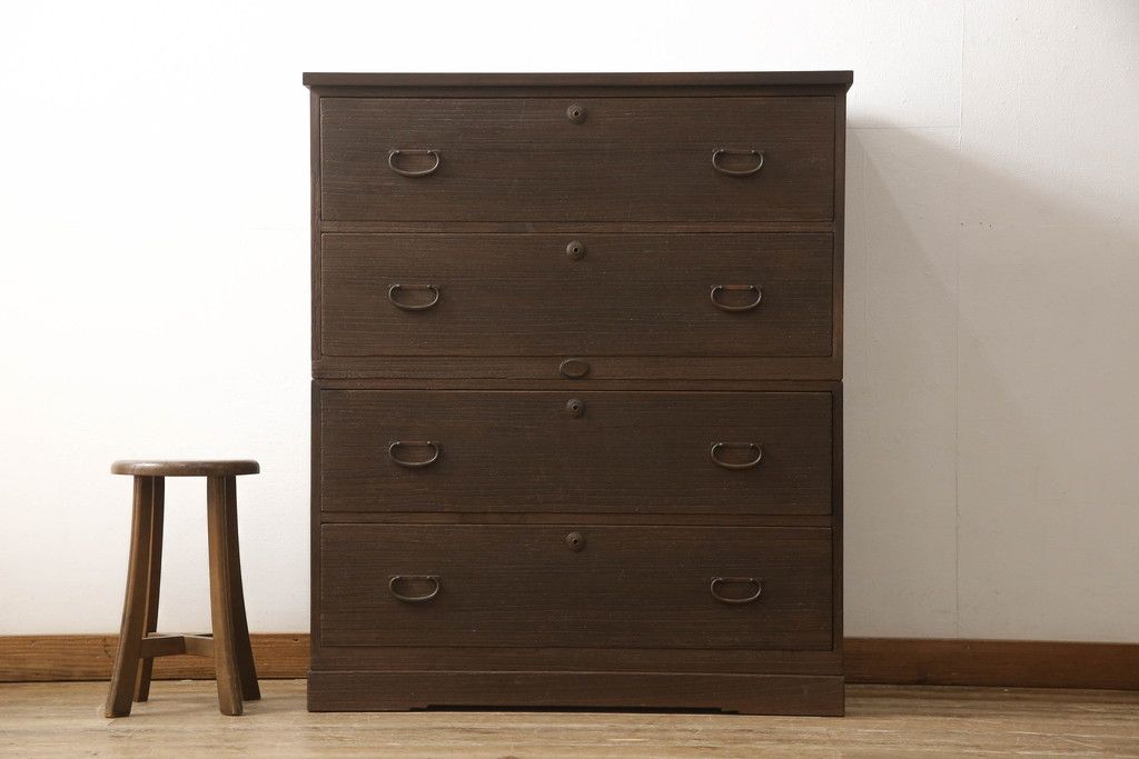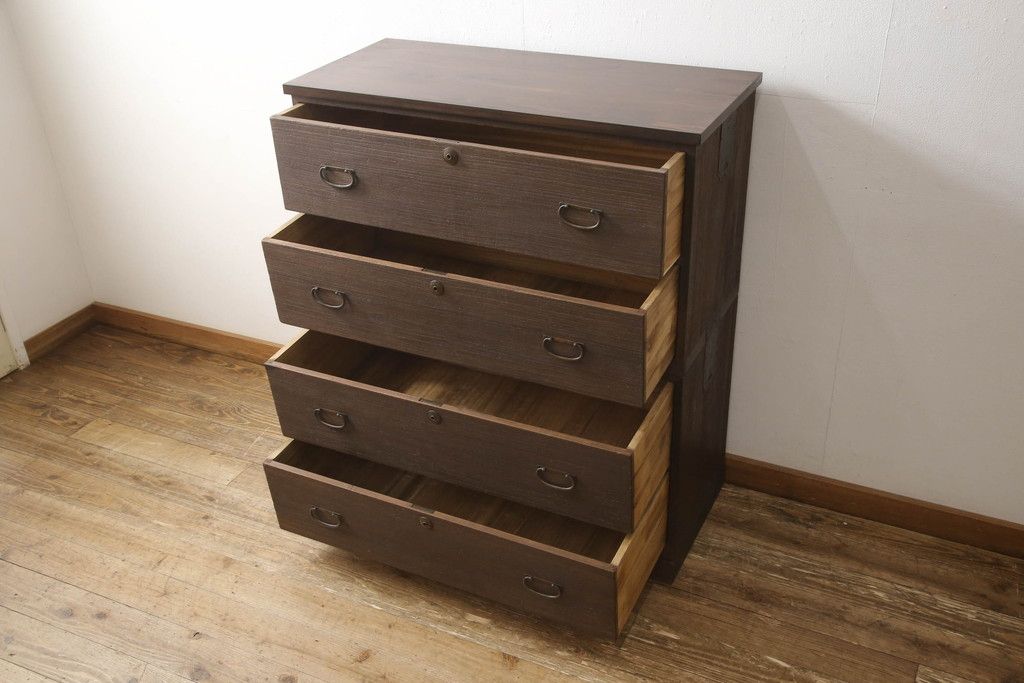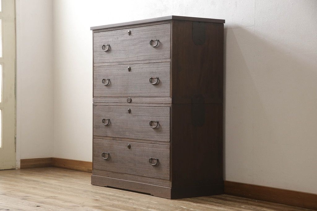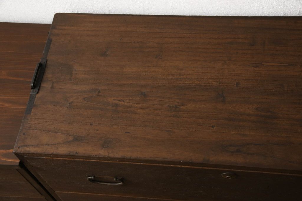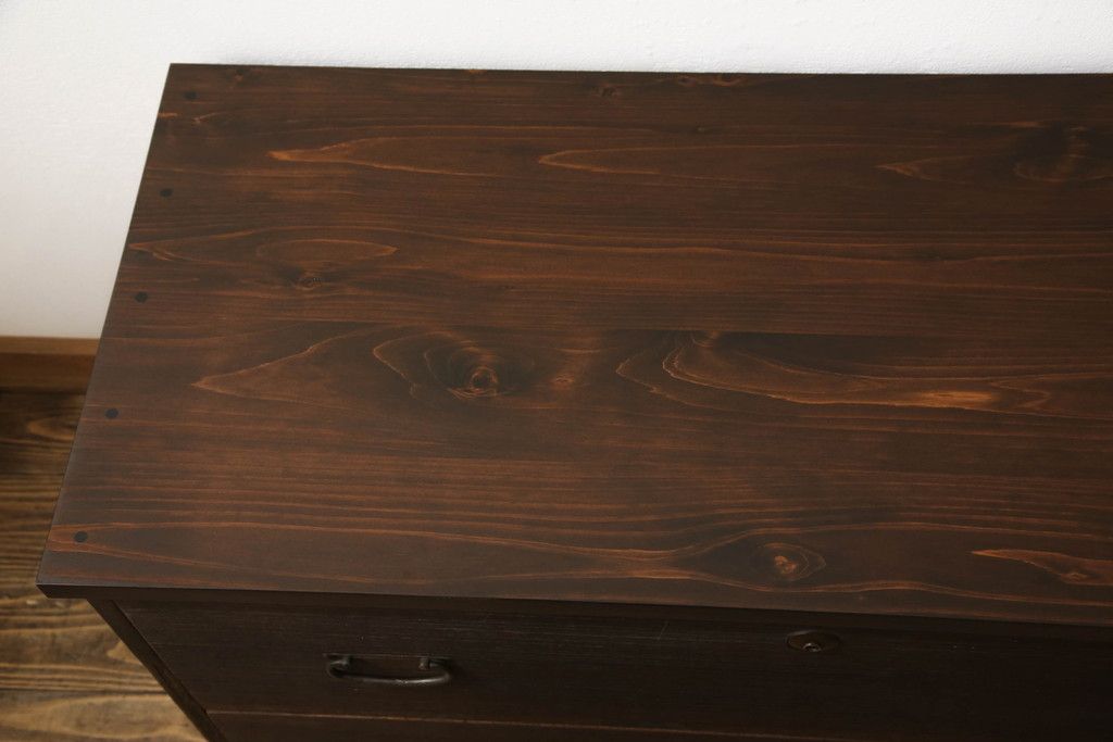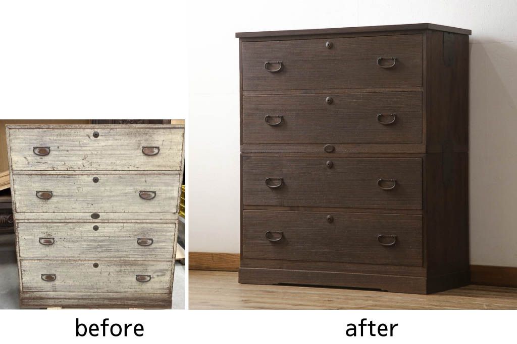 桐箪笥を動かしやすくリメイク!ヒノキ無垢材の天板とキャスターを取り付けて、オーク系のステイン塗料仕上げ。