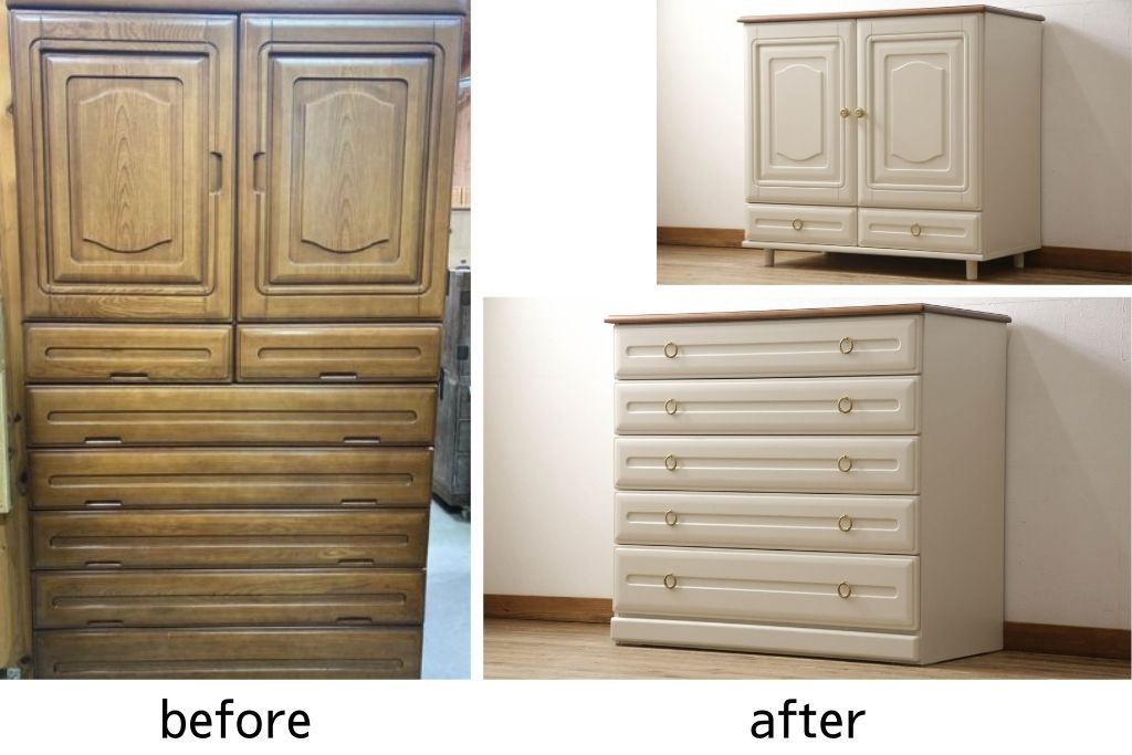 お客様持ち込みの婚礼家具を上下に分けてリメイク