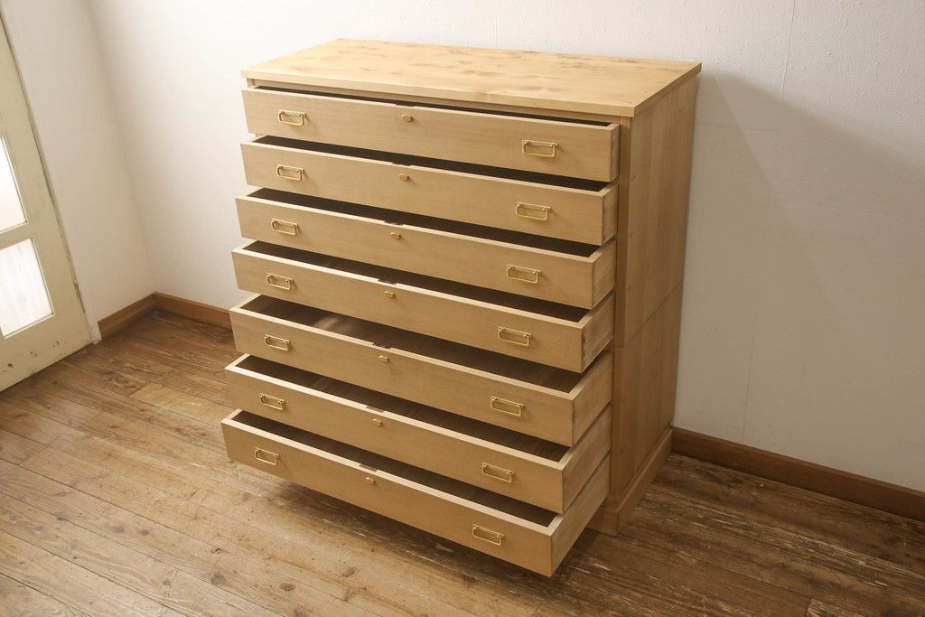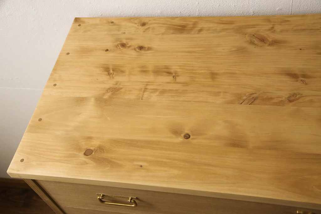 民芸家具 > 加茂総桐箪笥をリペア&カスタム!ヒノキ新材の天板を新たに取り付け、全体を木地色仕上げ。(総桐たんす、桐タンス、和たんす、引き出し、収納たんす、チェスト)