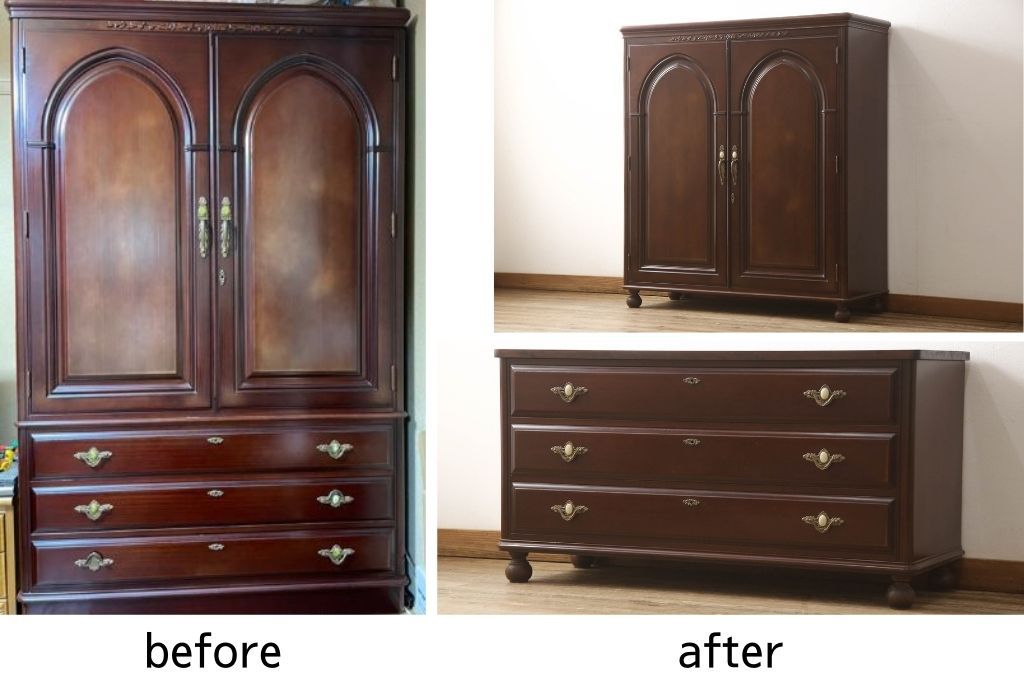 お客様持ち込みの和箪笥をチェストとローボードへリメイク