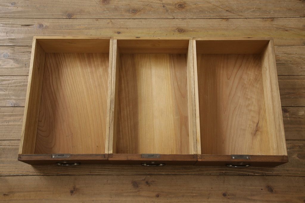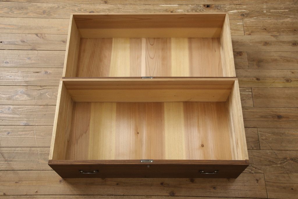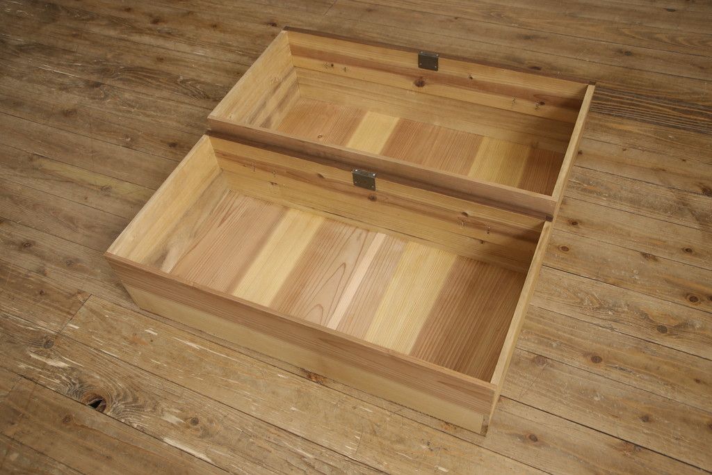 3段重ね桐箪笥の中段引き出しを衣装盆にリメイク!衣装盆をヒノキ材で4杯製作。オーク系に着色仕上げ。
