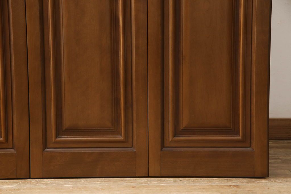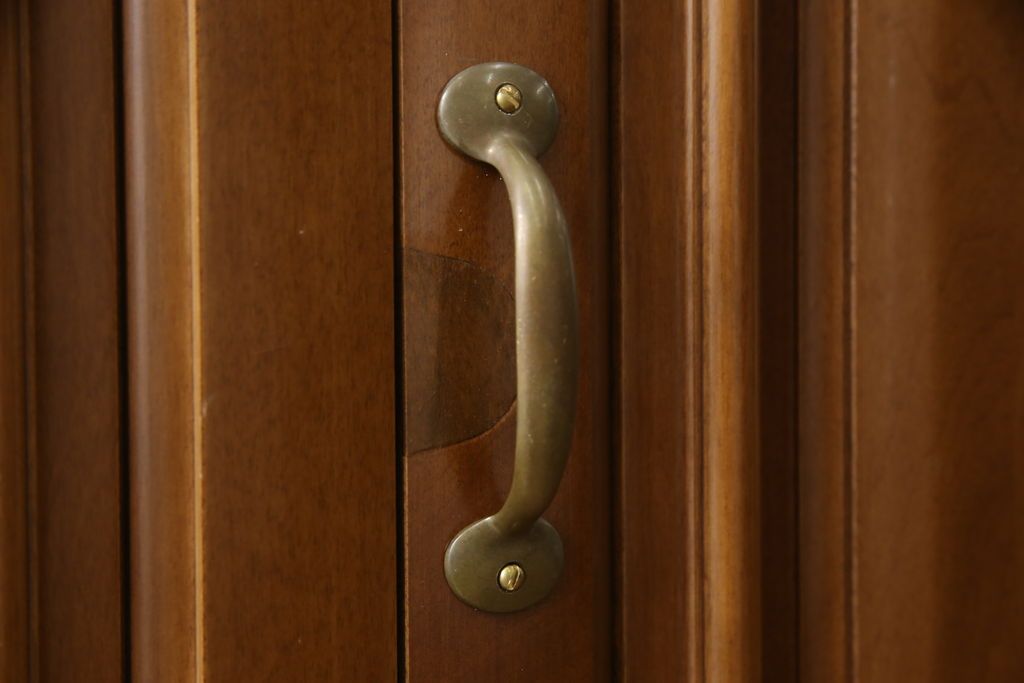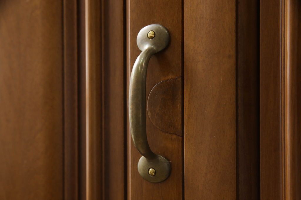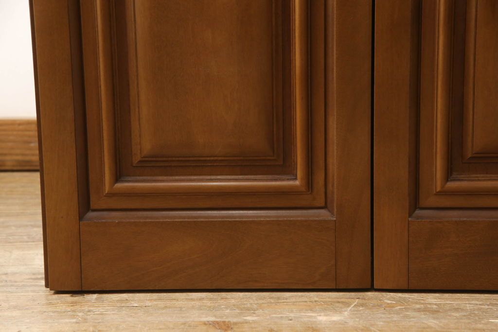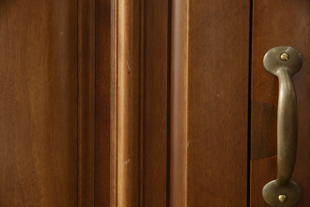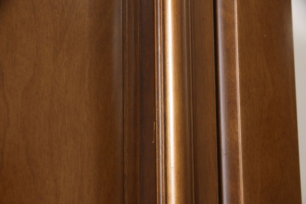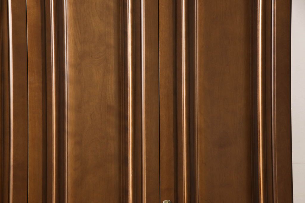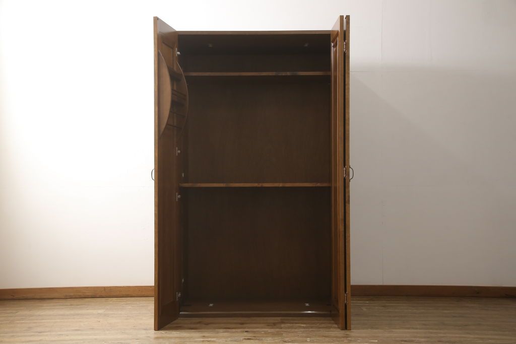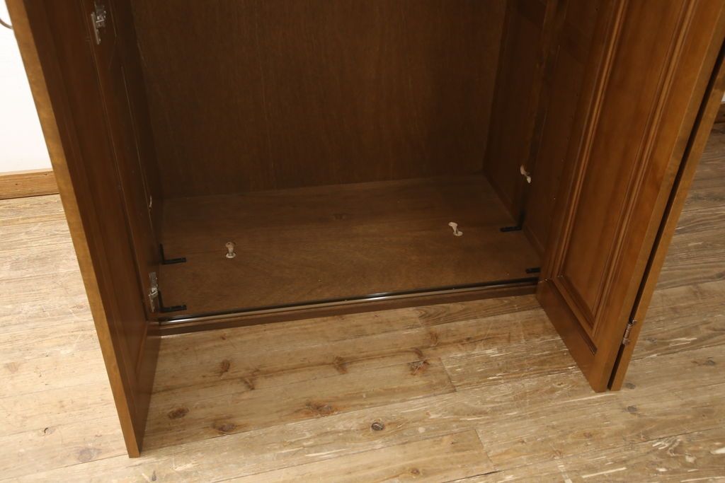 ワードローブを使いやすくリメイク!高さと幅は小さく、奥行きは広くリサイズ。棚板を新たに制作し、扉を折れ戸仕様に変更。前後で分解できる仕様に加工し、ワントーン落ち着いた色に着色仕上げ。