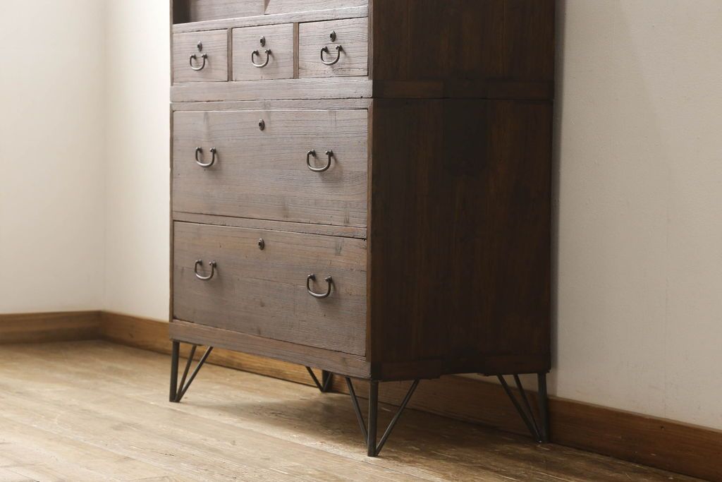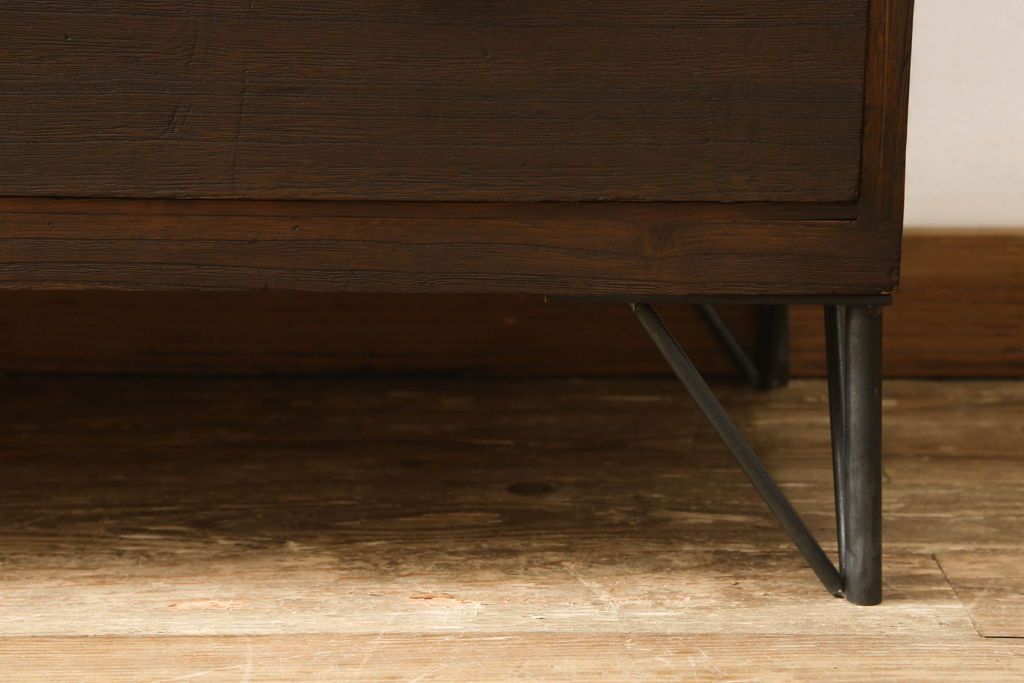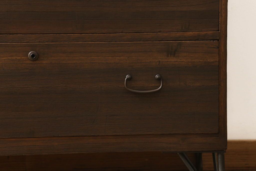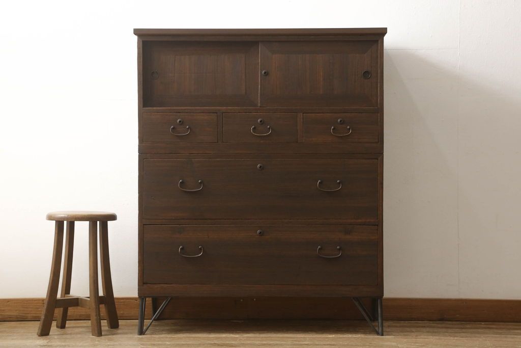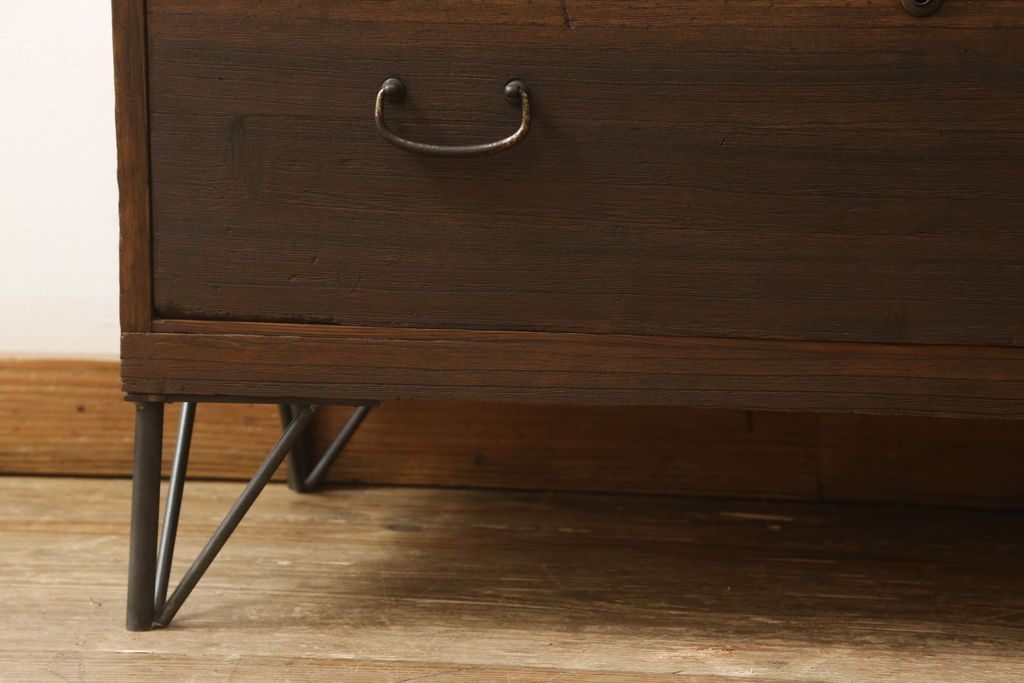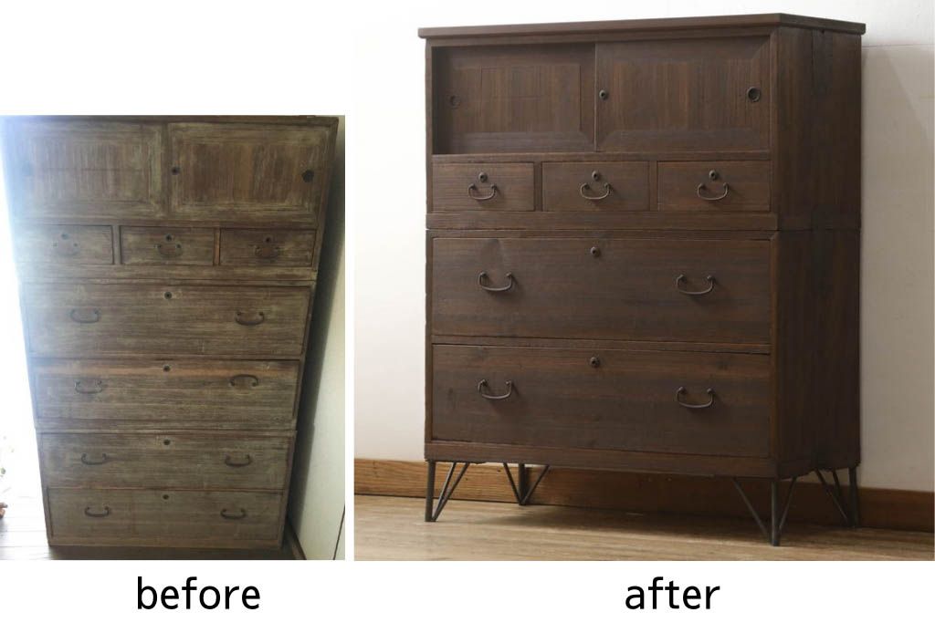 3段重ね桐箪笥をサイドチェストにリメイク!天板と鉄脚取り付け。ワントーン落ち着いたオーク系の着色仕上げ。