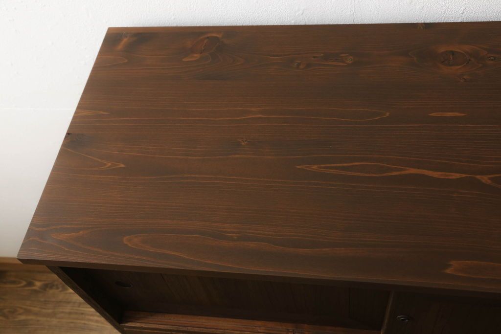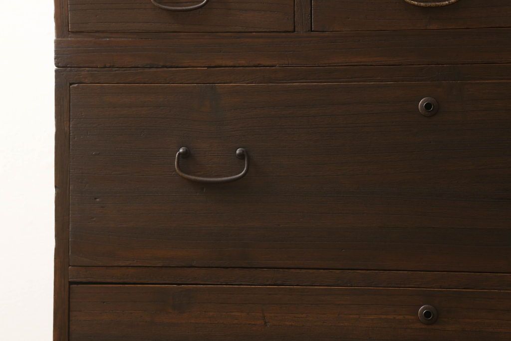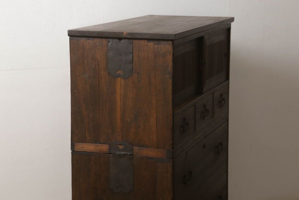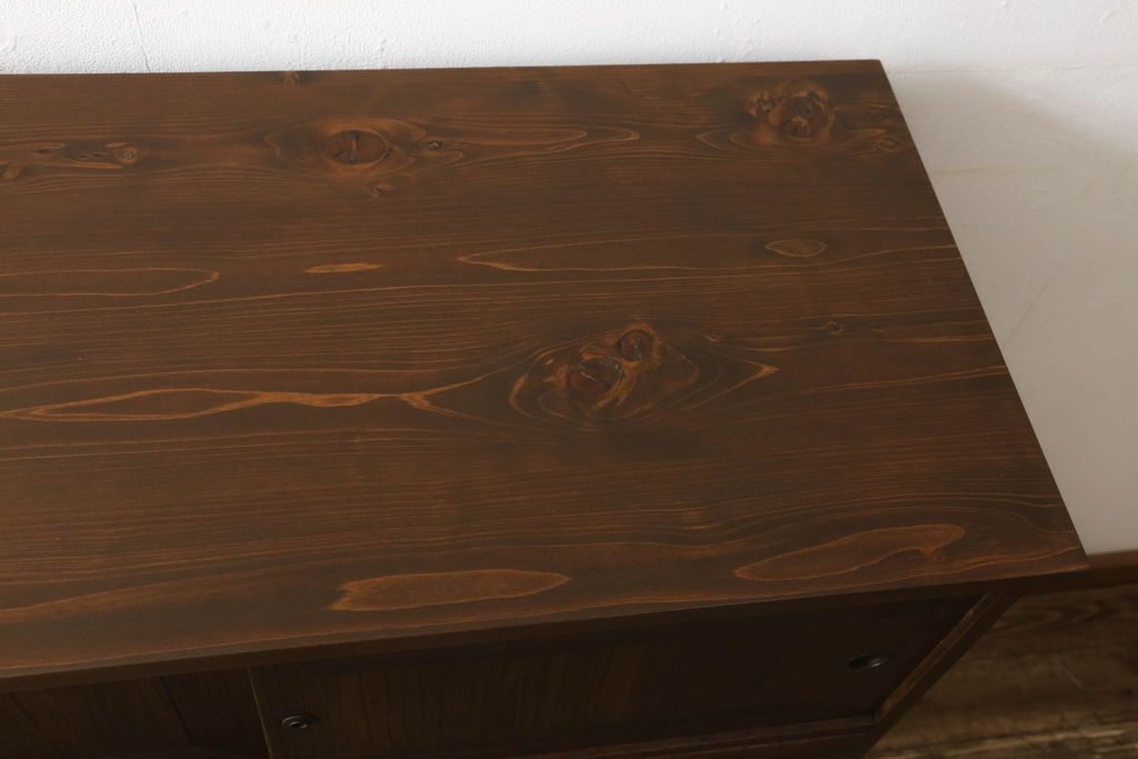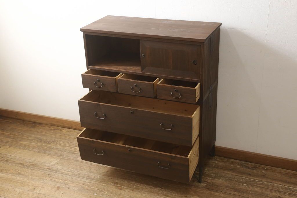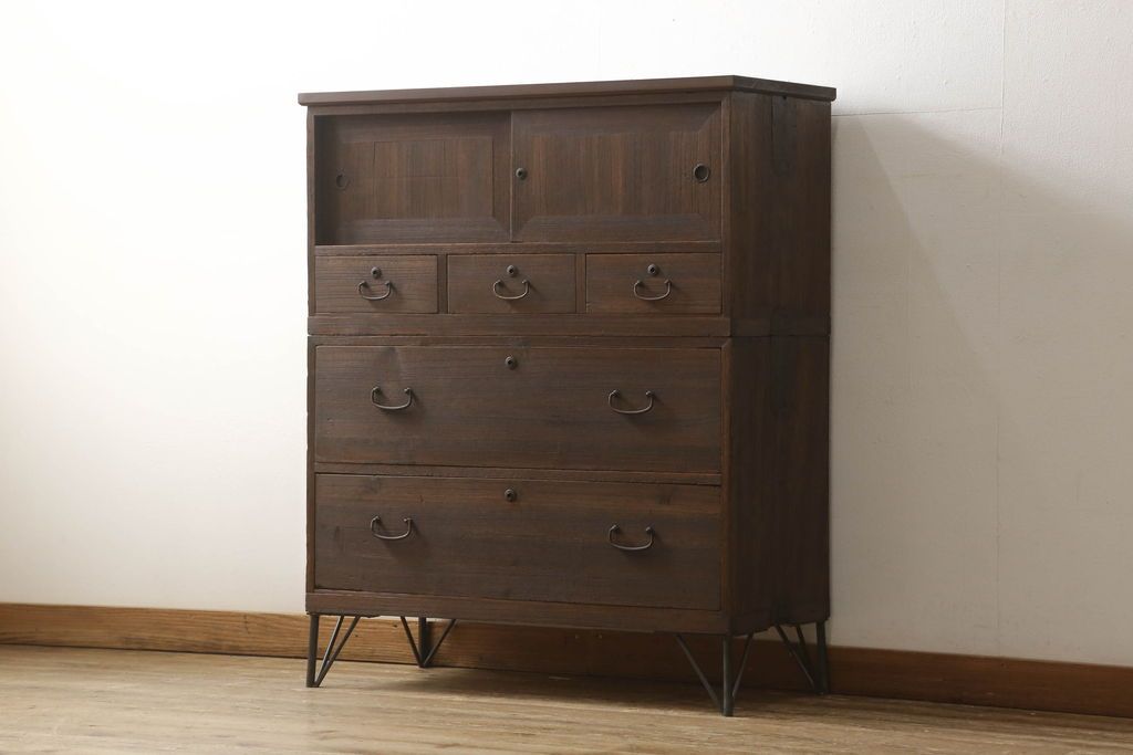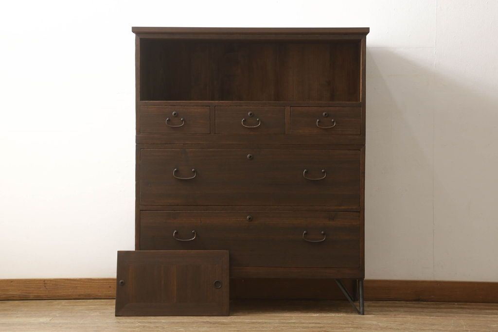 3段重ね桐箪笥をサイドチェストにリメイク!天板と鉄脚取り付け。ワントーン落ち着いたオーク系の着色仕上げ。