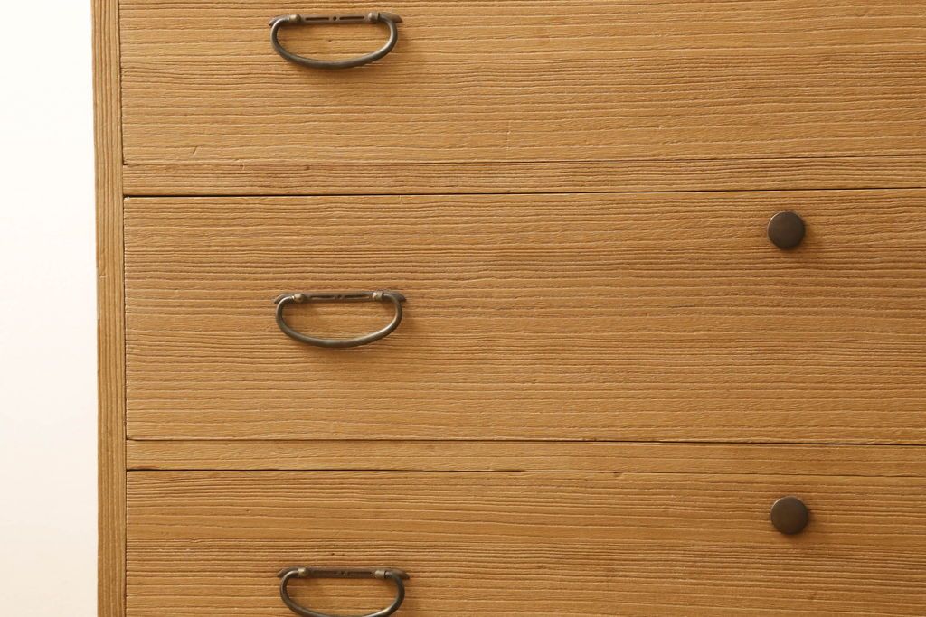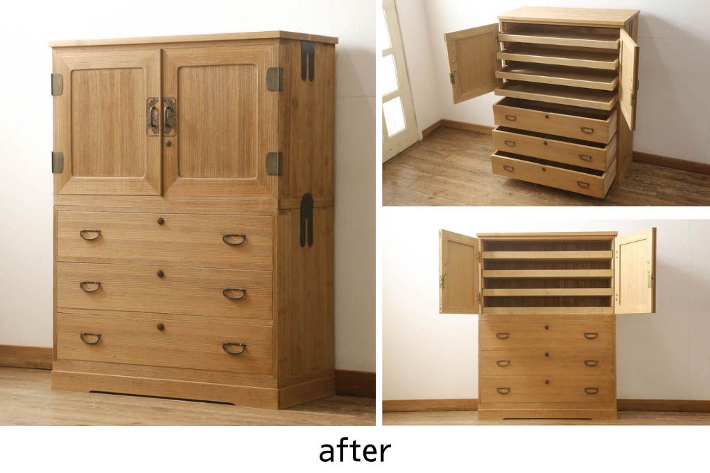 2段重ね桐箪笥を綺麗に再生!天板を補強し、現状の砥の粉を洗浄して蜜蝋ワックス仕上げ。
