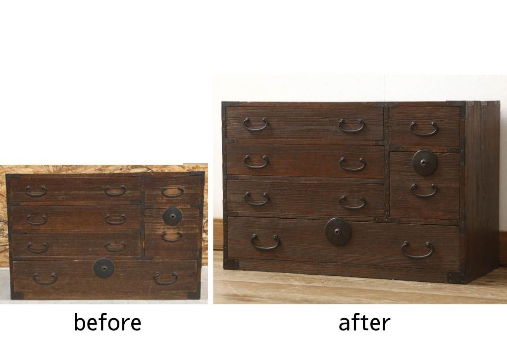 桐箪笥を綺麗に再生!現状をベースにワントーン落ち着いた色味に仕上げ。