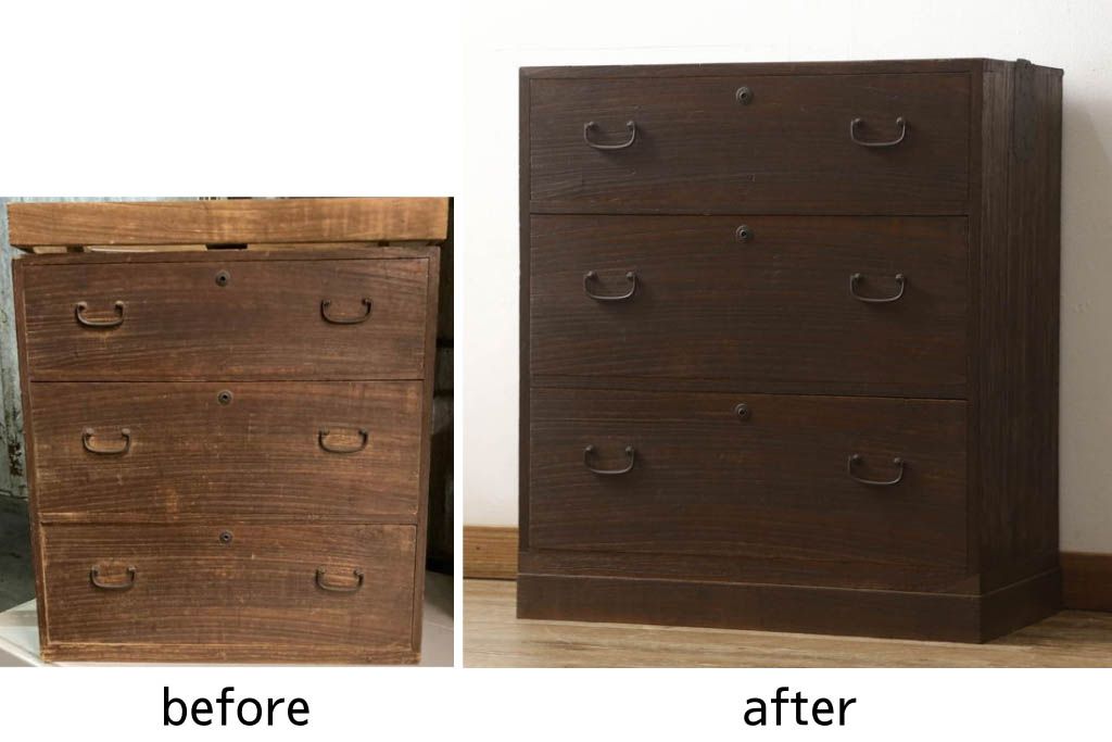 桐箪笥を綺麗に再生!現状をベースにワントーン落ち着いた色味に仕上げ。
