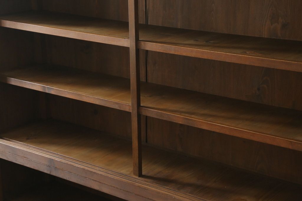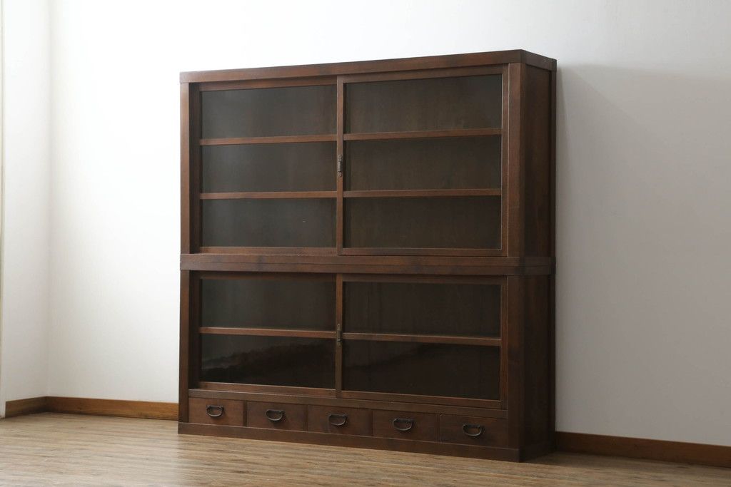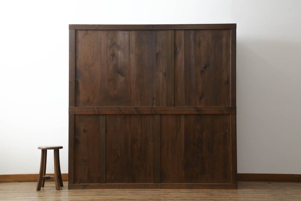 二段重ね収納棚をリペア&カスタム!奥行きをリサイズし、全体を1トーン落ち着いた色味に着色仕上げ。(キャビネット、戸棚、食器棚、飾り棚、ガラスケース、店舗什器、本箱、ブックケース)