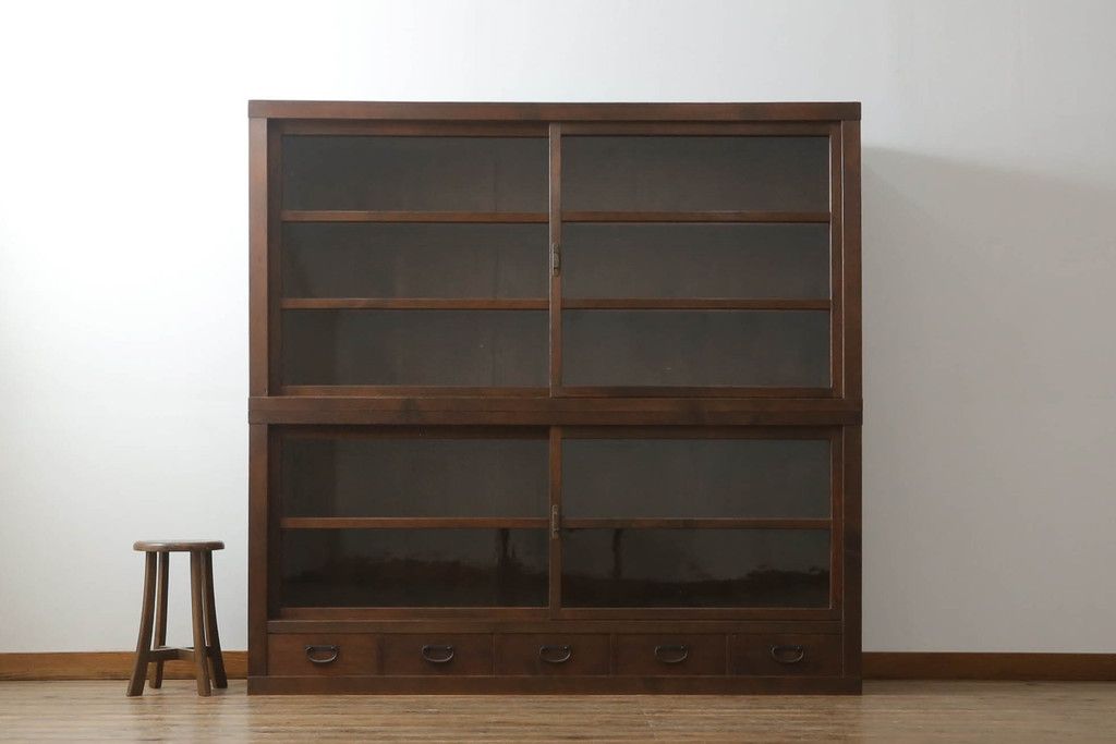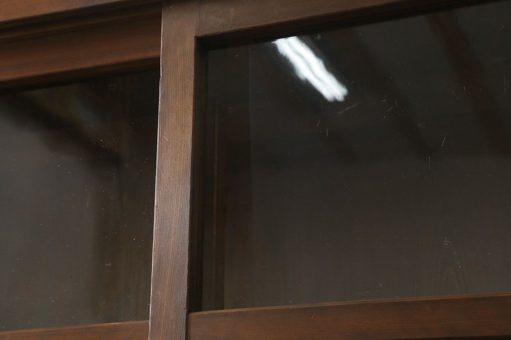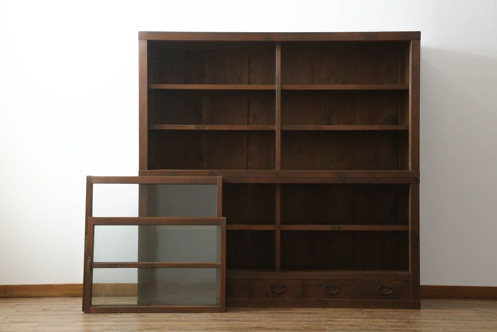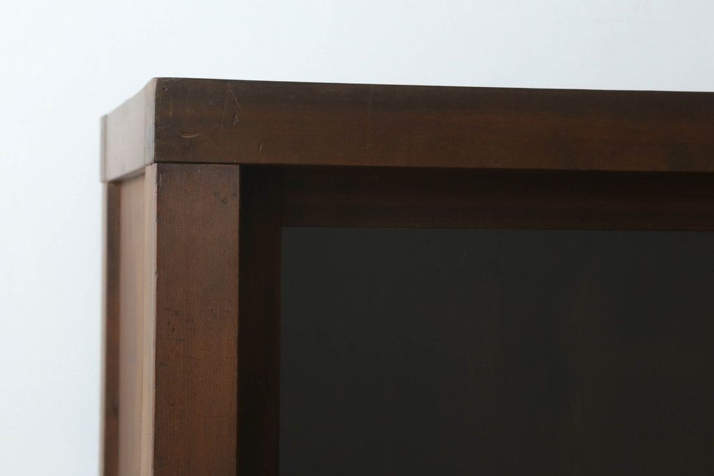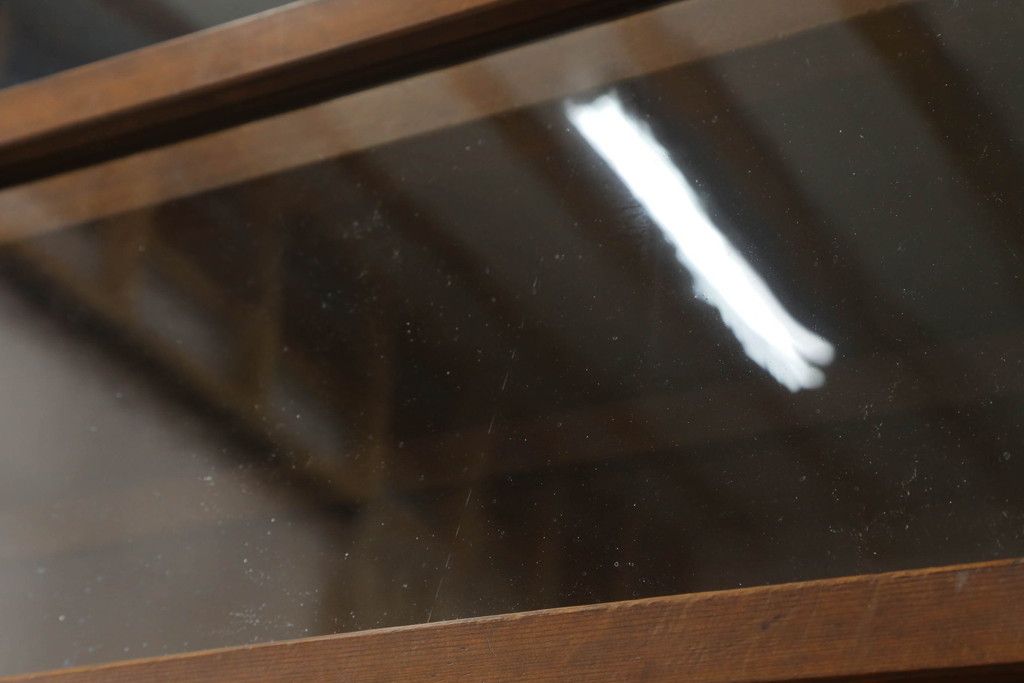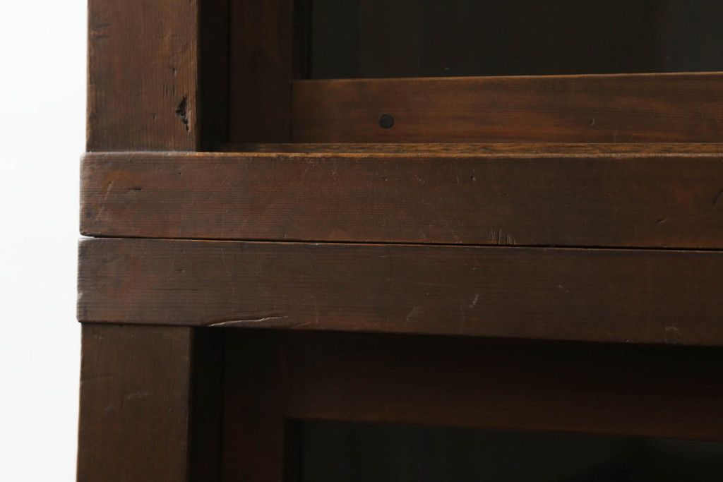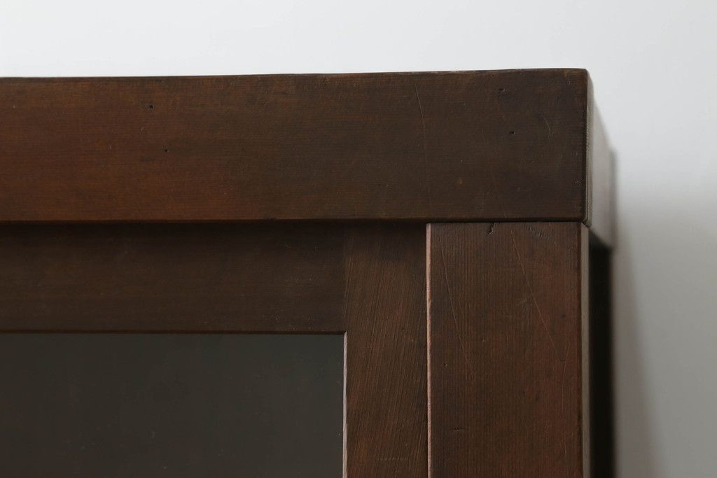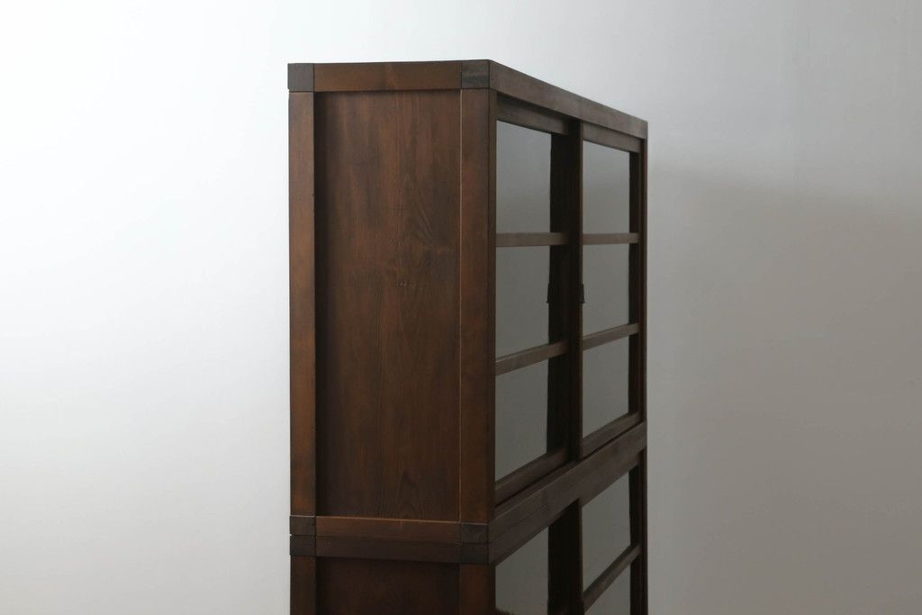 ガラスケース・ショーケース > 二段重ね収納棚をリペア&カスタム!奥行きをリサイズし、全体を1トーン落ち着いた色味に着色仕上げ。(キャビネット、戸棚、食器棚、飾り棚、ガラスケース、店舗什器、本箱、ブックケース)
