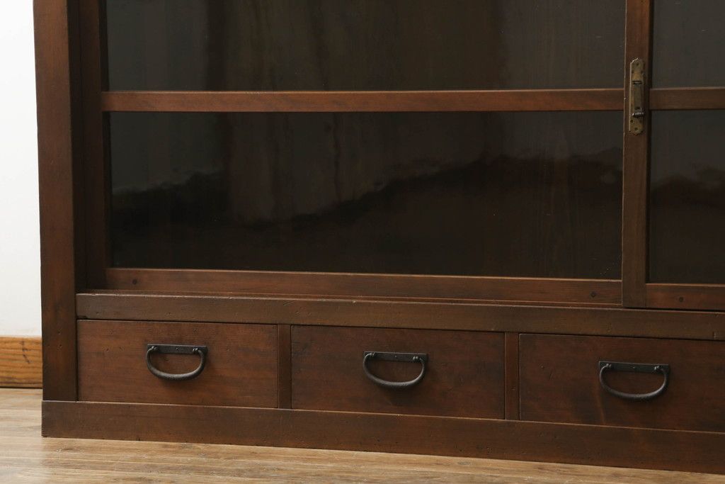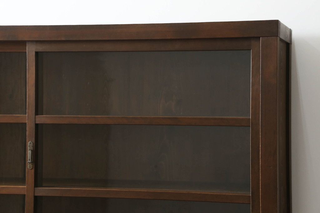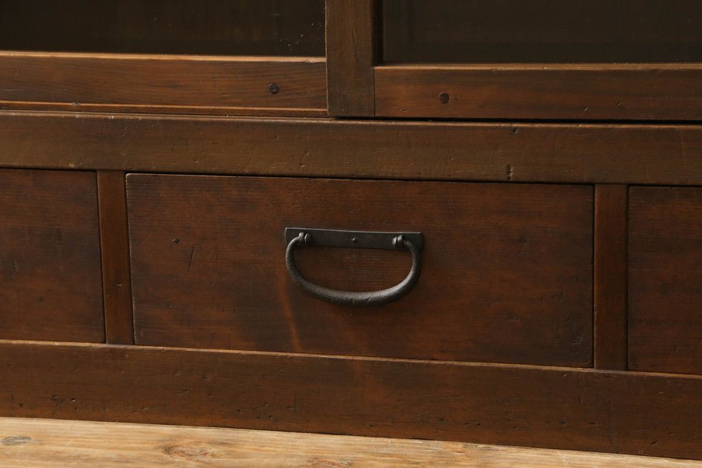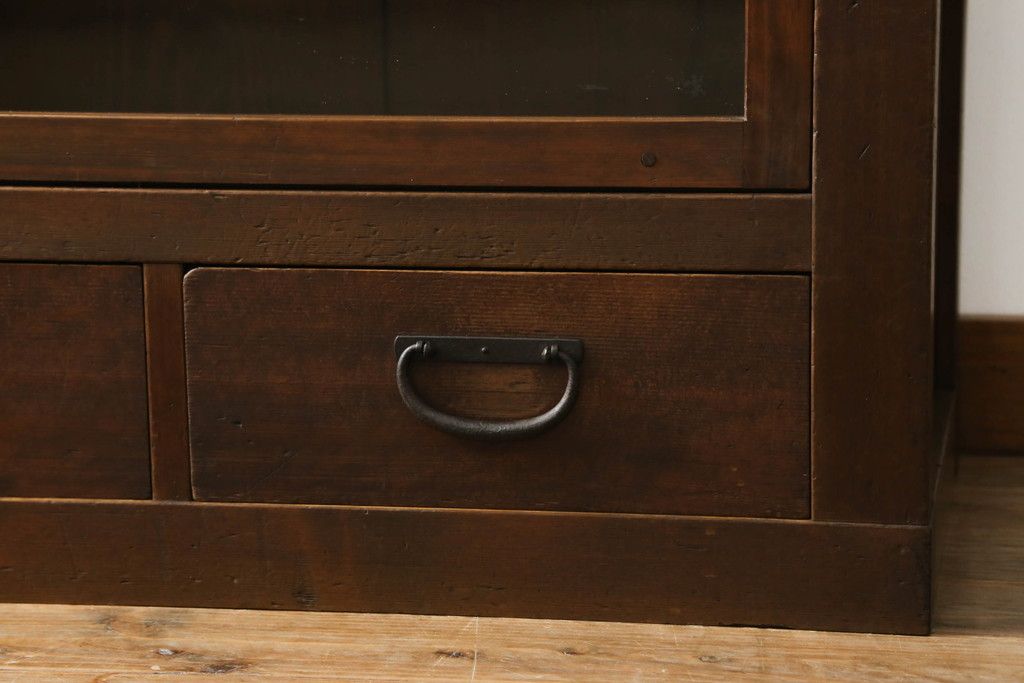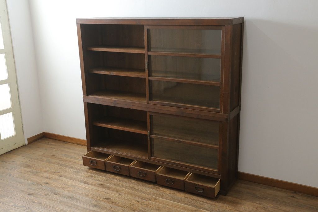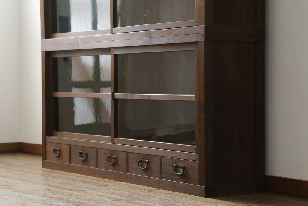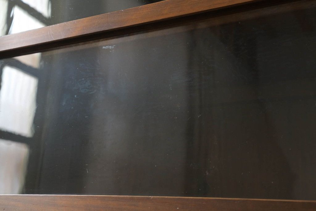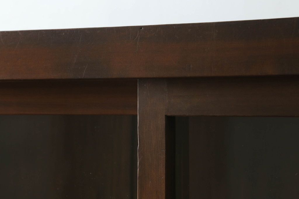 ガラスケース・ショーケース > 二段重ね収納棚をリペア&カスタム!奥行きをリサイズし、全体を1トーン落ち着いた色味に着色仕上げ。(キャビネット、戸棚、食器棚、飾り棚、ガラスケース、店舗什器、本箱、ブックケース)