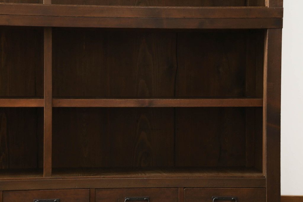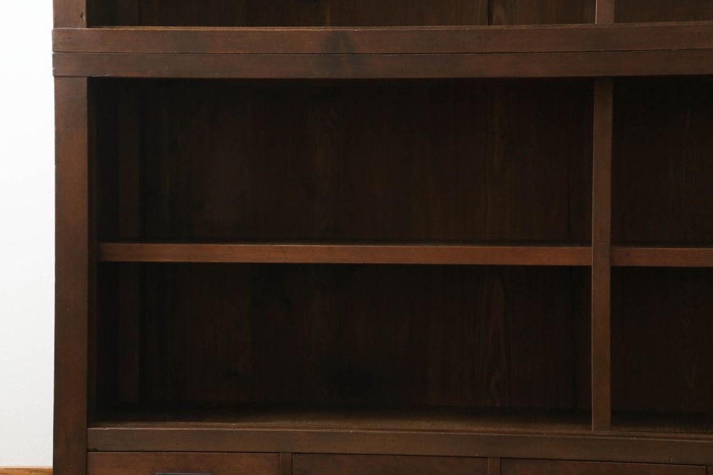 キャビネット・戸棚> 本箱 > 二段重ね収納棚をリペア&カスタム!奥行きをリサイズし、全体を1トーン落ち着いた色味に着色仕上げ。(キャビネット、戸棚、食器棚、飾り棚、ガラスケース、店舗什器、本箱、ブックケース)