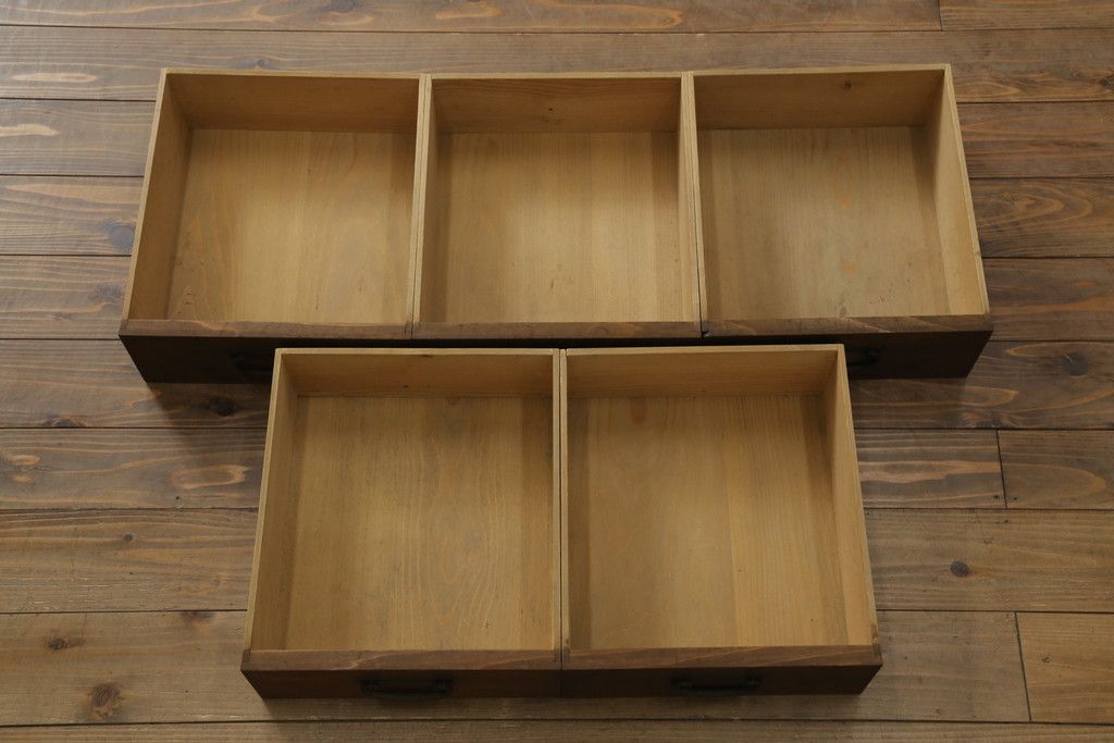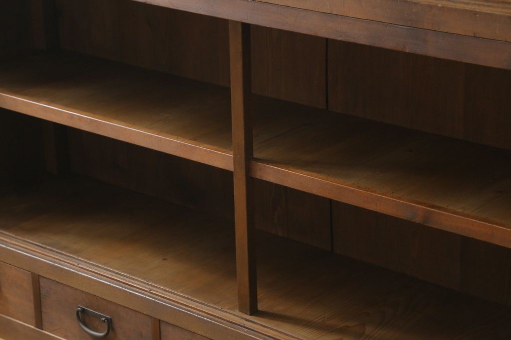 店舗什器 > 二段重ね収納棚をリペア&カスタム!奥行きをリサイズし、全体を1トーン落ち着いた色味に着色仕上げ。(キャビネット、戸棚、食器棚、飾り棚、ガラスケース、店舗什器、本箱、ブックケース)