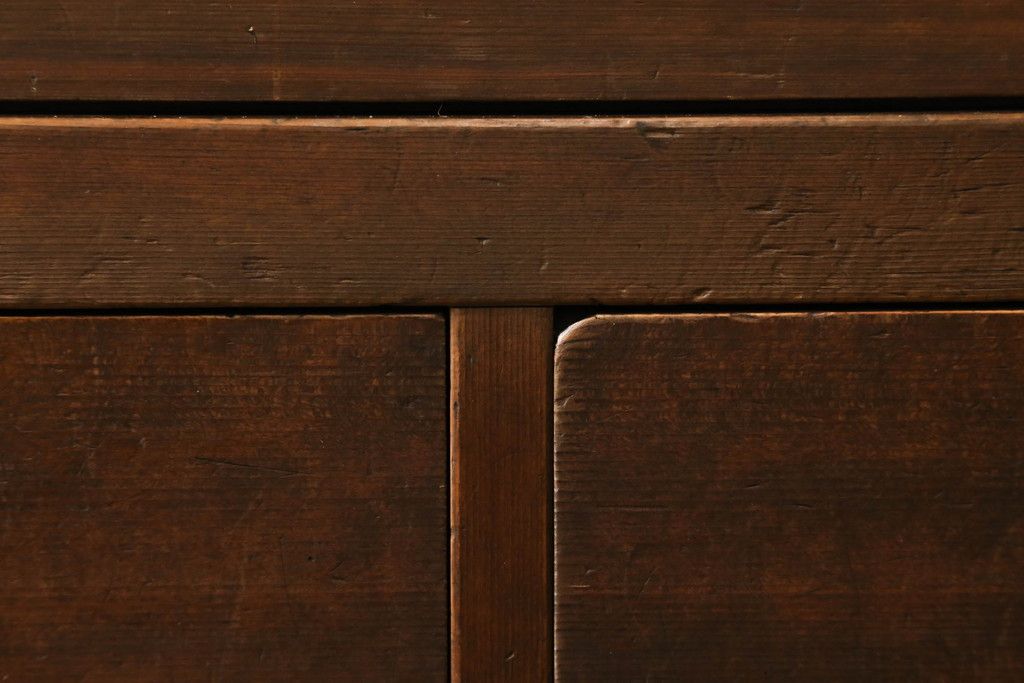 セミオーダー家具実績 > 二段重ね収納棚をリペア&カスタム!奥行きをリサイズし、全体を1トーン落ち着いた色味に着色仕上げ。(キャビネット、戸棚、食器棚、飾り棚、ガラスケース、店舗什器、本箱、ブックケース)