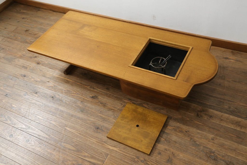 テーブル> センターテーブル・ローテーブル > 囲炉裏テーブルをリペア&カスタム!天板を新たに製作・交換し、本体の色に合わせて着色。(ローテーブル、木製火鉢、長火鉢、センターテーブル、リビングテーブル、座卓、食卓)