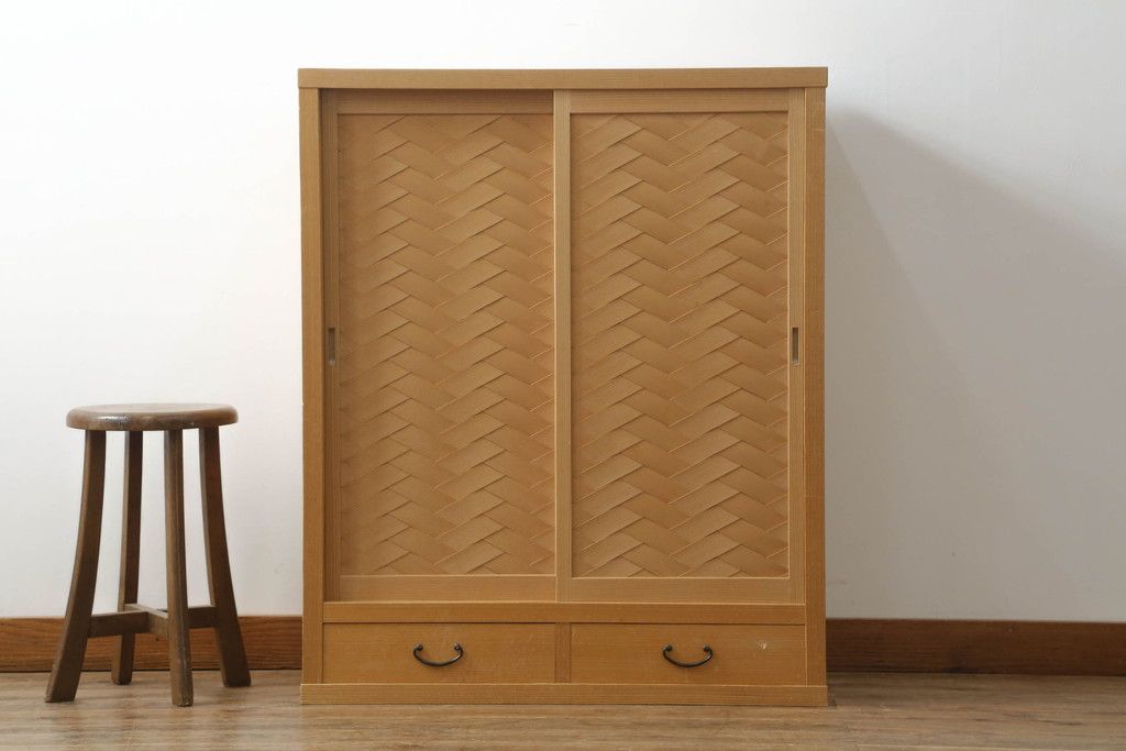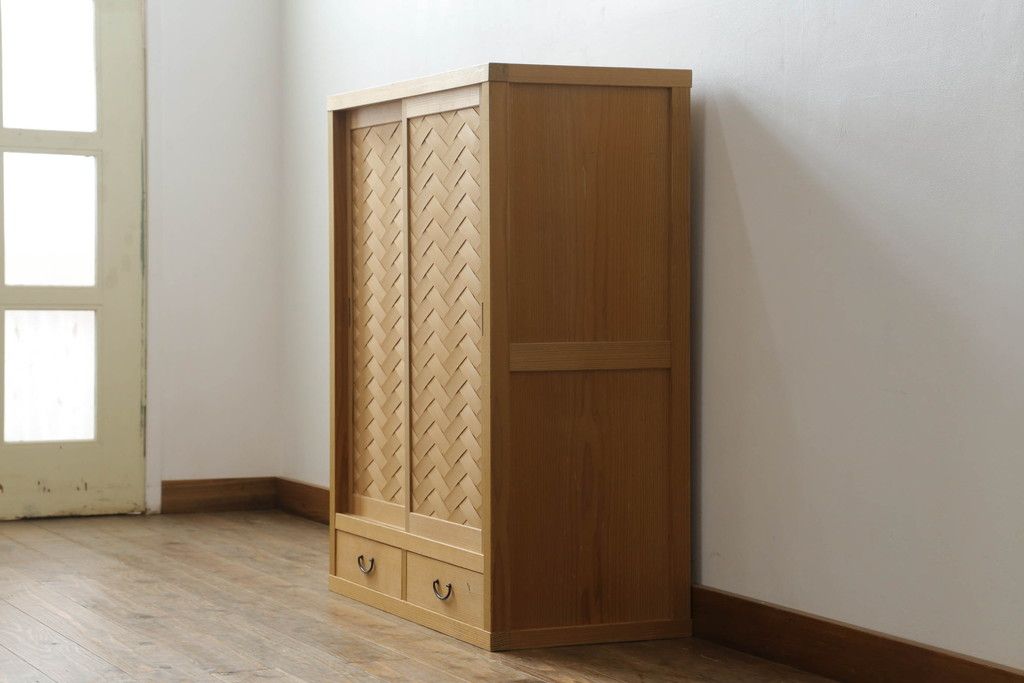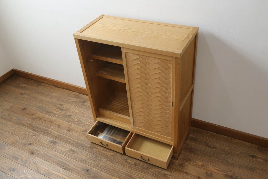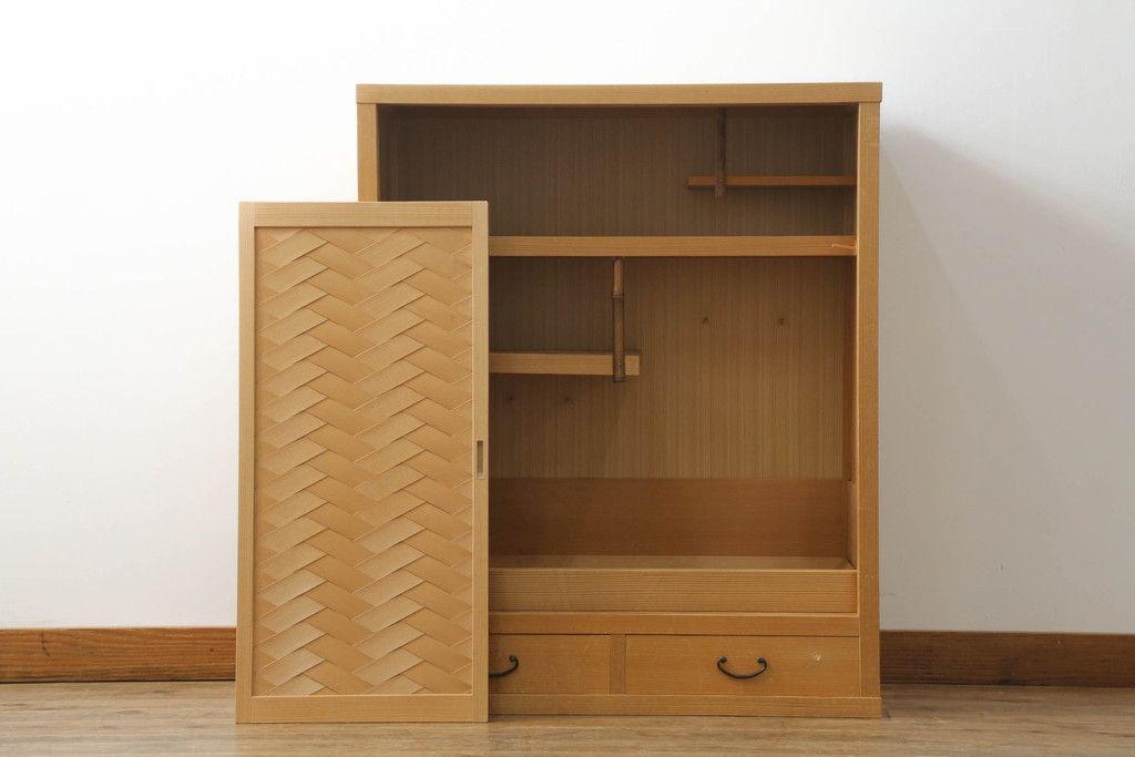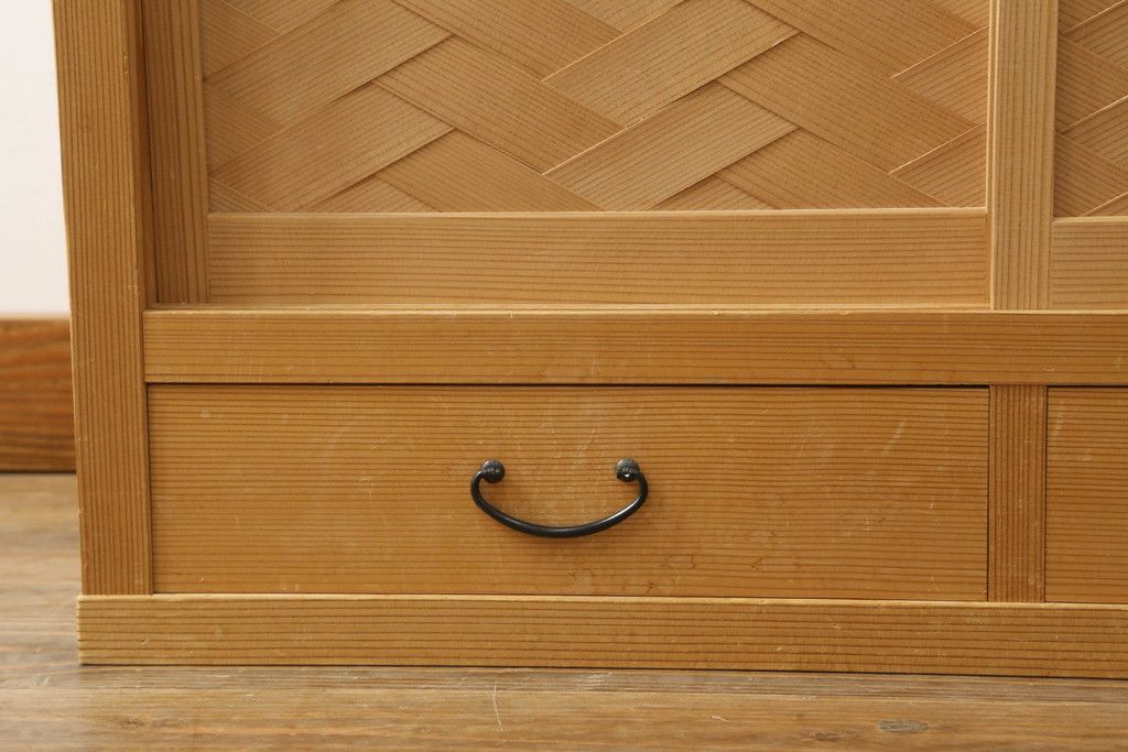 和箪笥> 茶箪笥・茶棚 > 置き水屋の見た目を変えずに綺麗にリペア!水受けにステンレス製のバットを設置。(置水屋、茶水屋、戸棚、茶棚、収納棚、網代引戸)