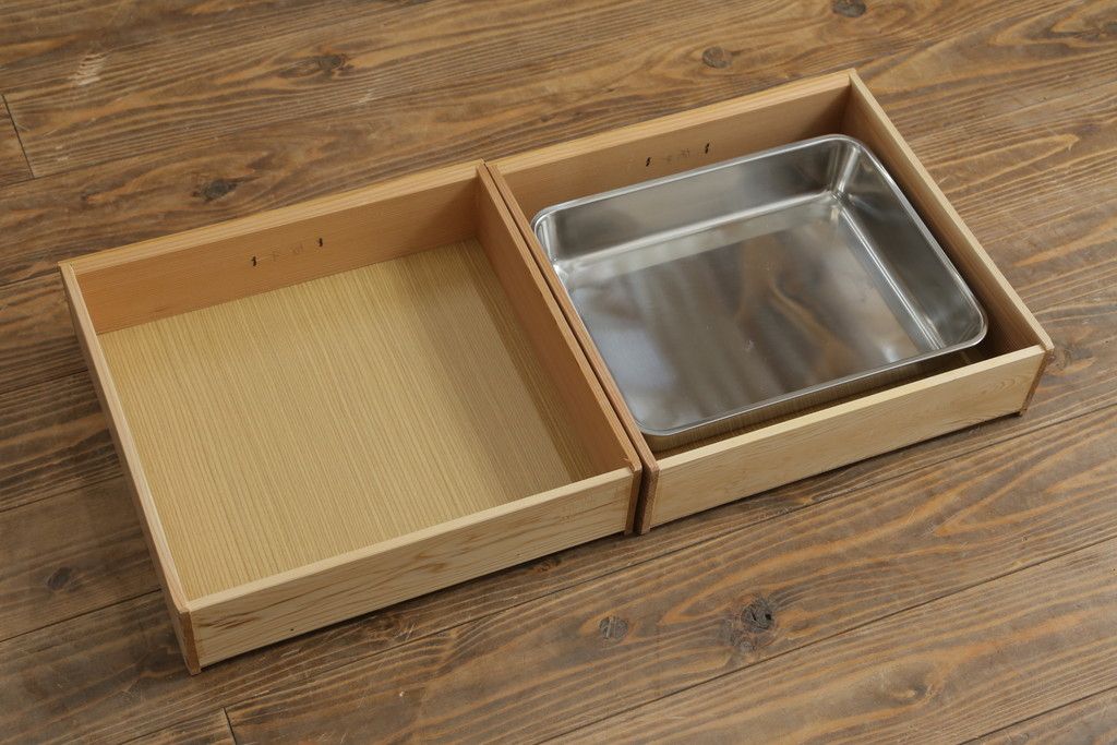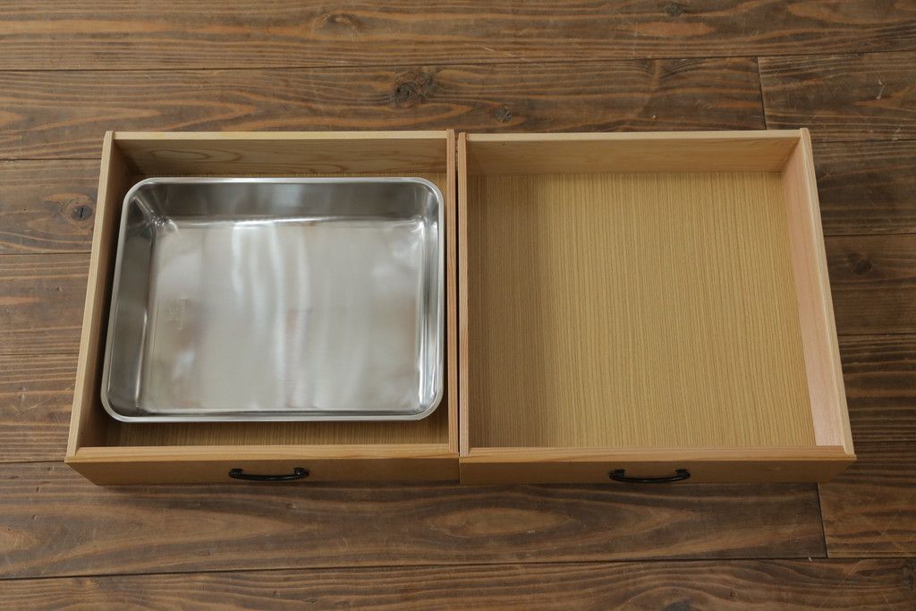 置き水屋の見た目を変えずに綺麗にリペア!水受けにステンレス製のバットを設置。(置水屋、茶水屋、戸棚、茶棚、収納棚、網代引戸)