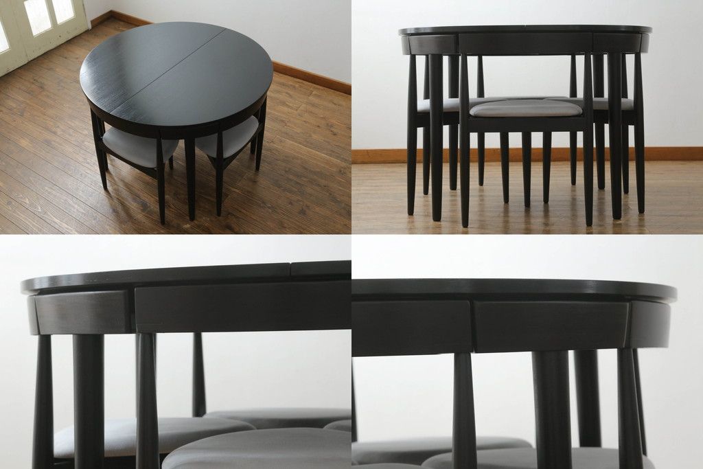 ラフジュ工房> テーブル > ハンス・オルセン(HANS OLSEN)デザインのダイニングテーブルとチェア4脚セットをリペア&カスタム!チェアの座面を張替え、木部をマットブラックでペイント仕上げ。(エクステンションテーブル、拡張式テーブル、4人掛け、ダイニングチェア、椅子、イス、いす、スタッキング、ヴィンテージ、北欧)