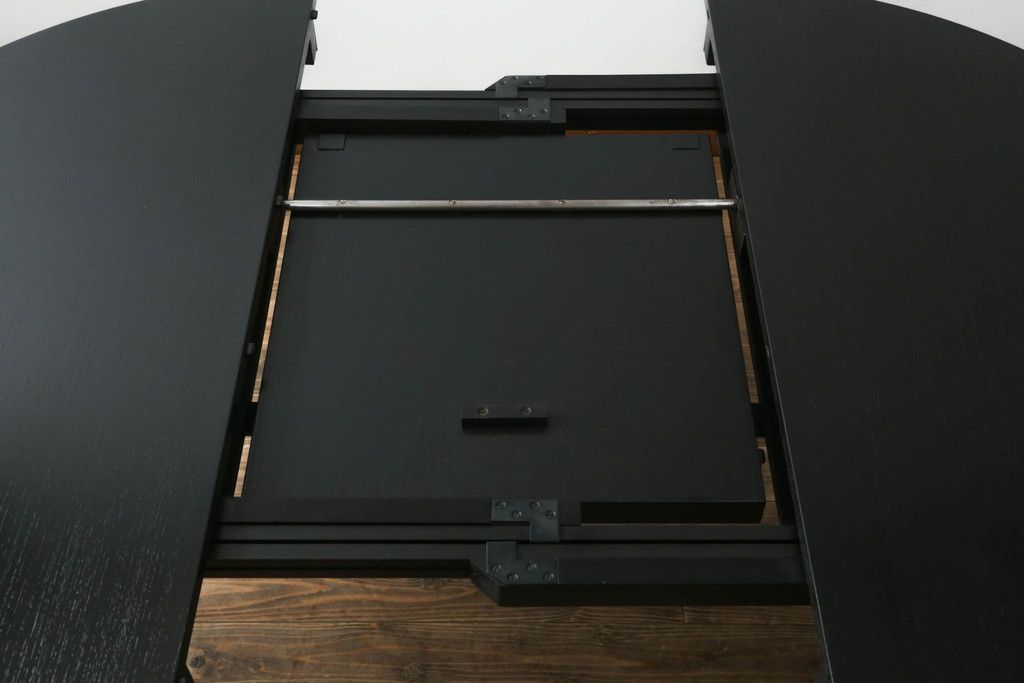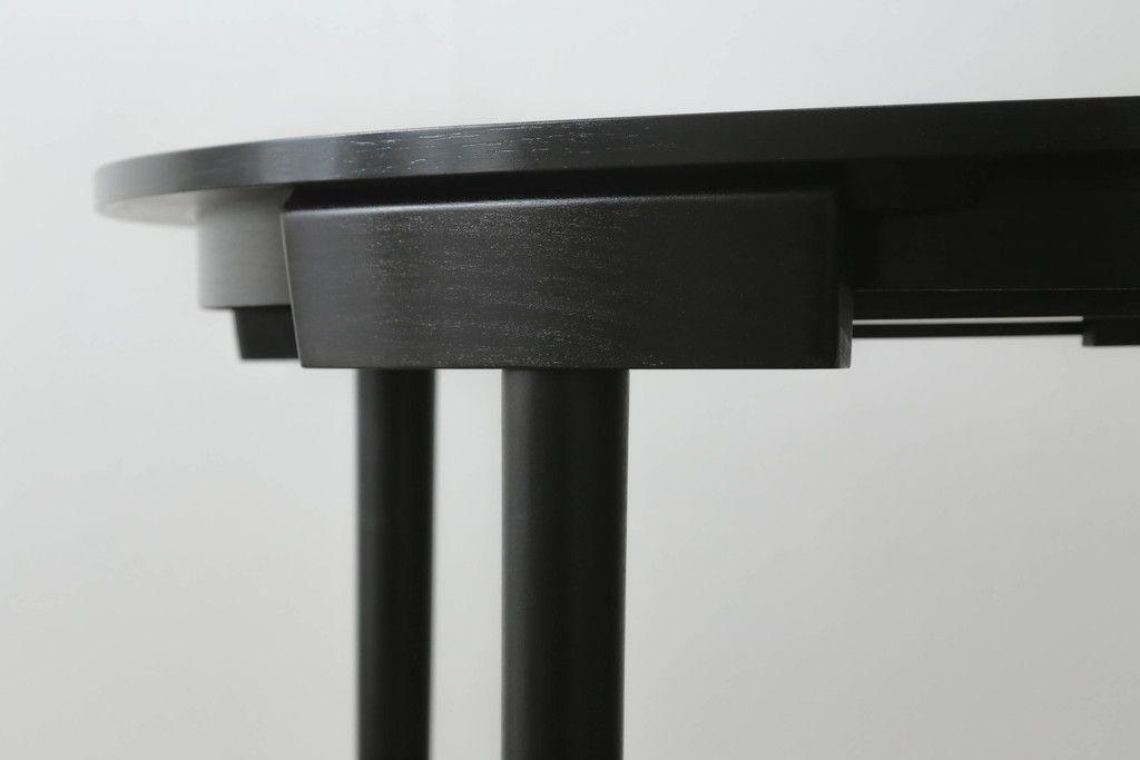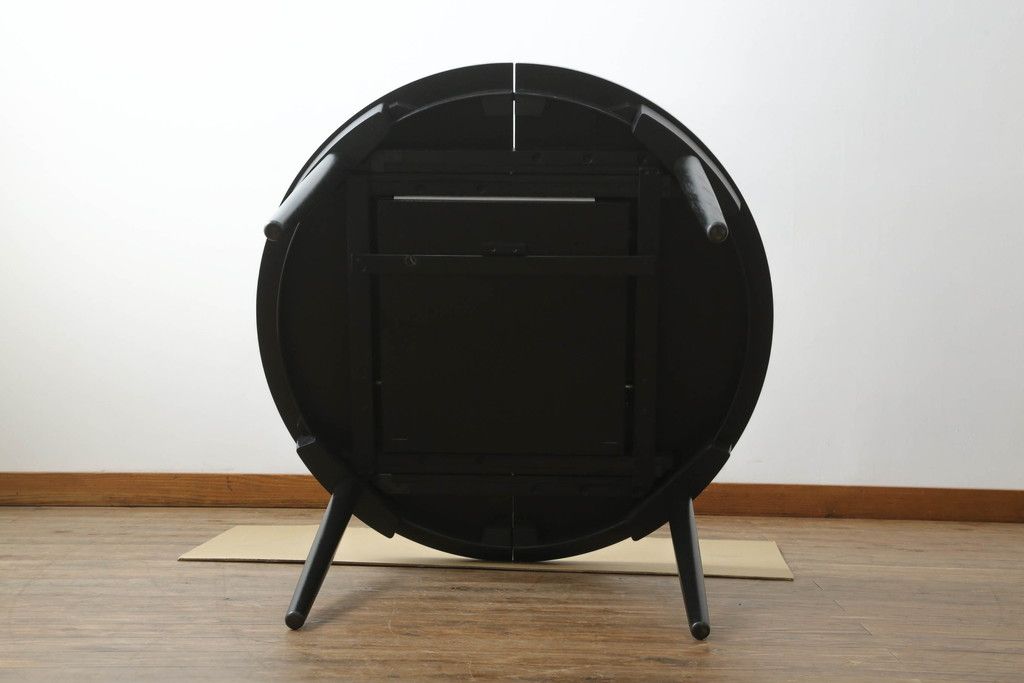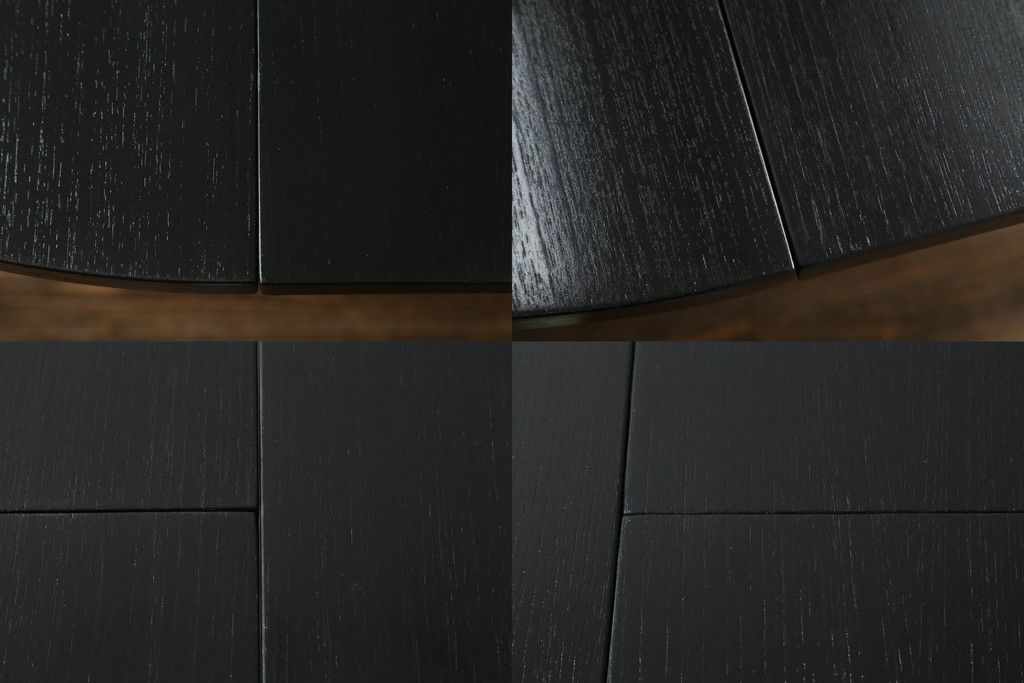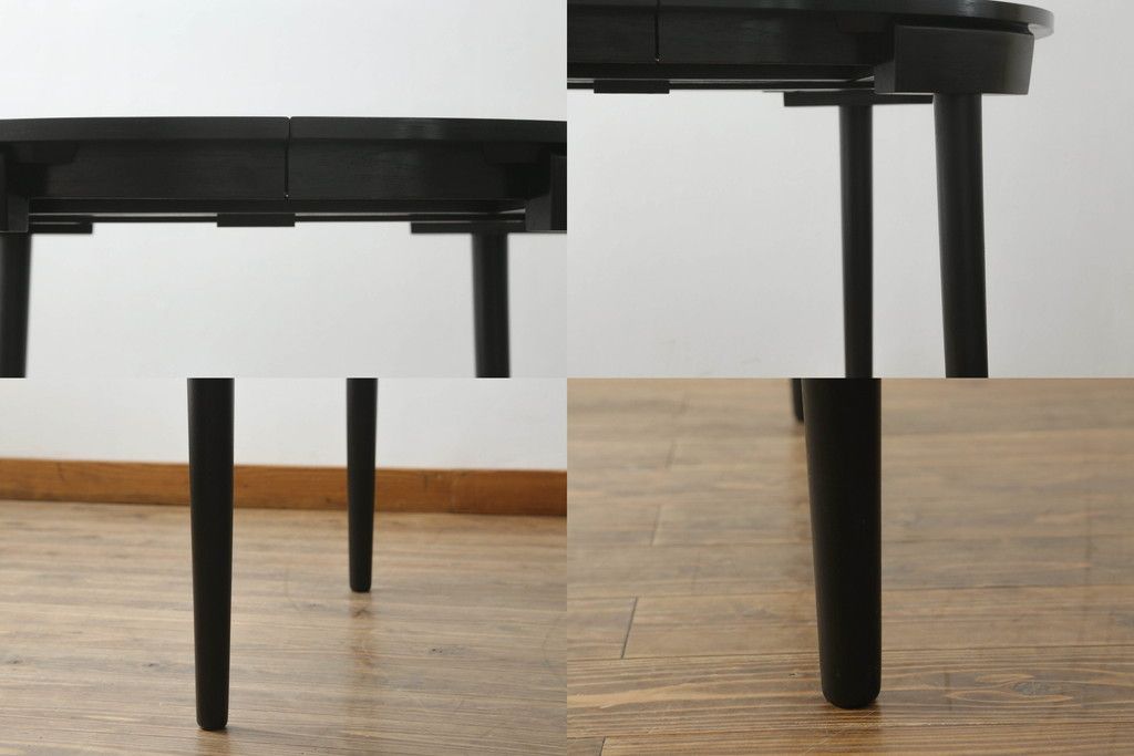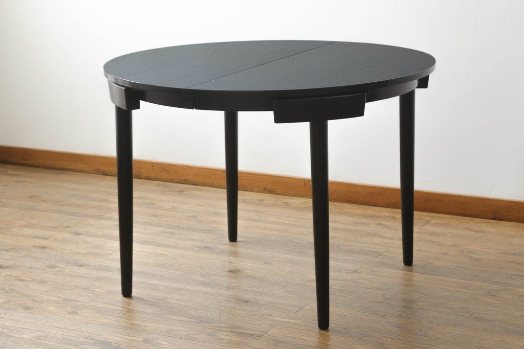 ラフジュ工房> テーブル> エクステンションテーブル > ハンス・オルセン(HANS OLSEN)デザインのダイニングテーブルとチェア4脚セットをリペア&カスタム!チェアの座面を張替え、木部をマットブラックでペイント仕上げ。(エクステンションテーブル、拡張式テーブル、4人掛け、ダイニングチェア、椅子、イス、いす、スタッキング、ヴィンテージ、北欧)