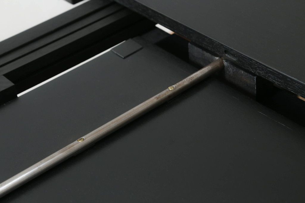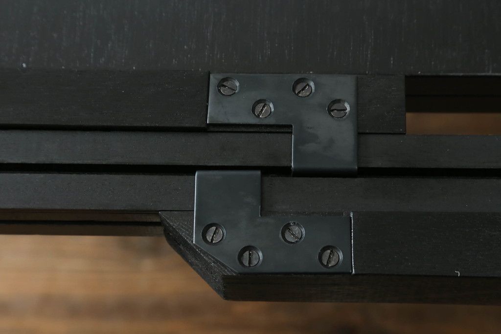 ラフジュ工房> セミオーダー家具実績 > ハンス・オルセン(HANS OLSEN)デザインのダイニングテーブルとチェア4脚セットをリペア&カスタム!チェアの座面を張替え、木部をマットブラックでペイント仕上げ。(エクステンションテーブル、拡張式テーブル、4人掛け、ダイニングチェア、椅子、イス、いす、スタッキング、ヴィンテージ、北欧)
