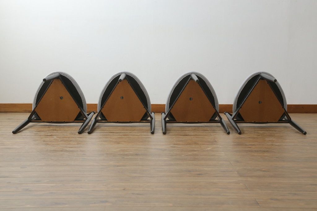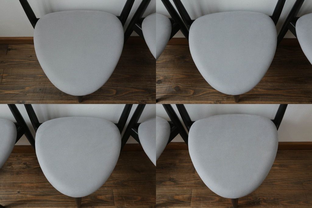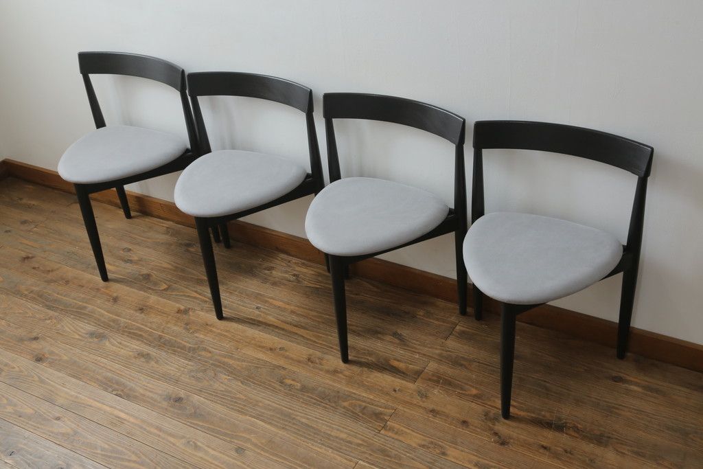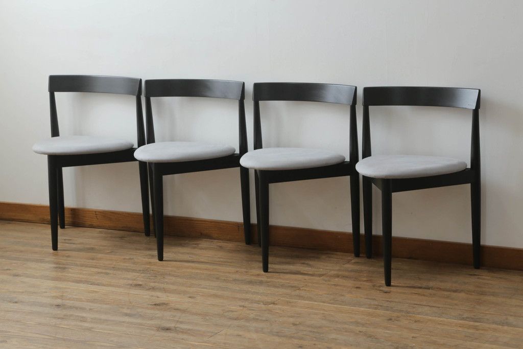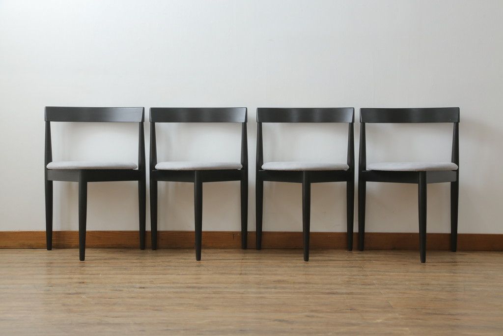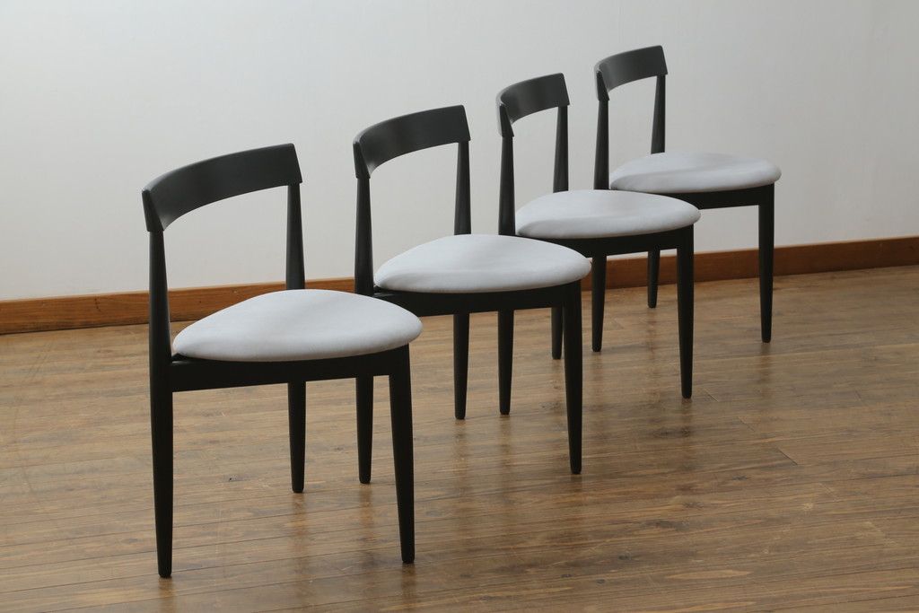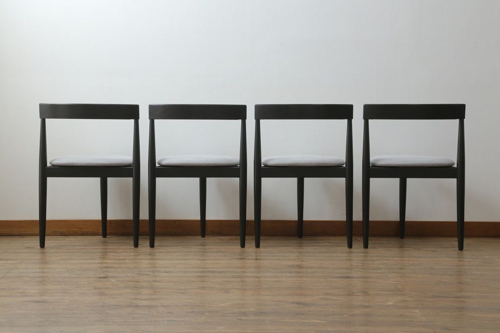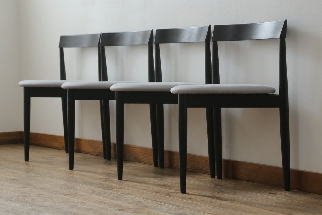 ラフジュ工房> 椅子・ベンチ> ダイニングチェア > ハンス・オルセン(HANS OLSEN)デザインのダイニングテーブルとチェア4脚セットをリペア&カスタム!チェアの座面を張替え、木部をマットブラックでペイント仕上げ。(エクステンションテーブル、拡張式テーブル、4人掛け、ダイニングチェア、椅子、イス、いす、スタッキング、ヴィンテージ、北欧)