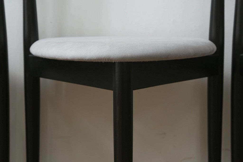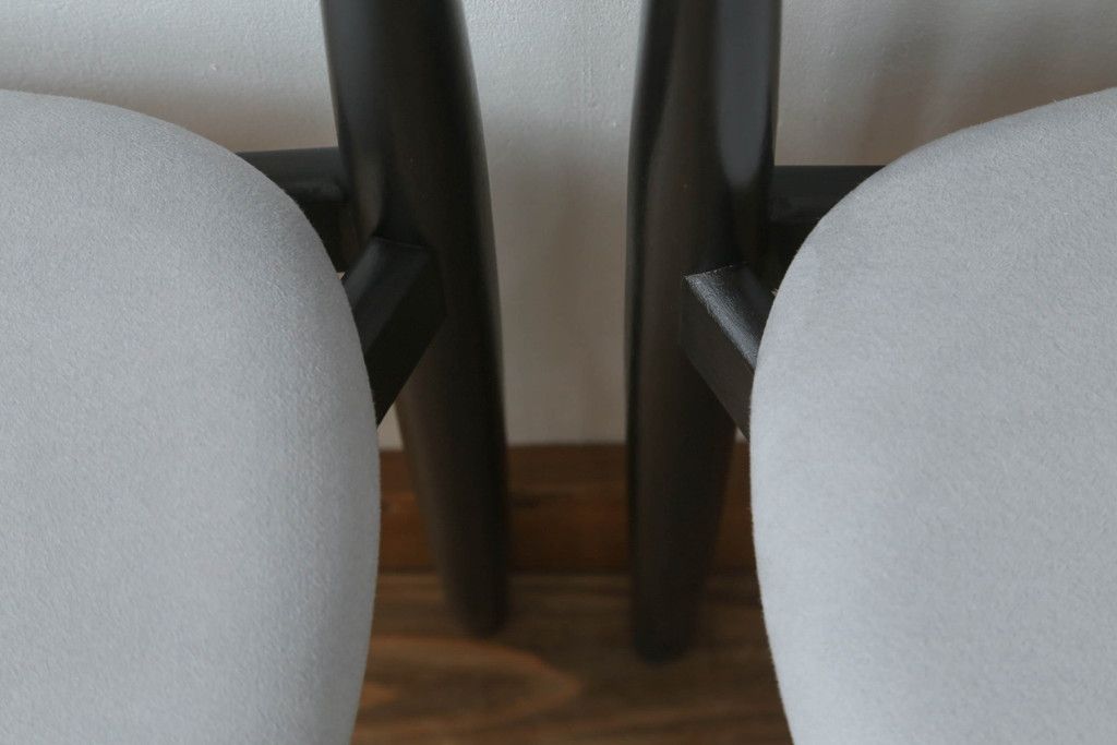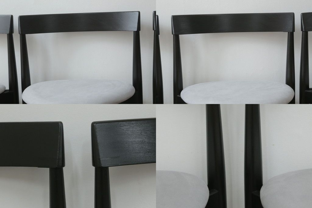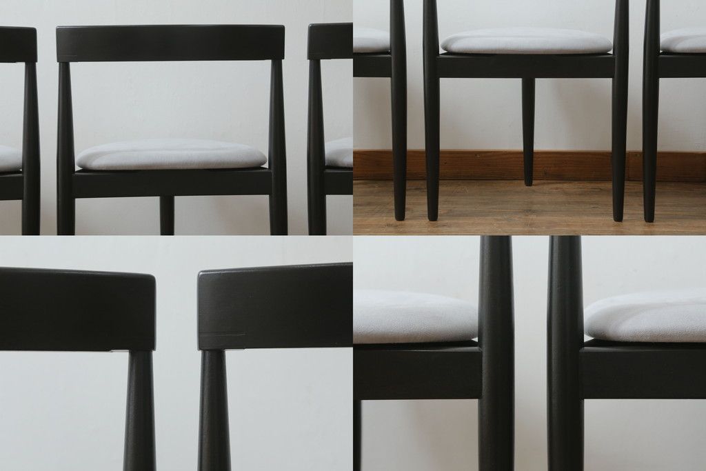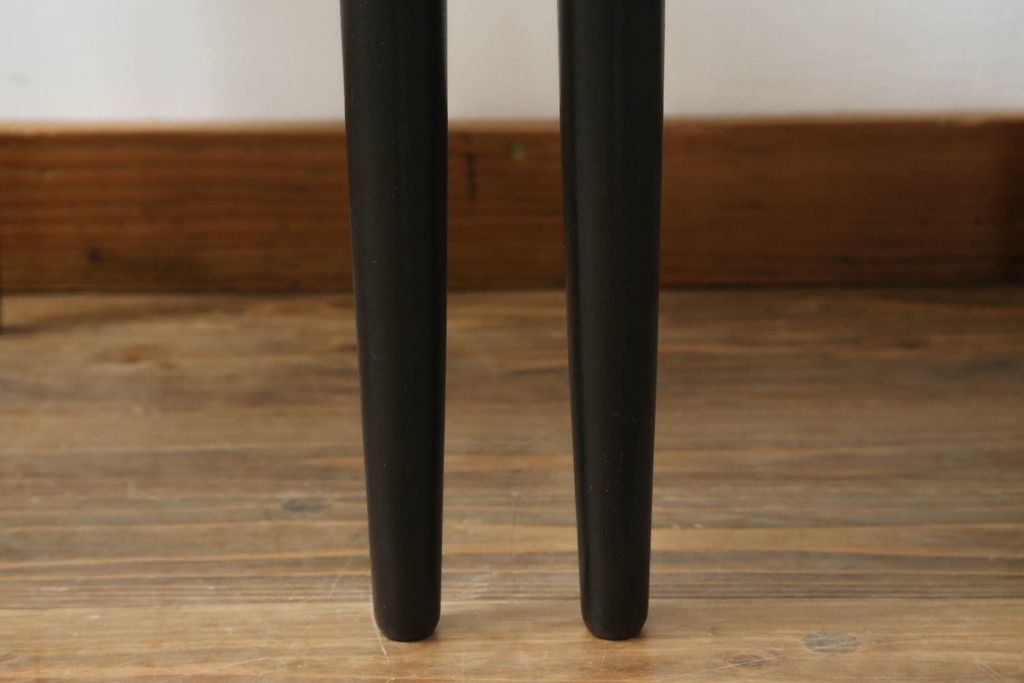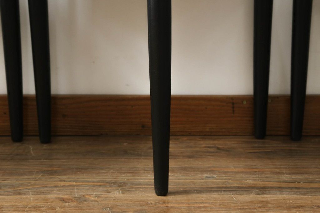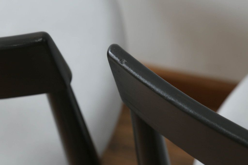 ラフジュ工房> 椅子・ベンチ > ハンス・オルセン(HANS OLSEN)デザインのダイニングテーブルとチェア4脚セットをリペア&カスタム!チェアの座面を張替え、木部をマットブラックでペイント仕上げ。(エクステンションテーブル、拡張式テーブル、4人掛け、ダイニングチェア、椅子、イス、いす、スタッキング、ヴィンテージ、北欧)