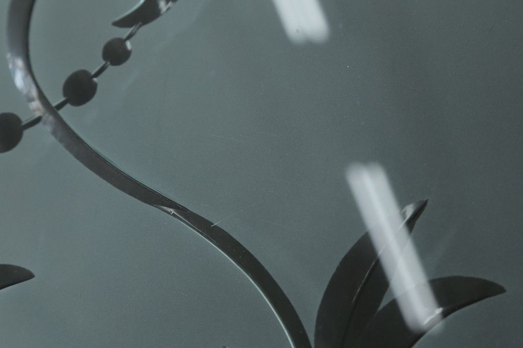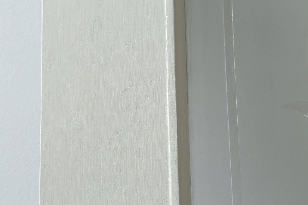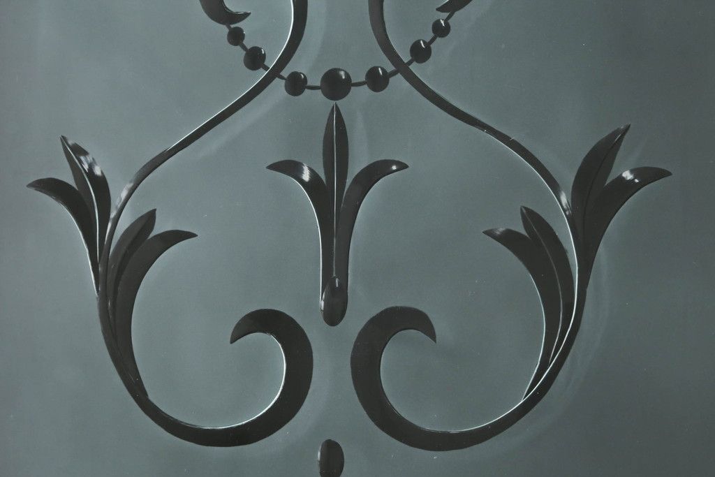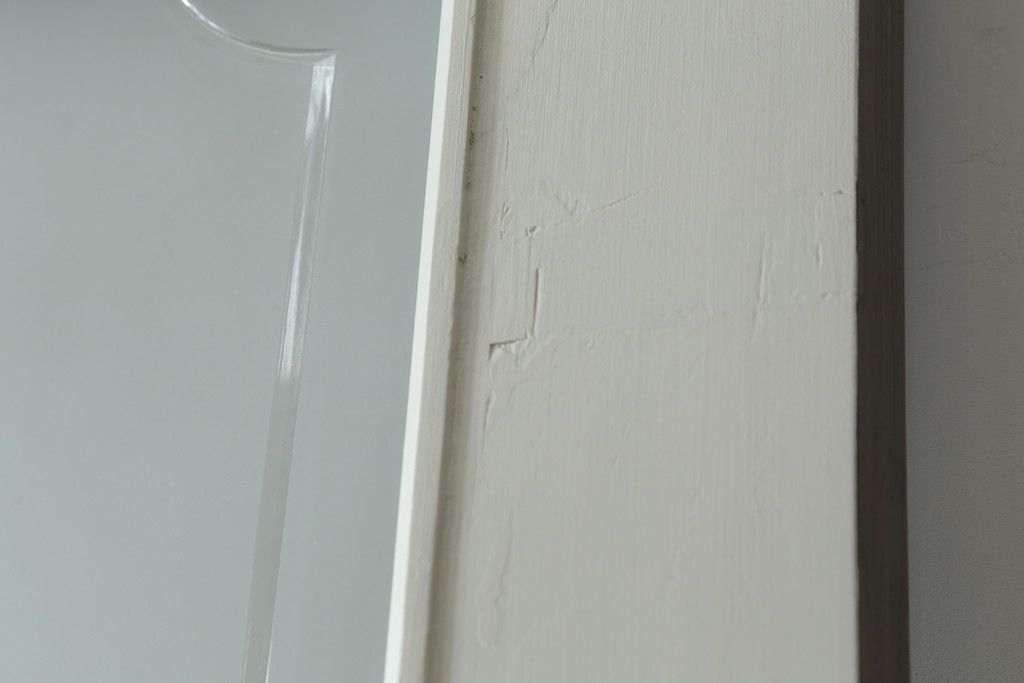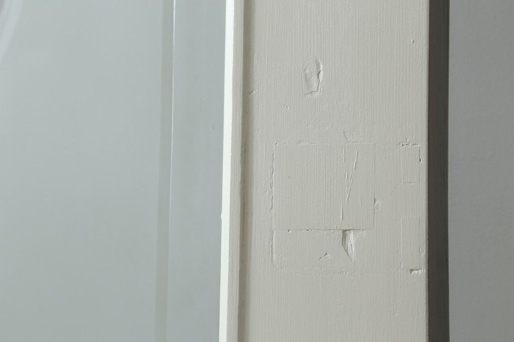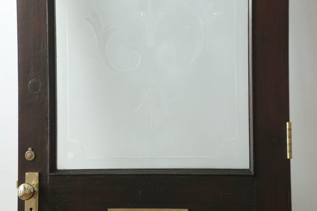 ドア・建具> ガラス戸 > ペイントドアをリペア&カスタム!設置場所に合わせて仕様を変更し、戸枠を新たに製作。表面は茶色・裏面は白でペイント仕上げ。エッチングガラス、彫刻ガラス、切子ガラス、英国、玄関ドア、玄関扉、建具)